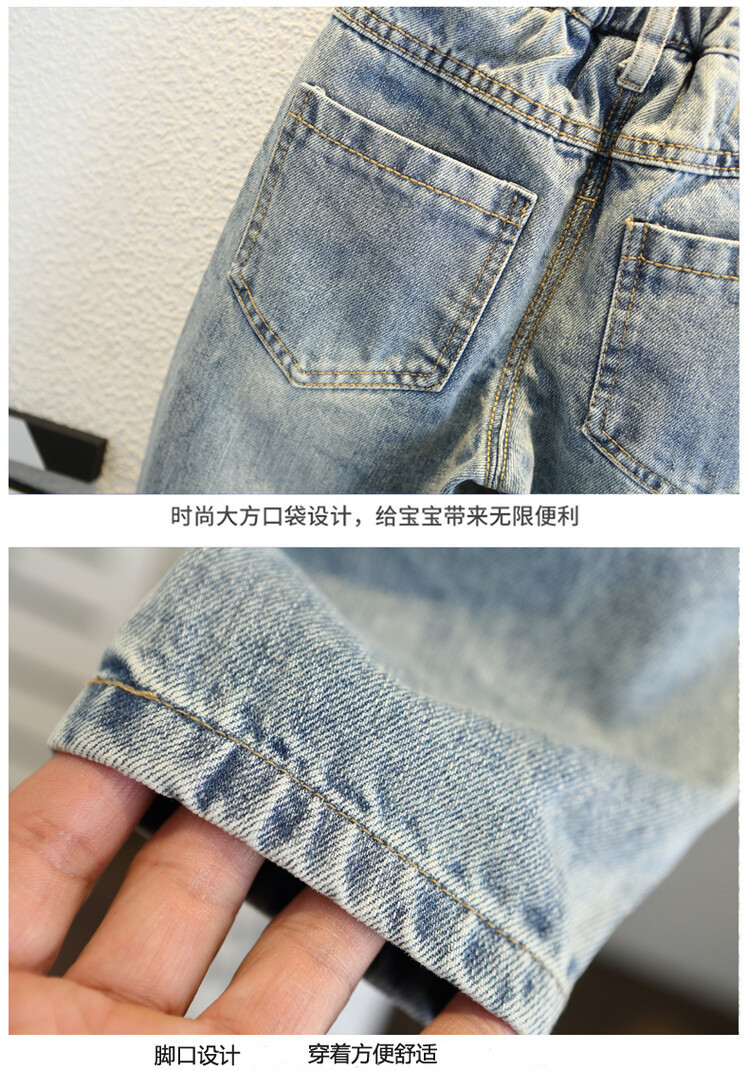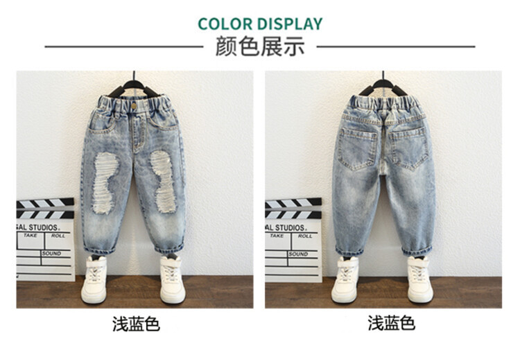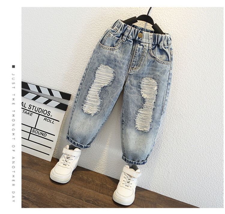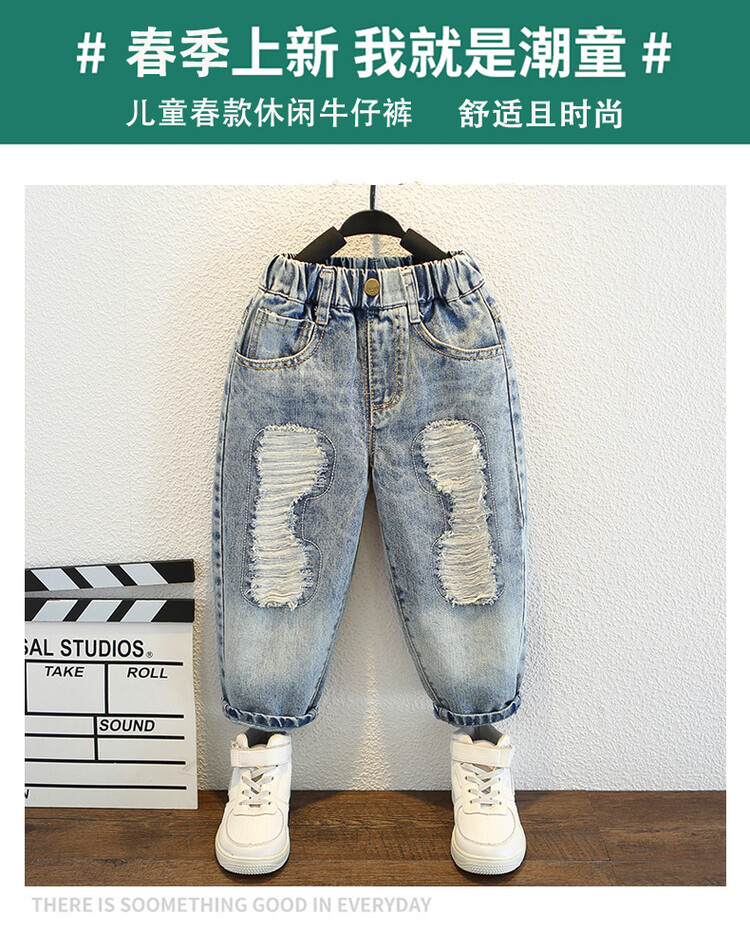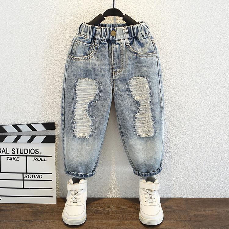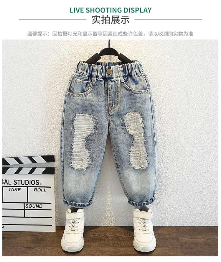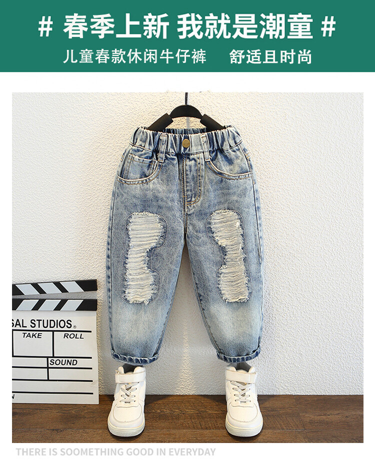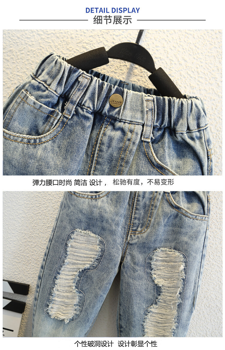 소년 큰 찢어진 청바지 2024 봄과 가을 새로운 어린이 잘 생긴 바지 어린이 바지 대외 무역스토어 가기