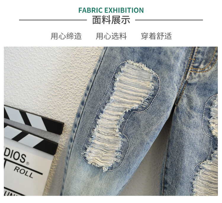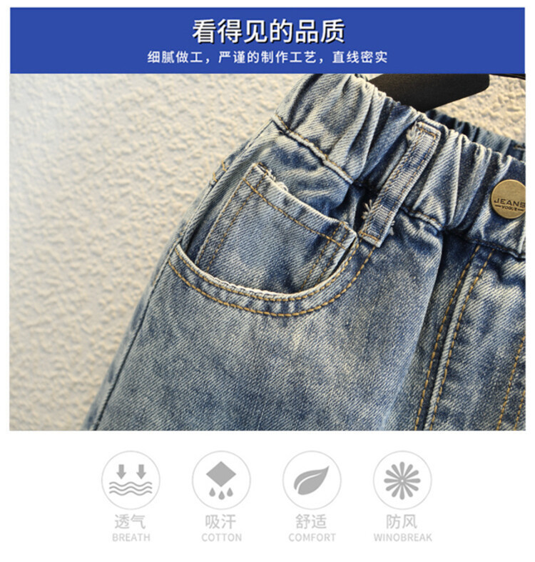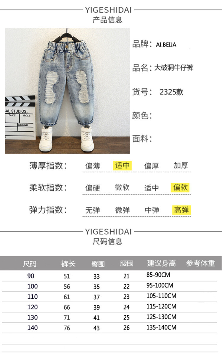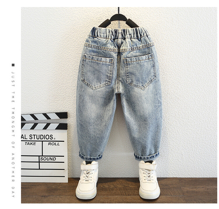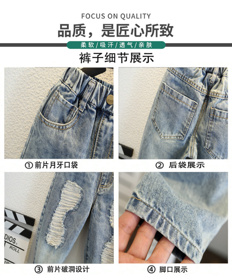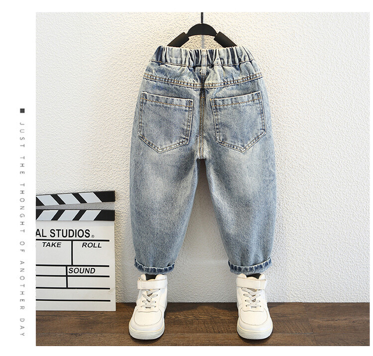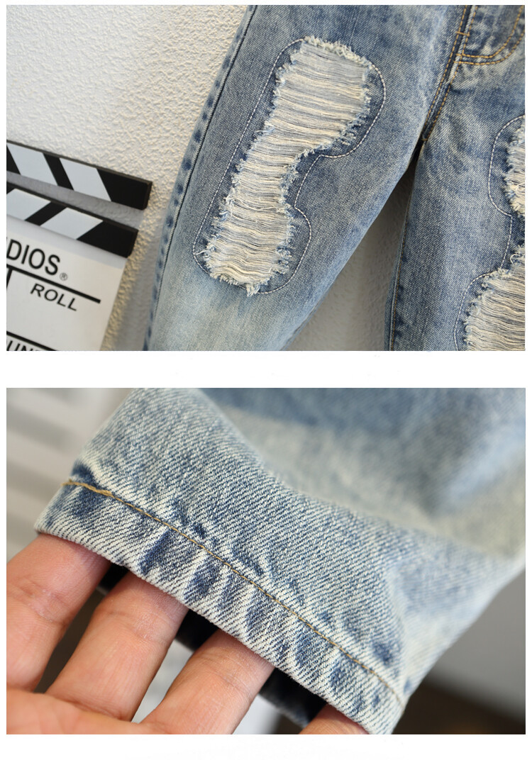 소년 큰 찢어진 청바지 2024 봄과 가을 새로운 어린이 잘 생긴 바지 어린이 바지 대외 무역스토어 가기