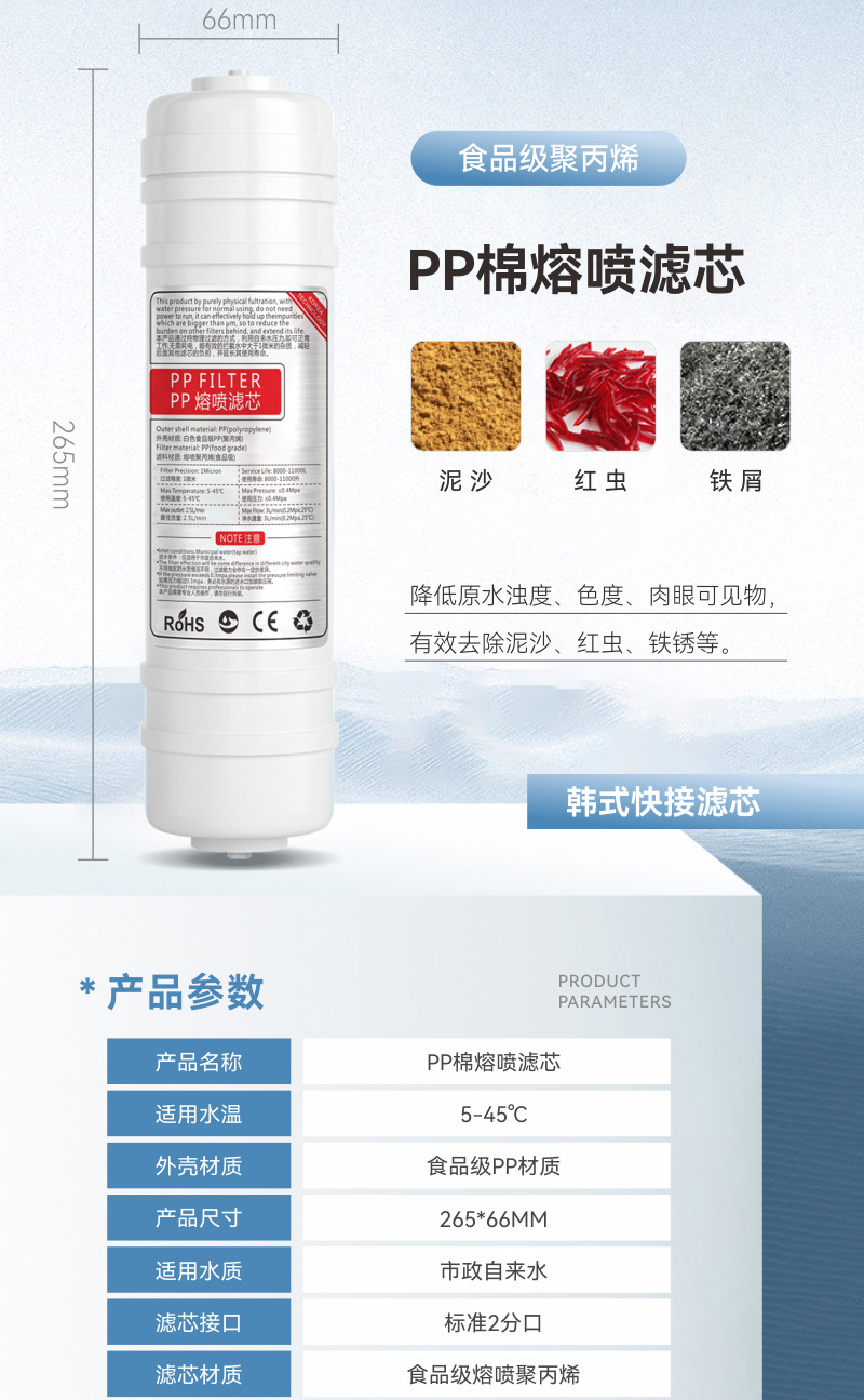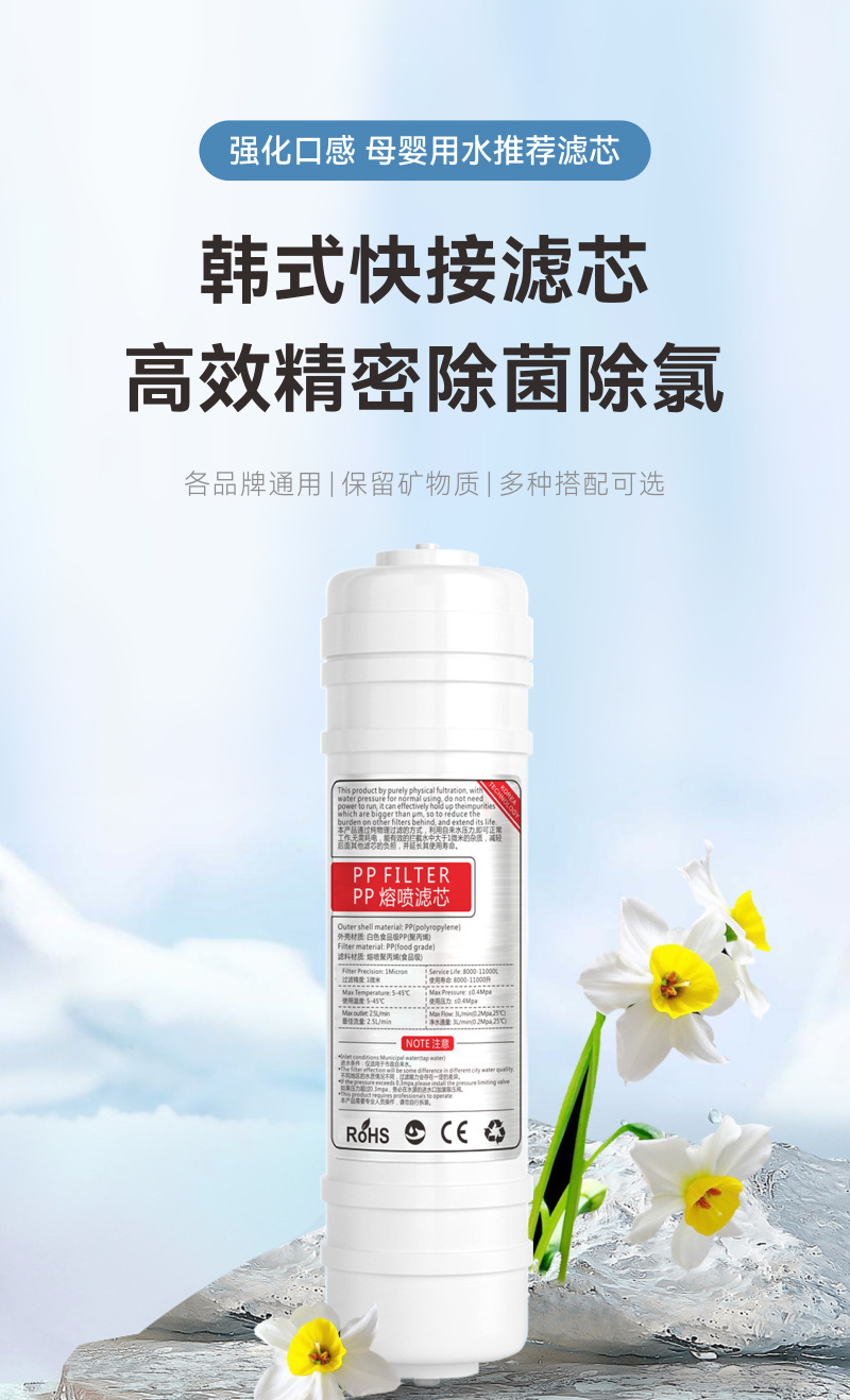 10 인치 2 분 한국식 빠른 연결 통합 PP 필터 면 정수기 필터 요소 적용 상자 정수기 빠른 플러그 통합