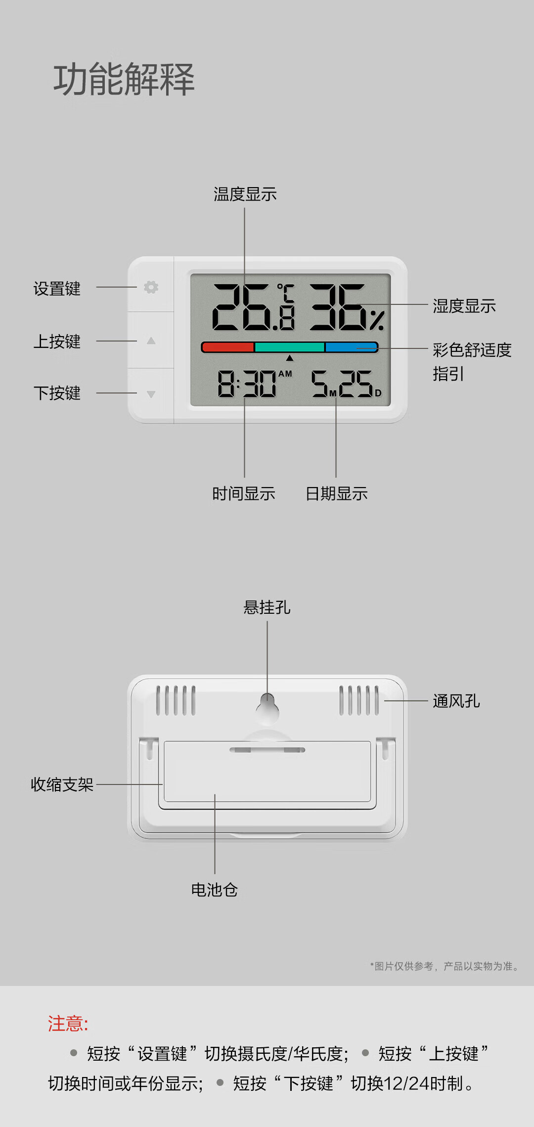 두 번째 두 번째 테스트 Huipin 온도계 디지털 디스플레이 가정용 고정밀 센서 정밀 아기 실내 온도 및 습도 측정기 미니 버전