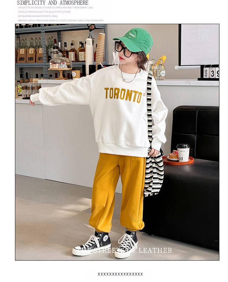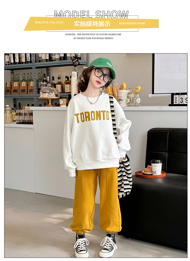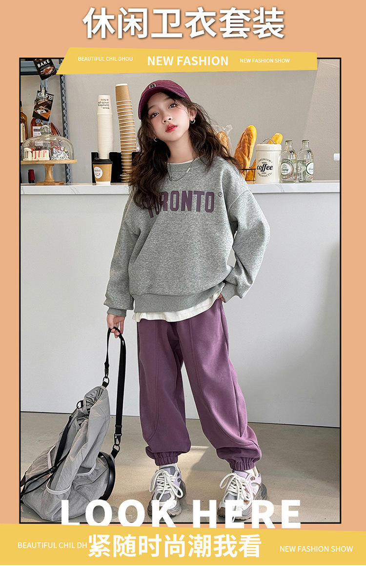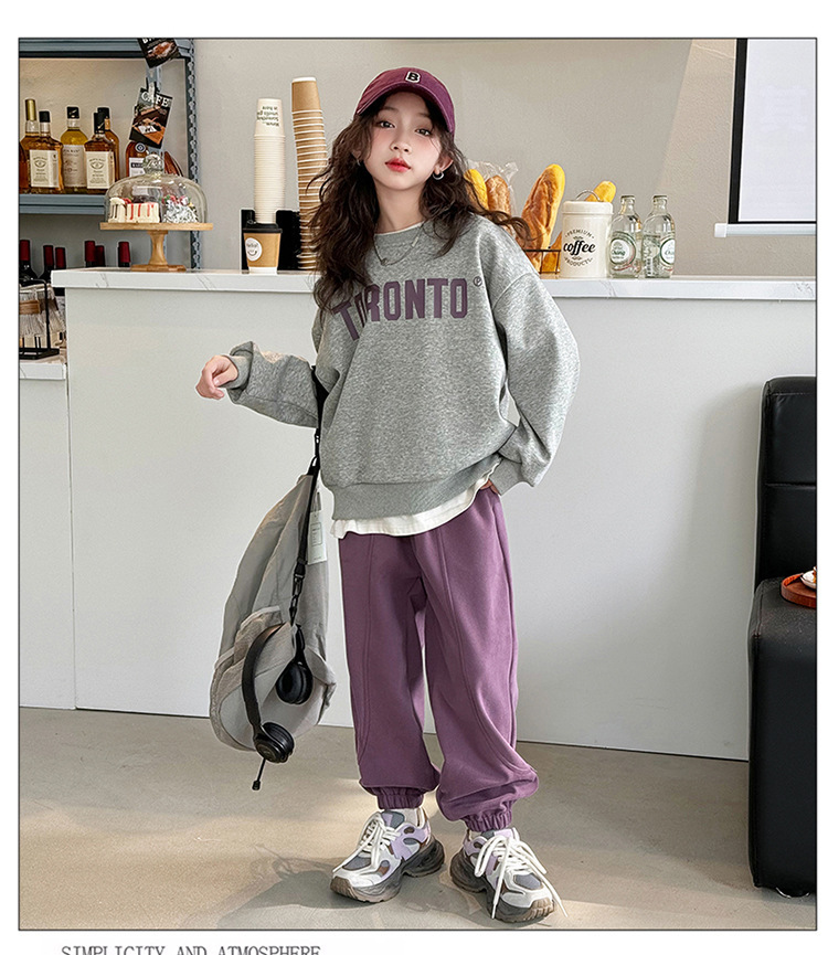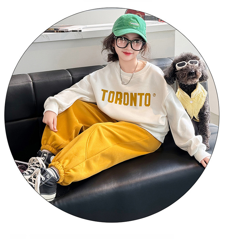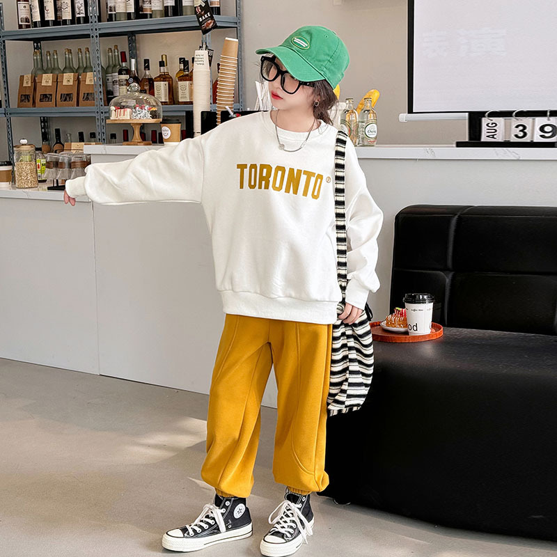 2024 새로운 국경 한국 스타일 봄과 가을 스타일 소녀의 유행 소녀 편지 스위트 바지 어린이 세트 트렌디스토어 가기