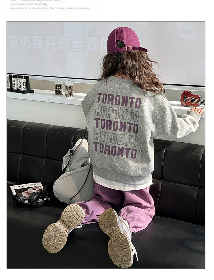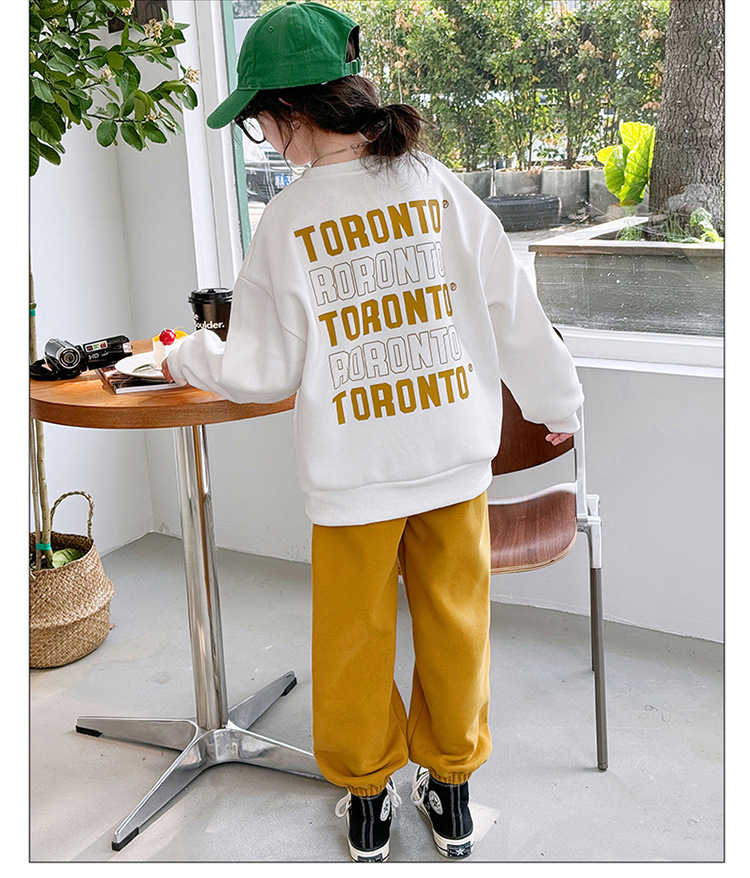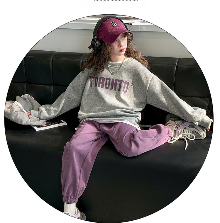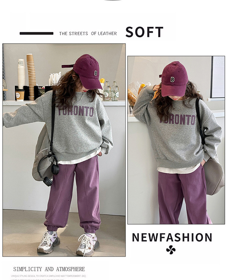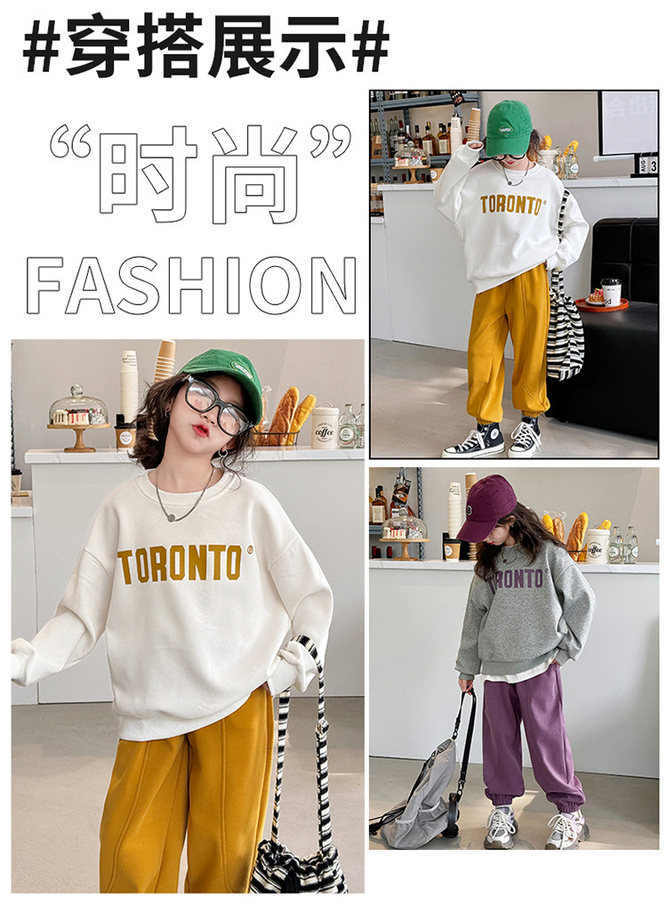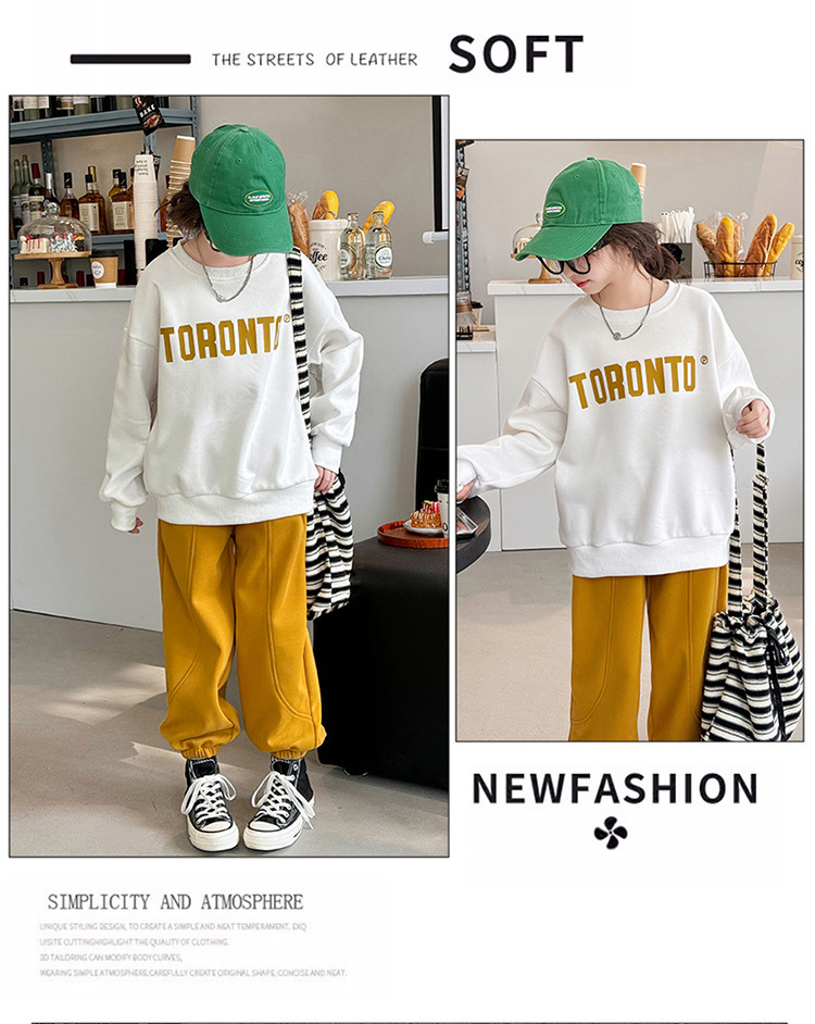 2024 새로운 국경 한국 스타일 봄과 가을 스타일 소녀의 유행 소녀 편지 스위트 바지 어린이 세트 트렌디스토어 가기