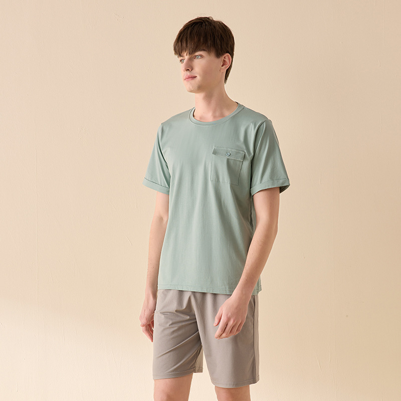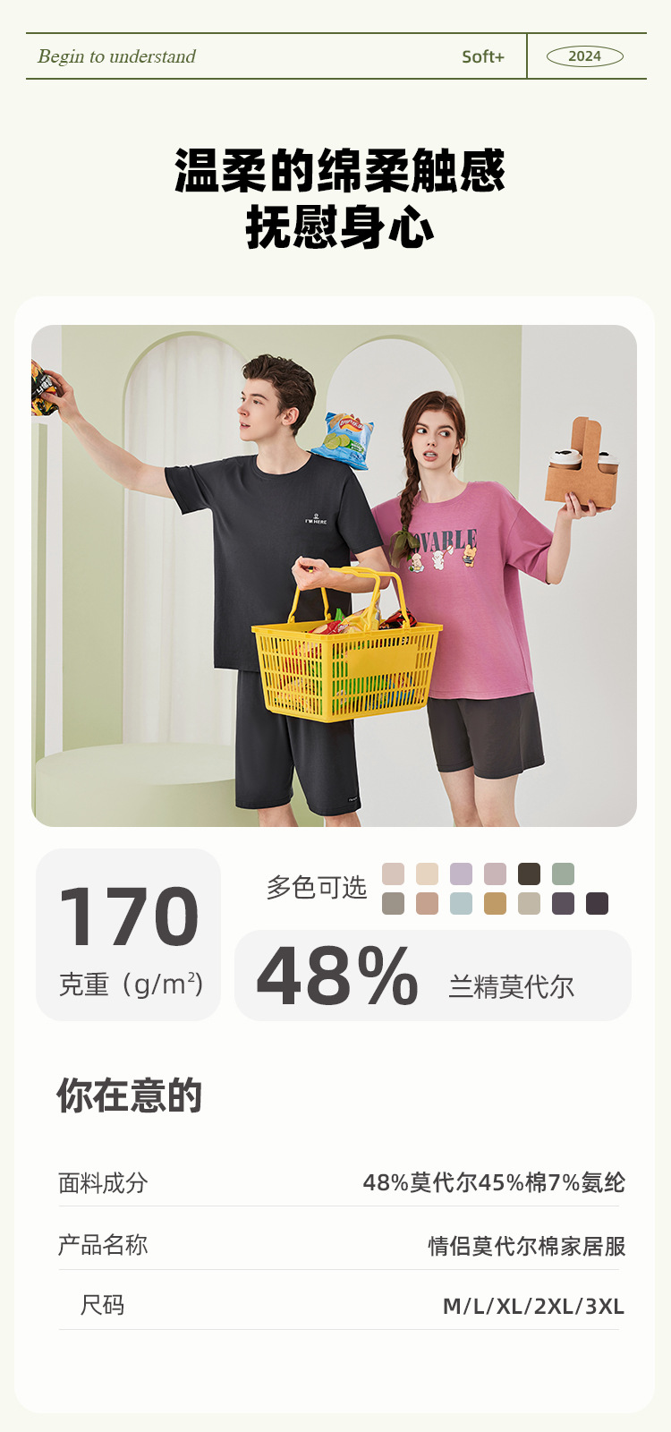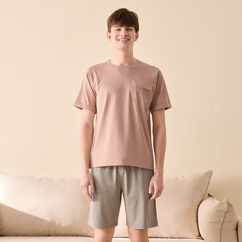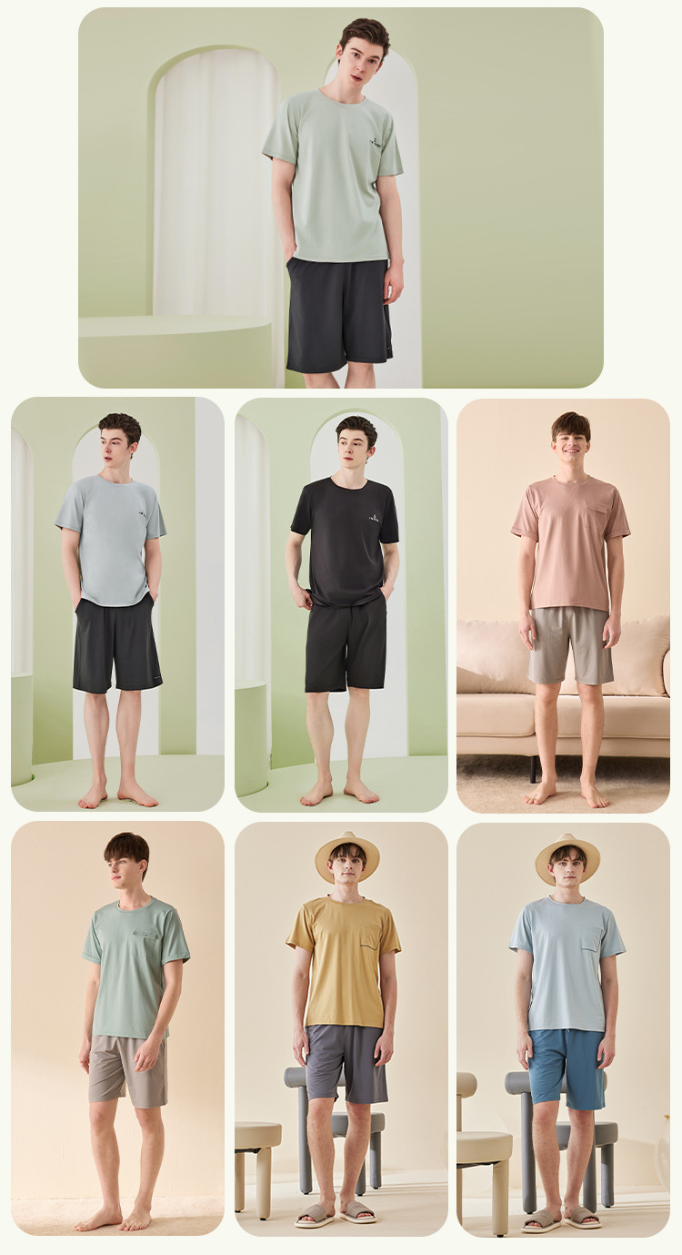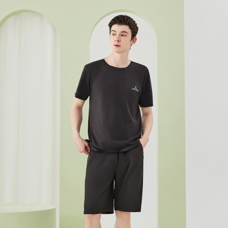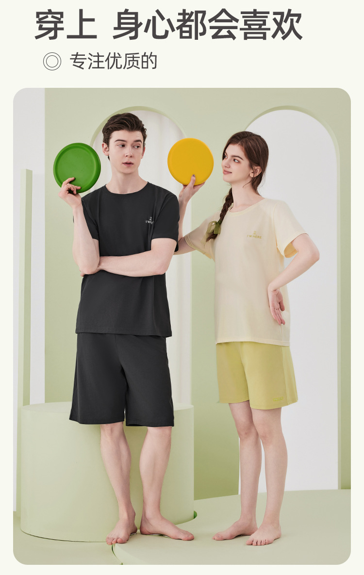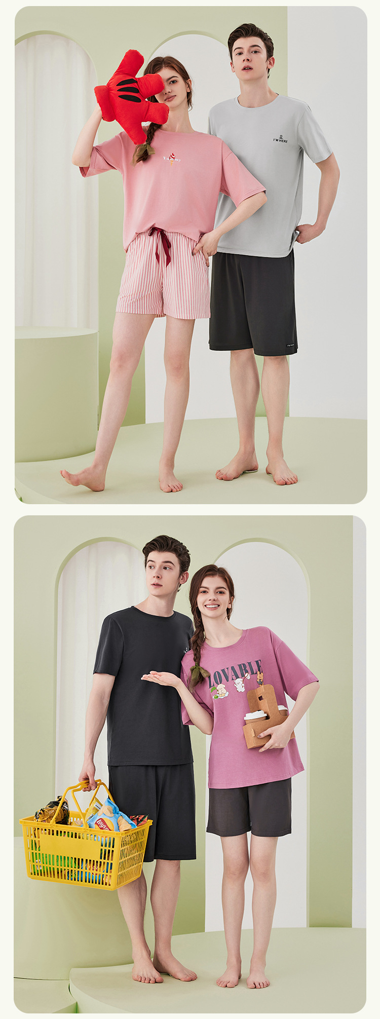 렌징 모달 코튼 잠옷 남성 여름 얇은 반팔 반바지 정장 남성 잠옷 여름 커플 홈웨어