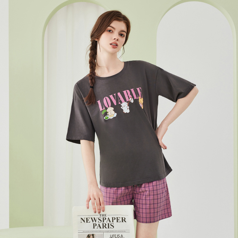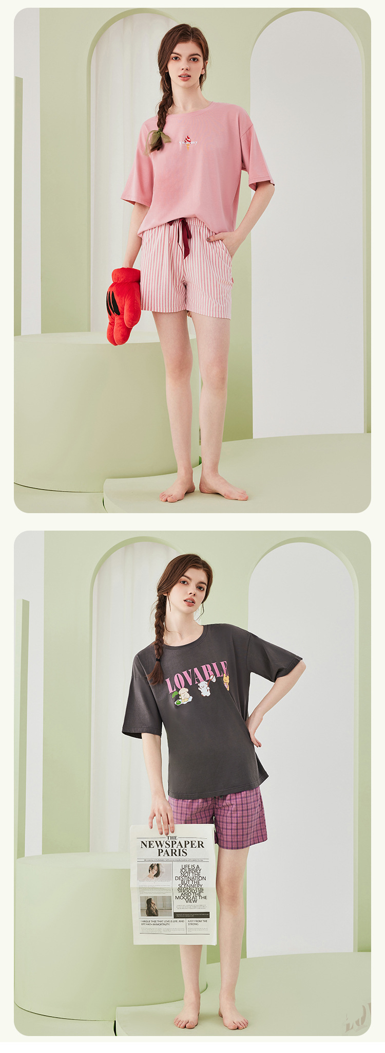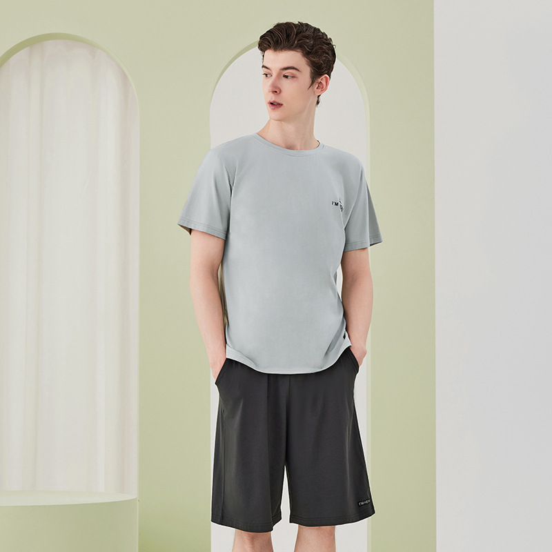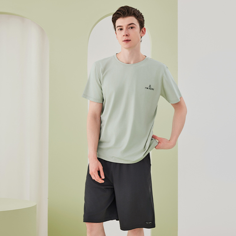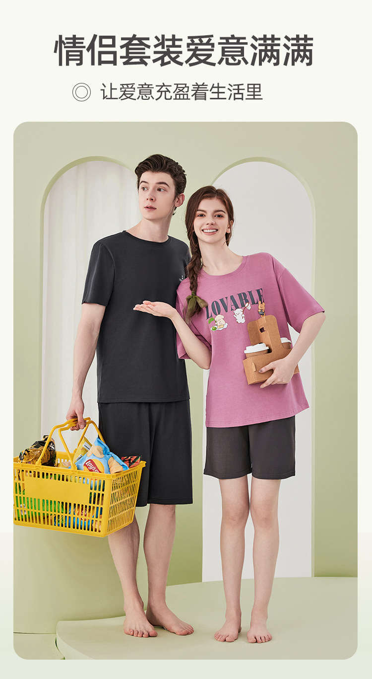 렌징 모달 코튼 잠옷 남성 여름 얇은 반팔 반바지 정장 남성 잠옷 여름 커플 홈웨어스토어 가기