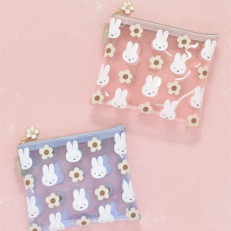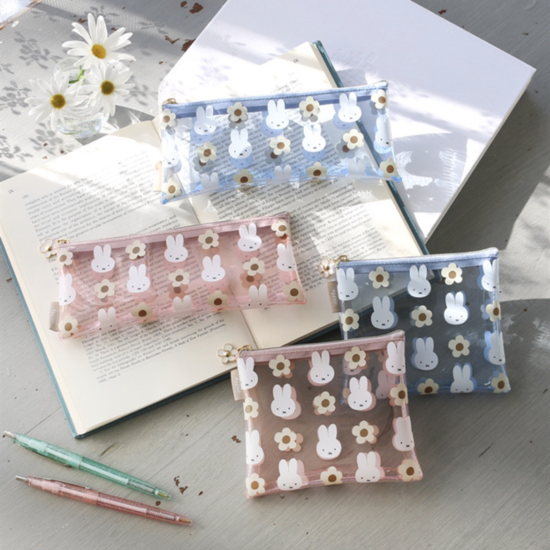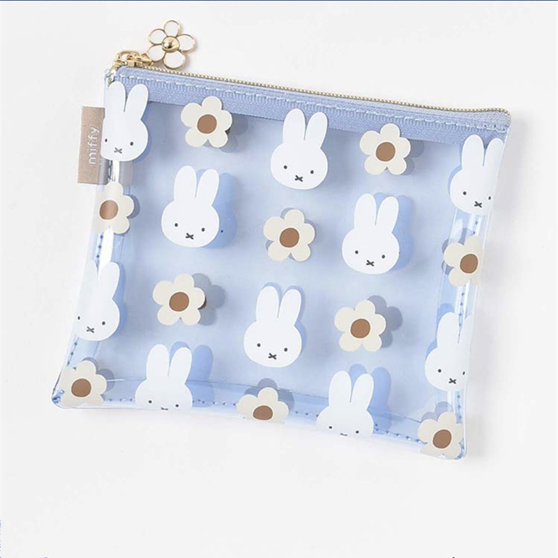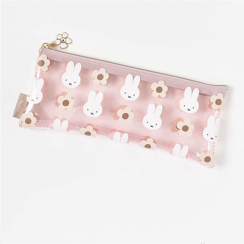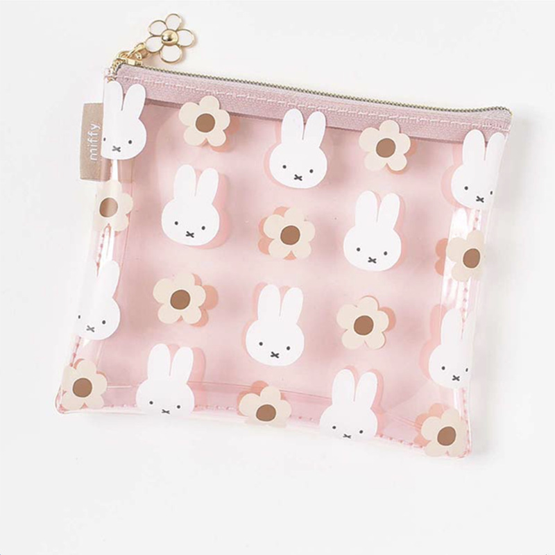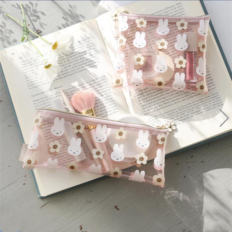 재고 일본 새로운 만화 귀여운 미피 토끼 꽃 pvc 투명 인쇄 연필 가방 화장품 가방 빨간 봉투