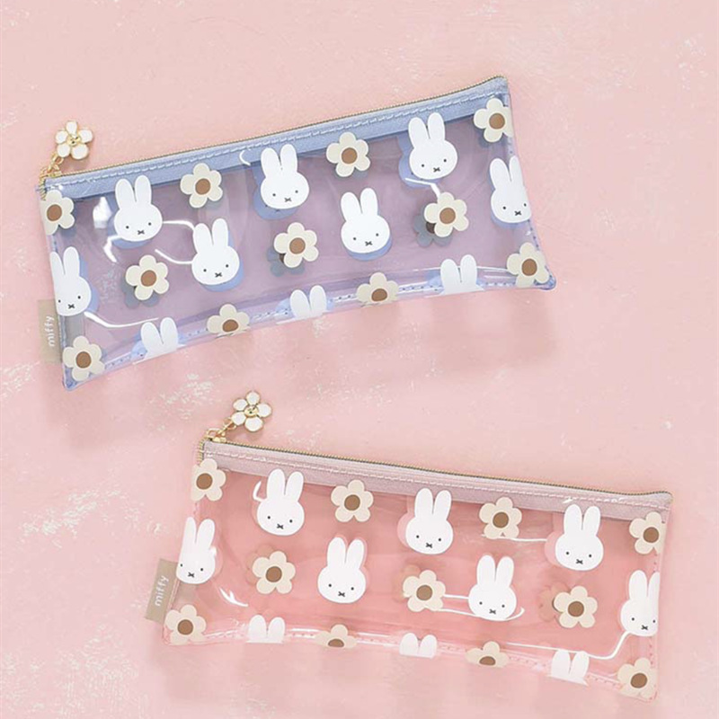 재고 일본 새로운 만화 귀여운 미피 토끼 꽃 pvc 투명 인쇄 연필 가방 화장품 가방 빨간 봉투스토어 가기