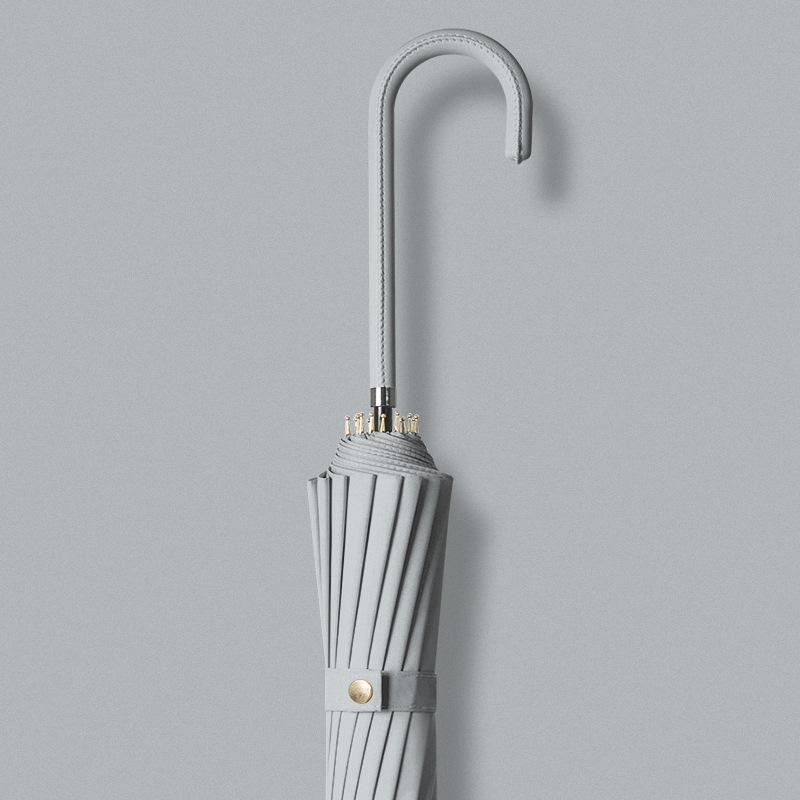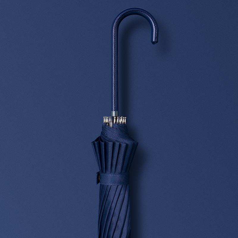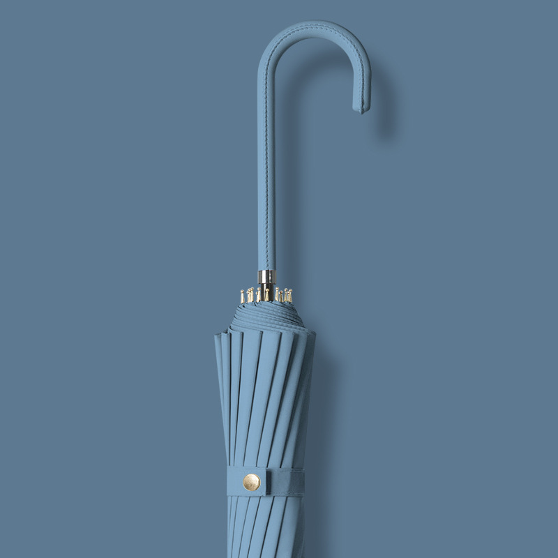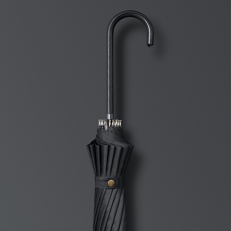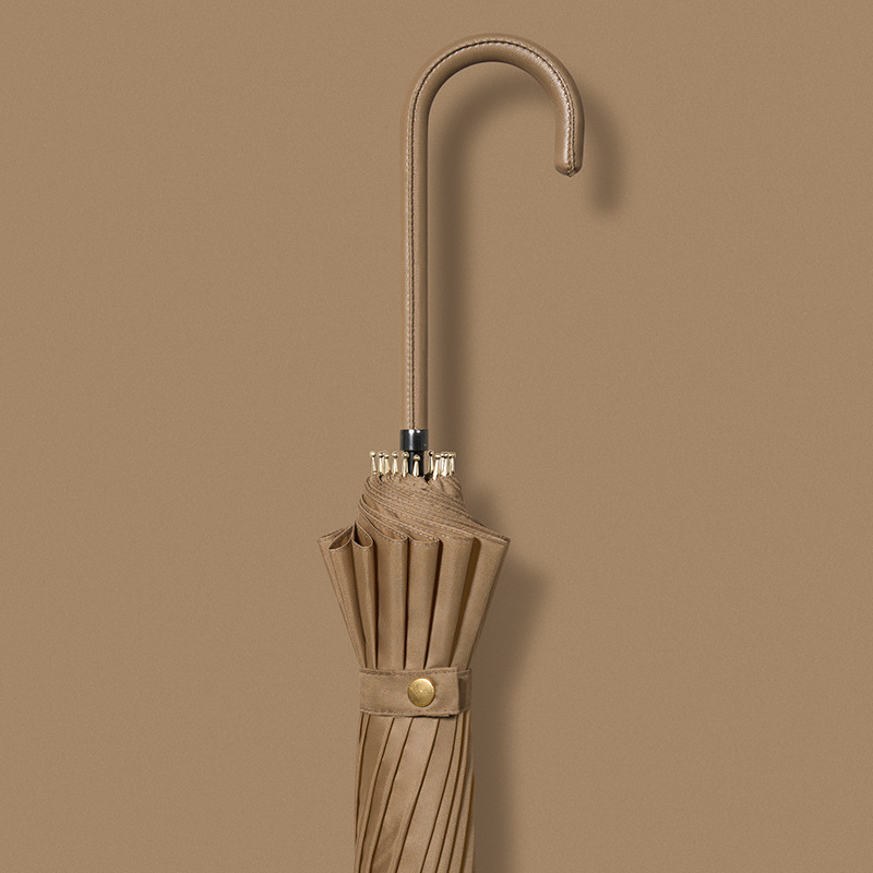신선한 가죽 곡선 핸들 16 뼈 직선 우산 검은 접착제 태양 보호 자외선 차양 우산 비 및 비 이중 사용 긴 핸들 광고스토어 가기