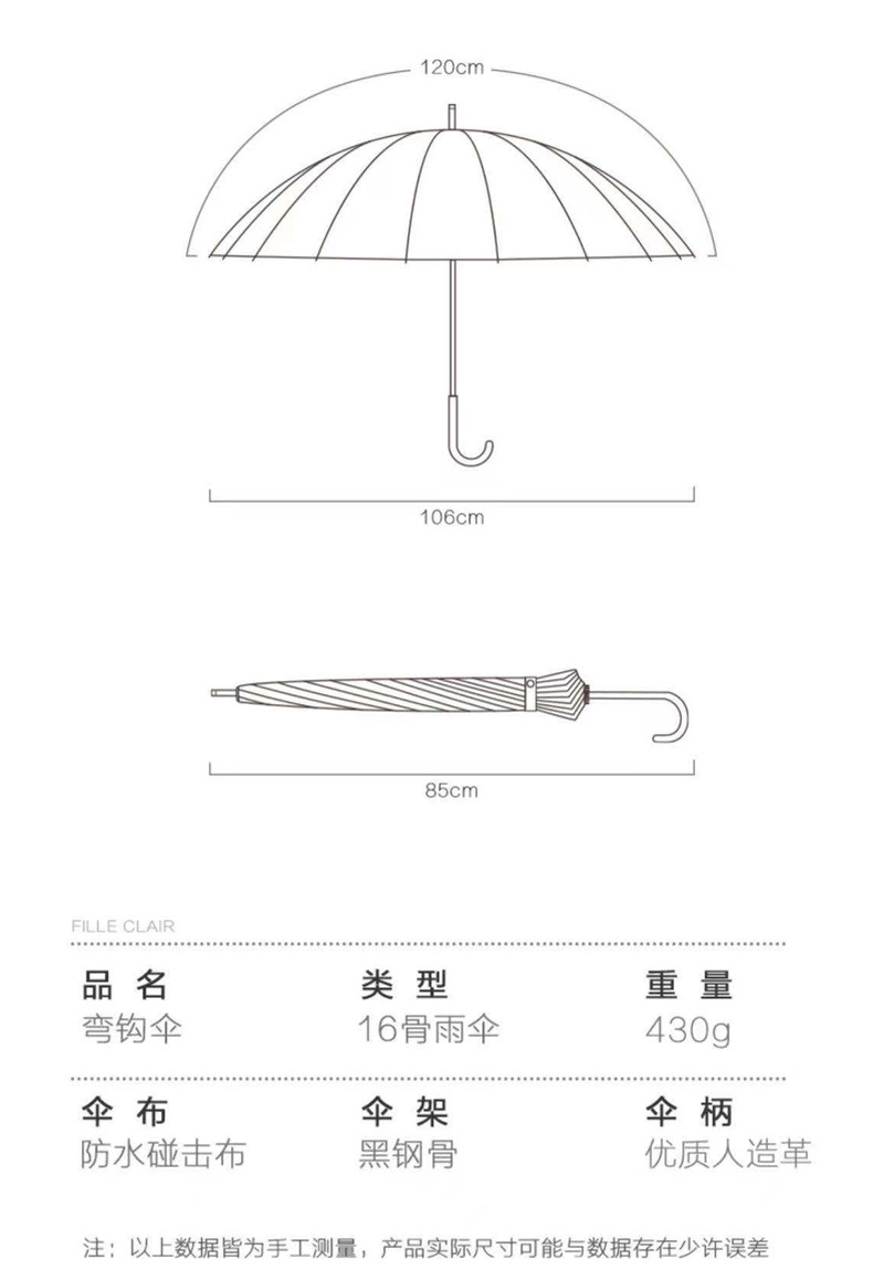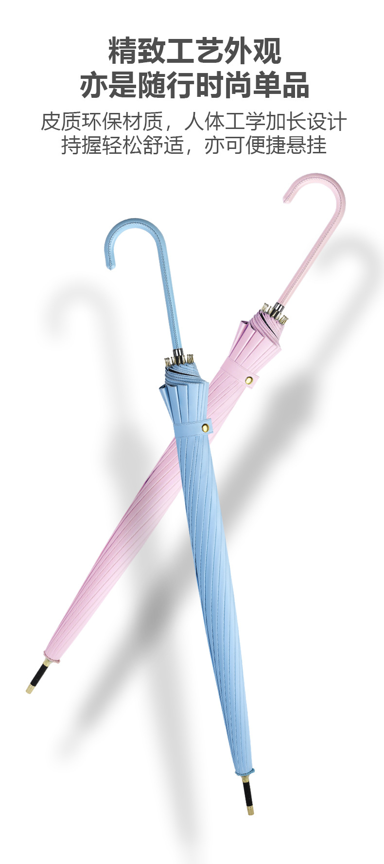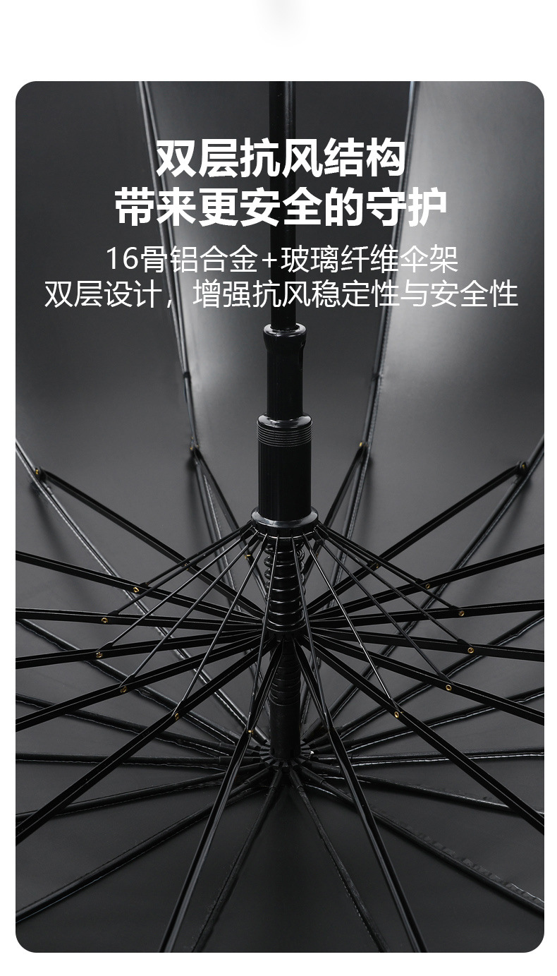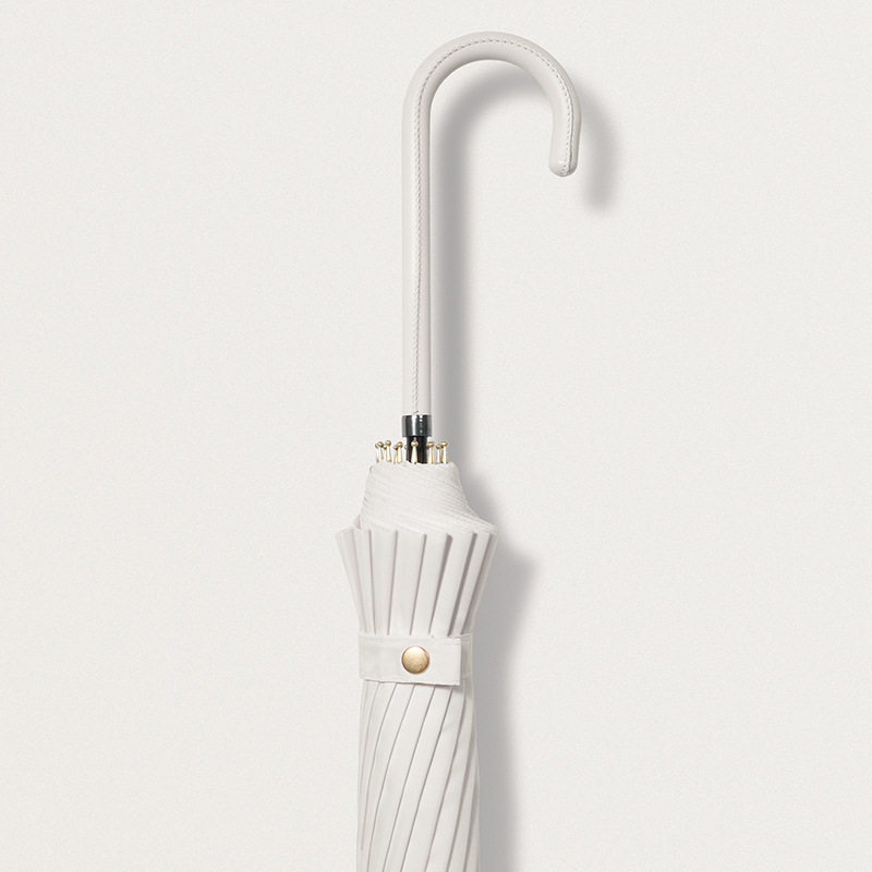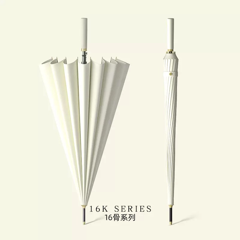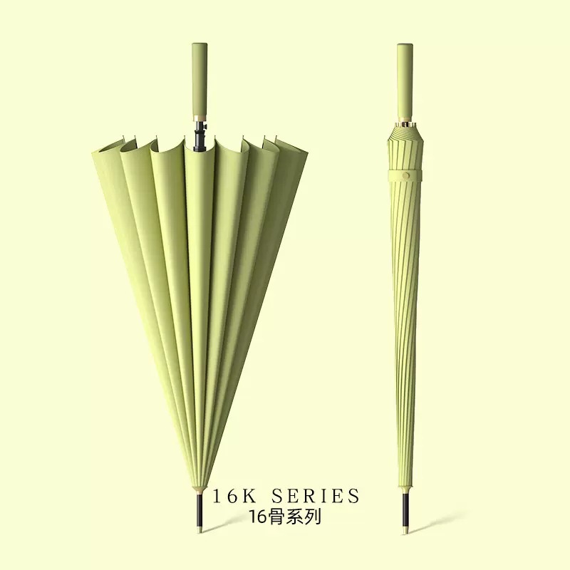 신선한 가죽 곡선 핸들 16 뼈 직선 우산 검은 접착제 태양 보호 자외선 차양 우산 비 및 비 이중 사용 긴 핸들 광고
