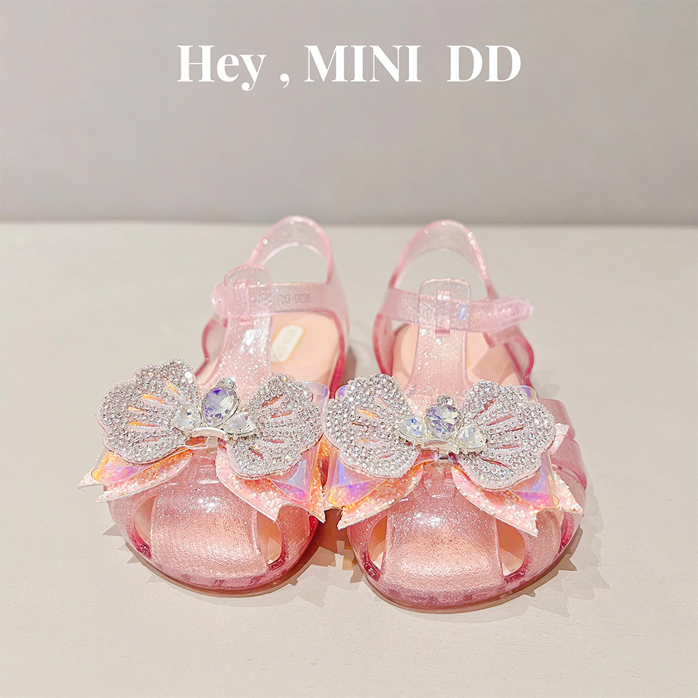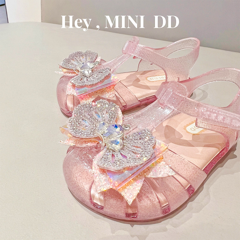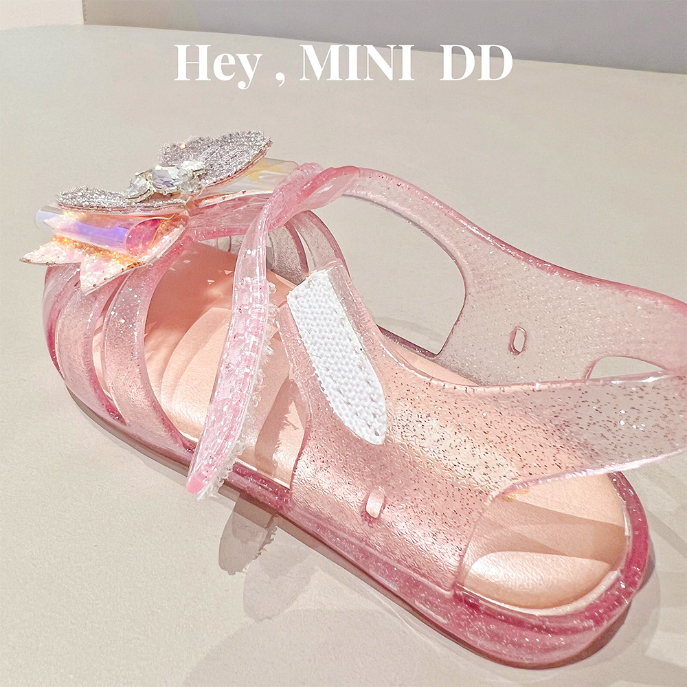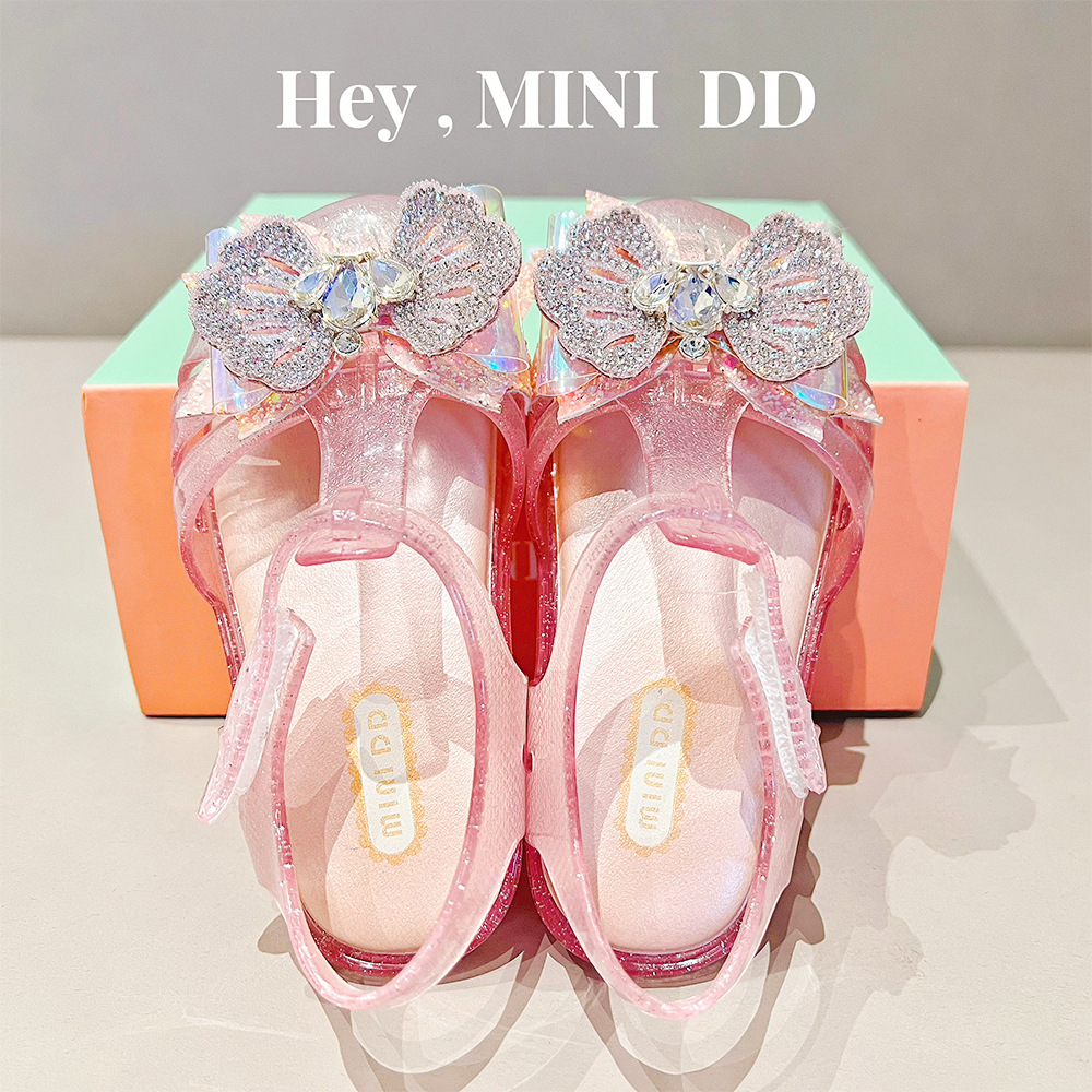 MINIDD2026 여름 신상 여아 공주 샌들 한국판 다이아몬드 나비 장식 편안한 소프트솔 젤리 샌들