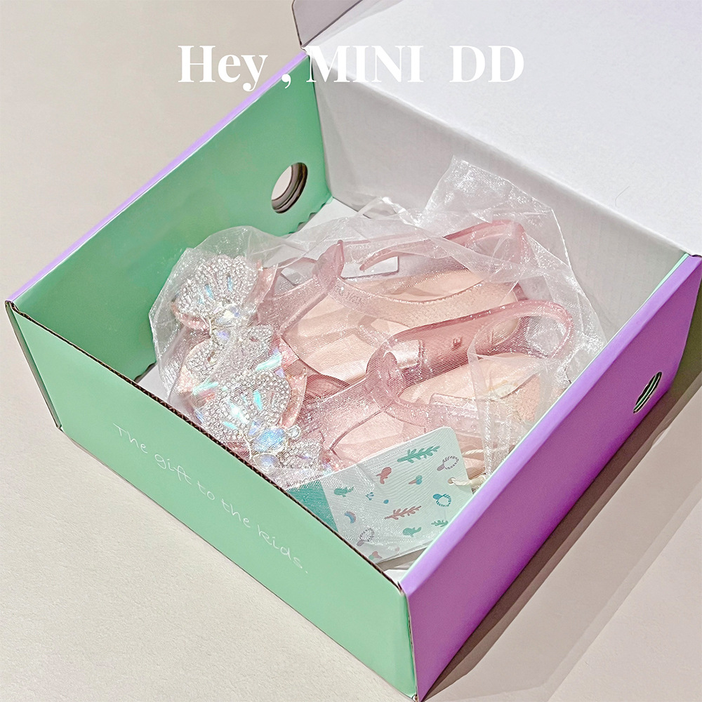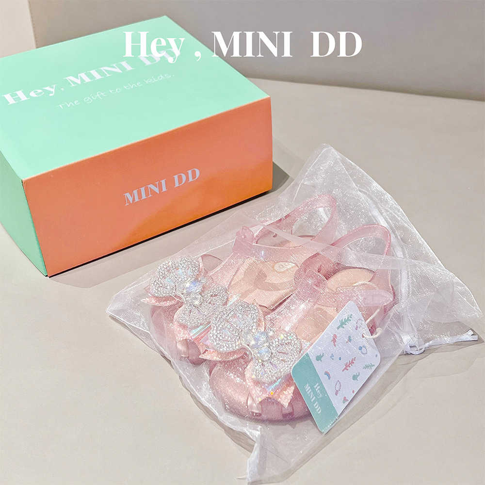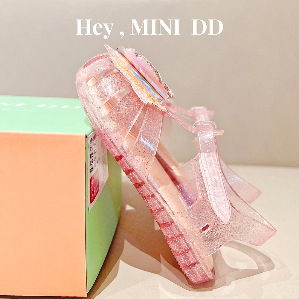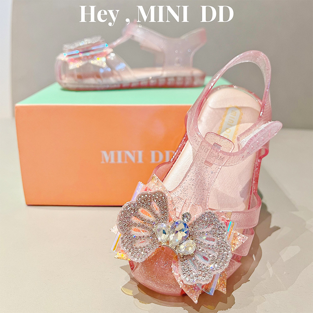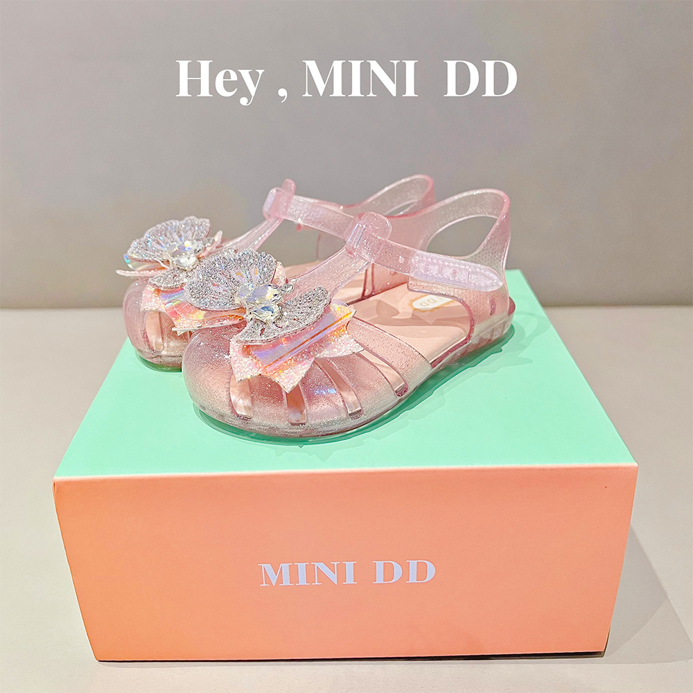 MINIDD2026 여름 신상 여아 공주 샌들 한국판 다이아몬드 나비 장식 편안한 소프트솔 젤리 샌들