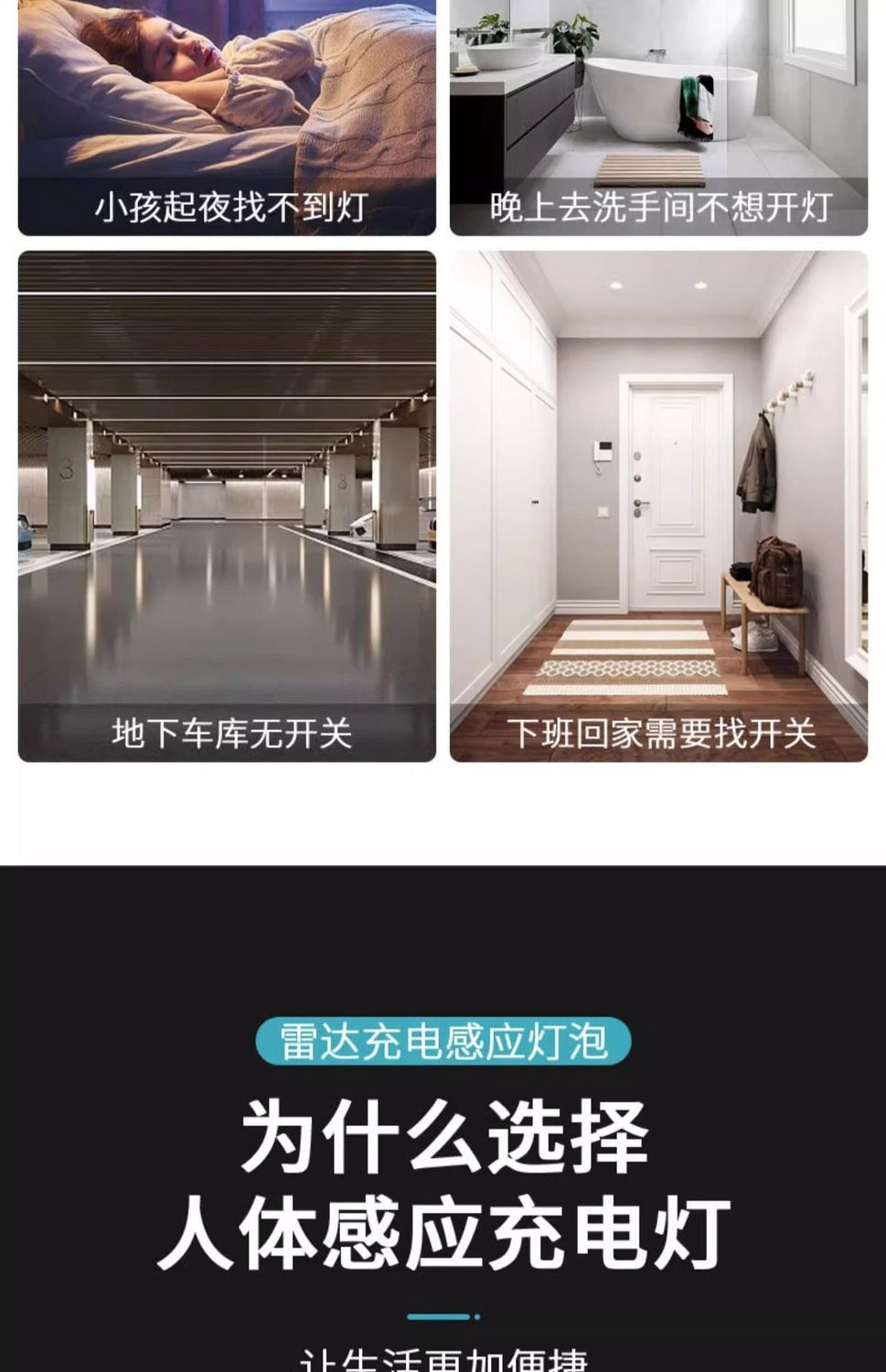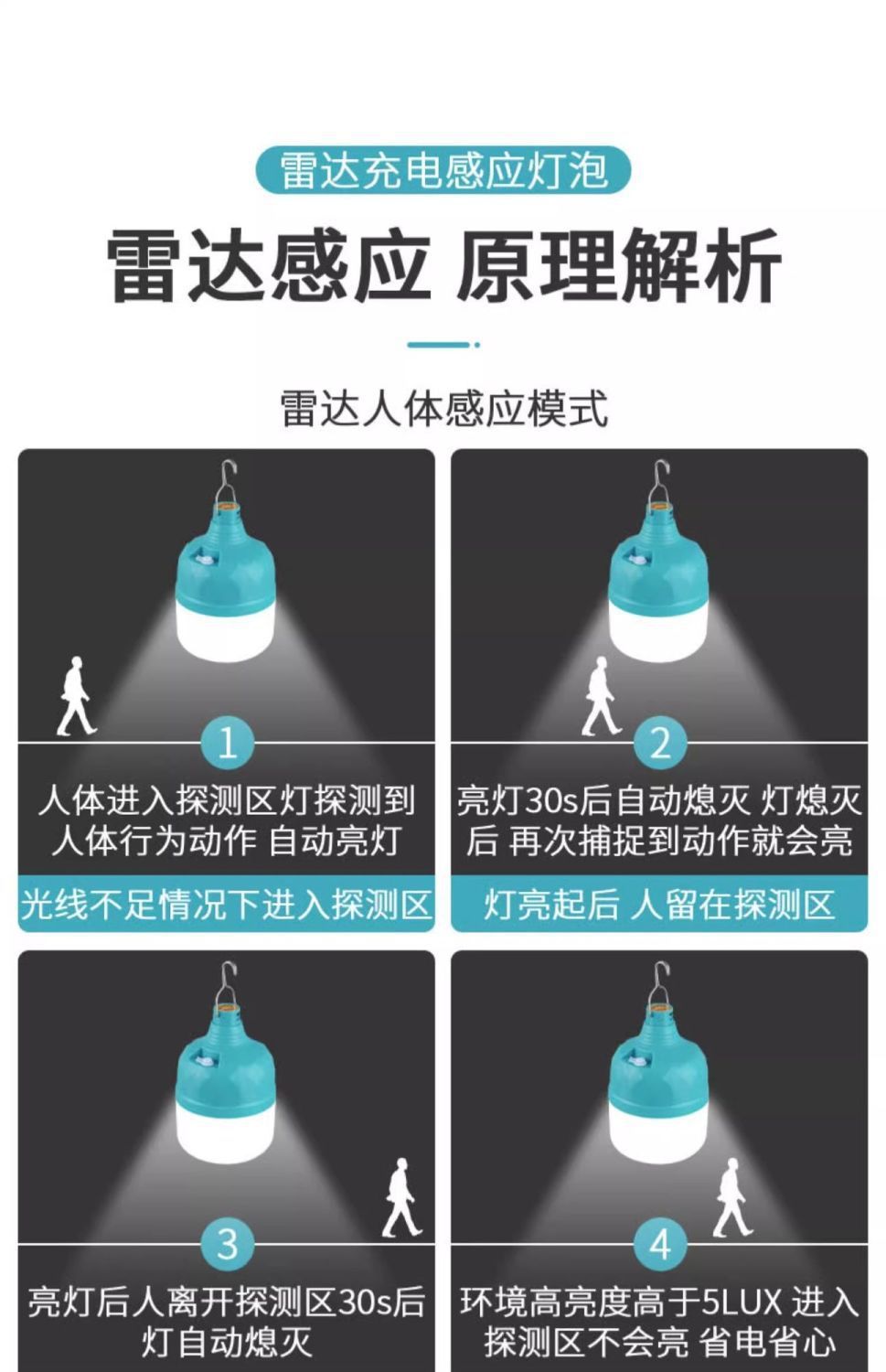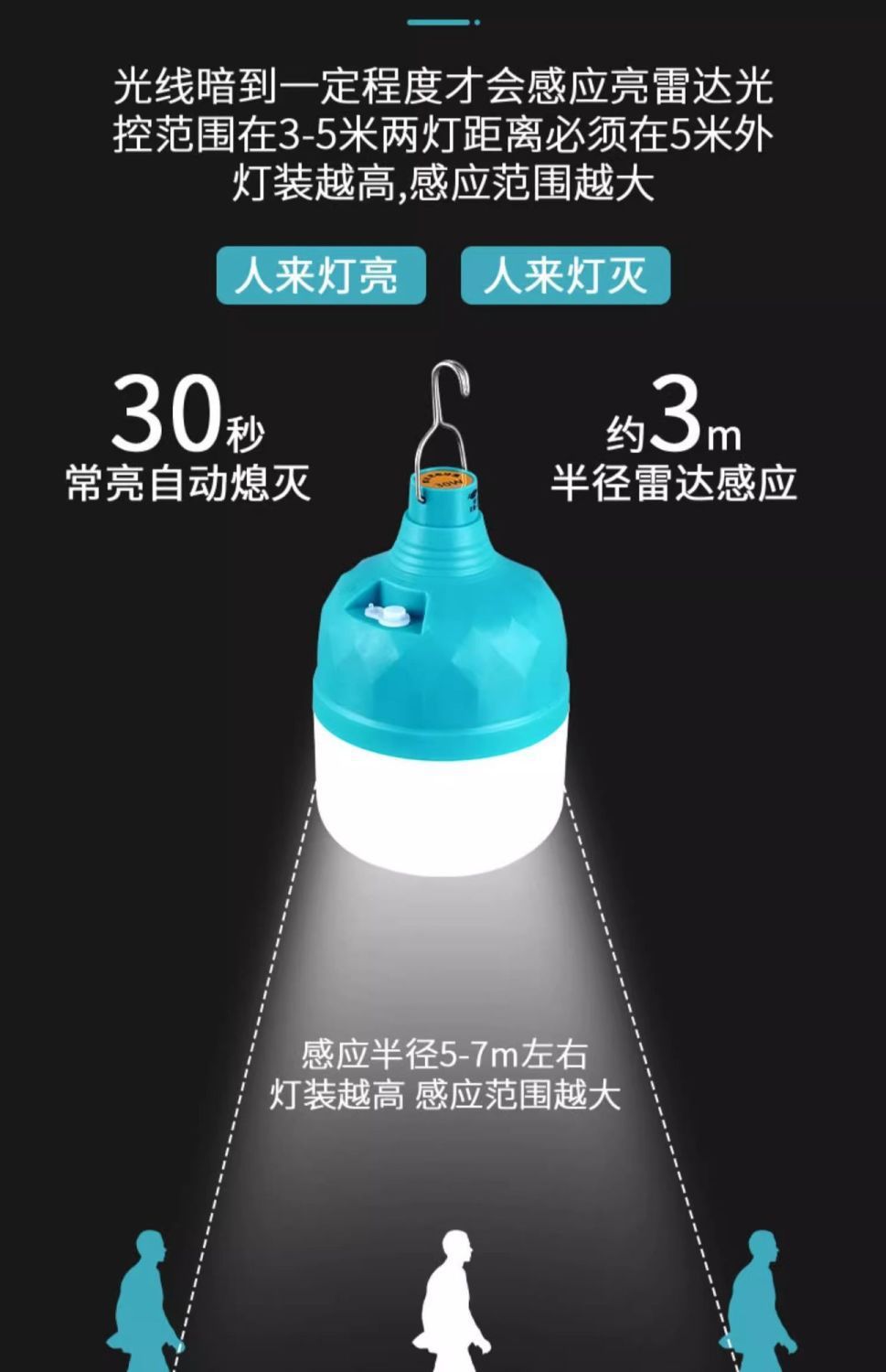 충전식 레이더 바디 센서 빛 무선 복도 복도 통로 야외 화장실 비 플러그인 led 전구