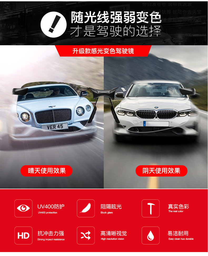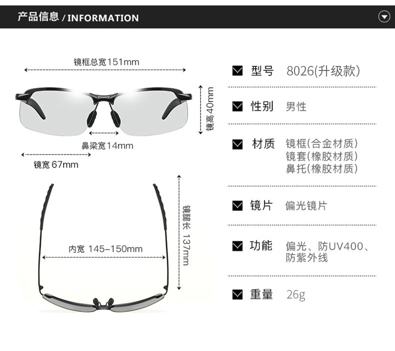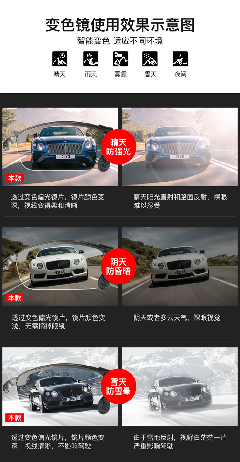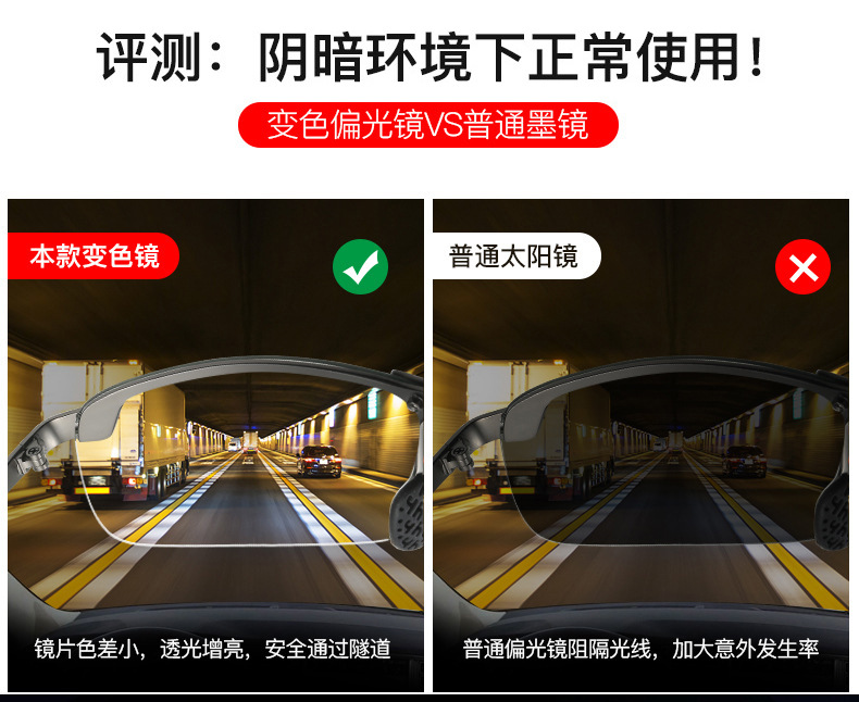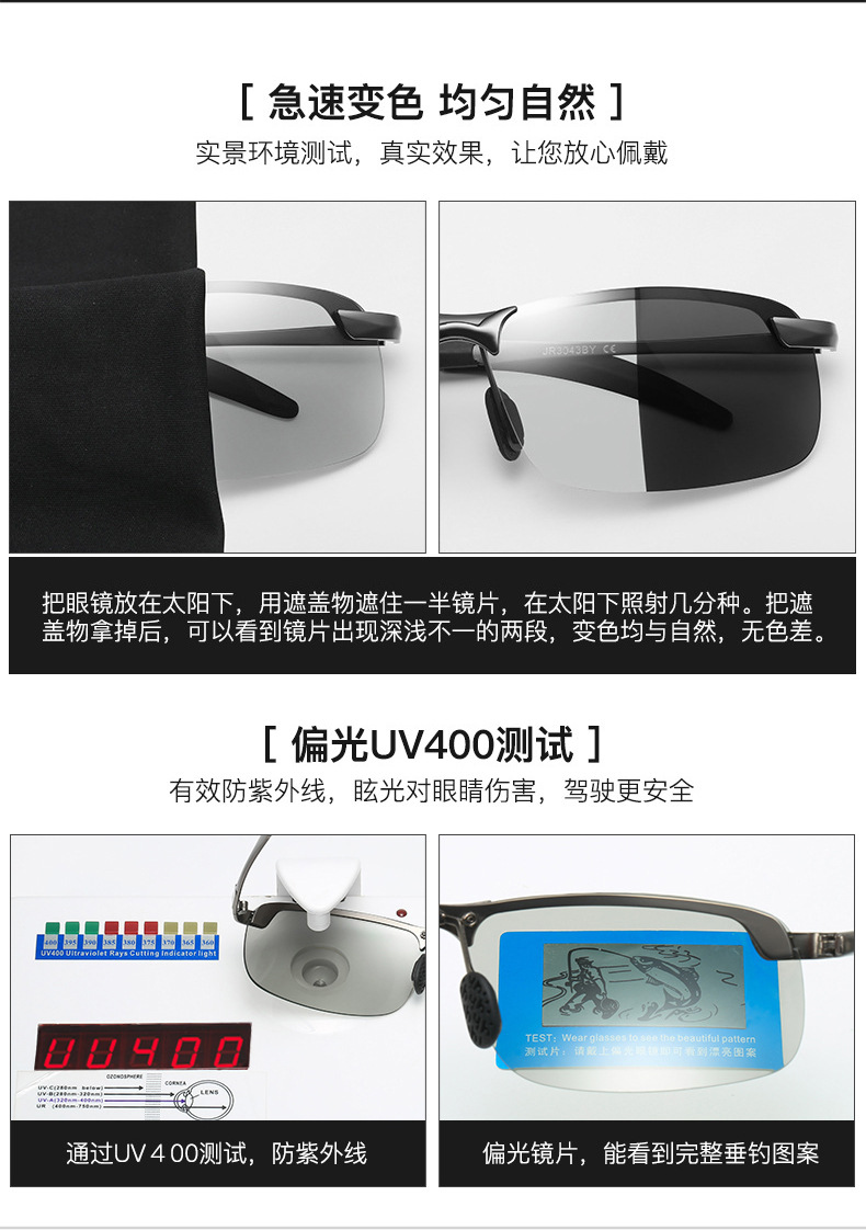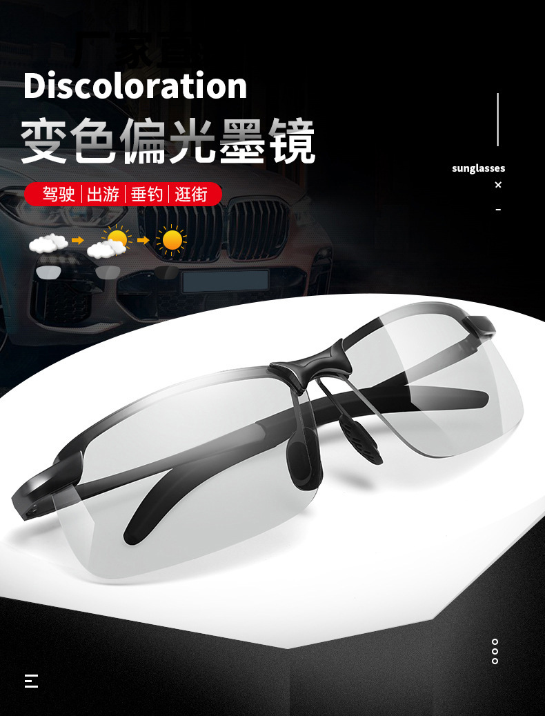 2024 새로운 편광 색상 변경 주야간 이중 사용 낚시 여행 선글라스 트렌디 한 하프 프레임 색상 변경 안경스토어 가기
