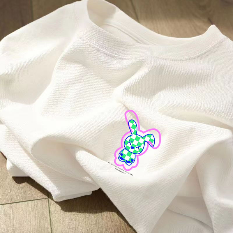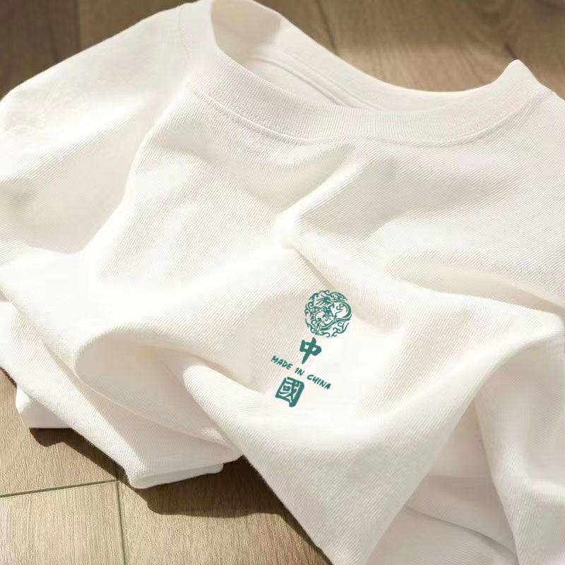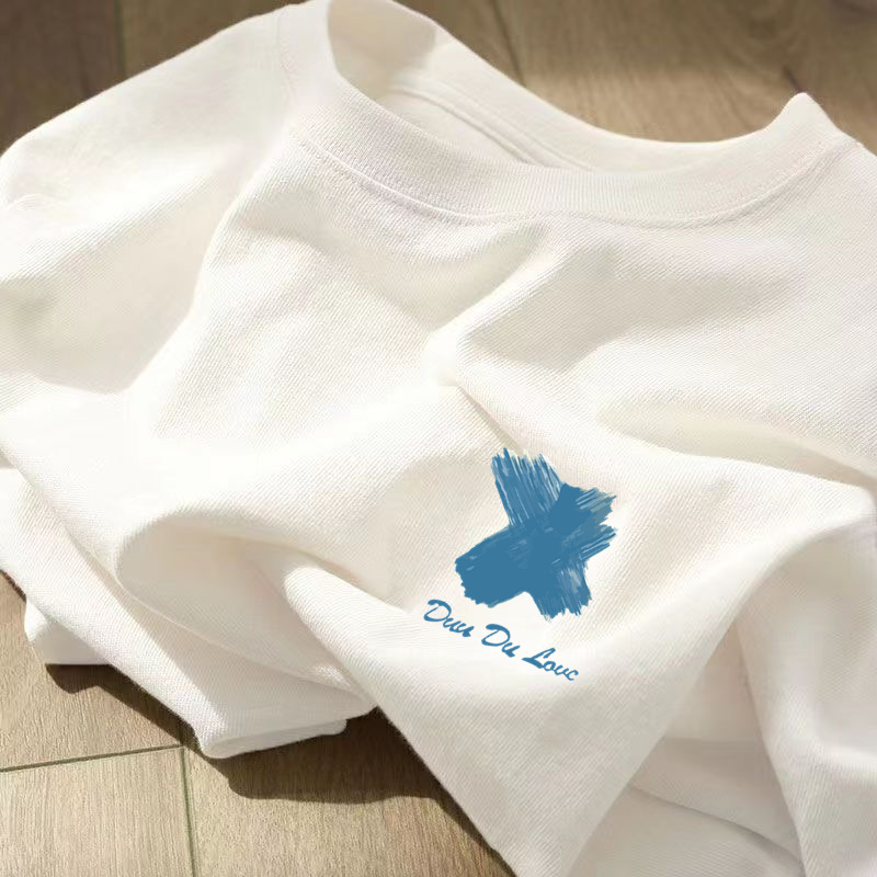 미국 복고풍 헤비 코튼 반팔 티셔츠 여성 여름 느슨한 한국식 트렌디 한 어깨 여성의 반소매 최고 도매