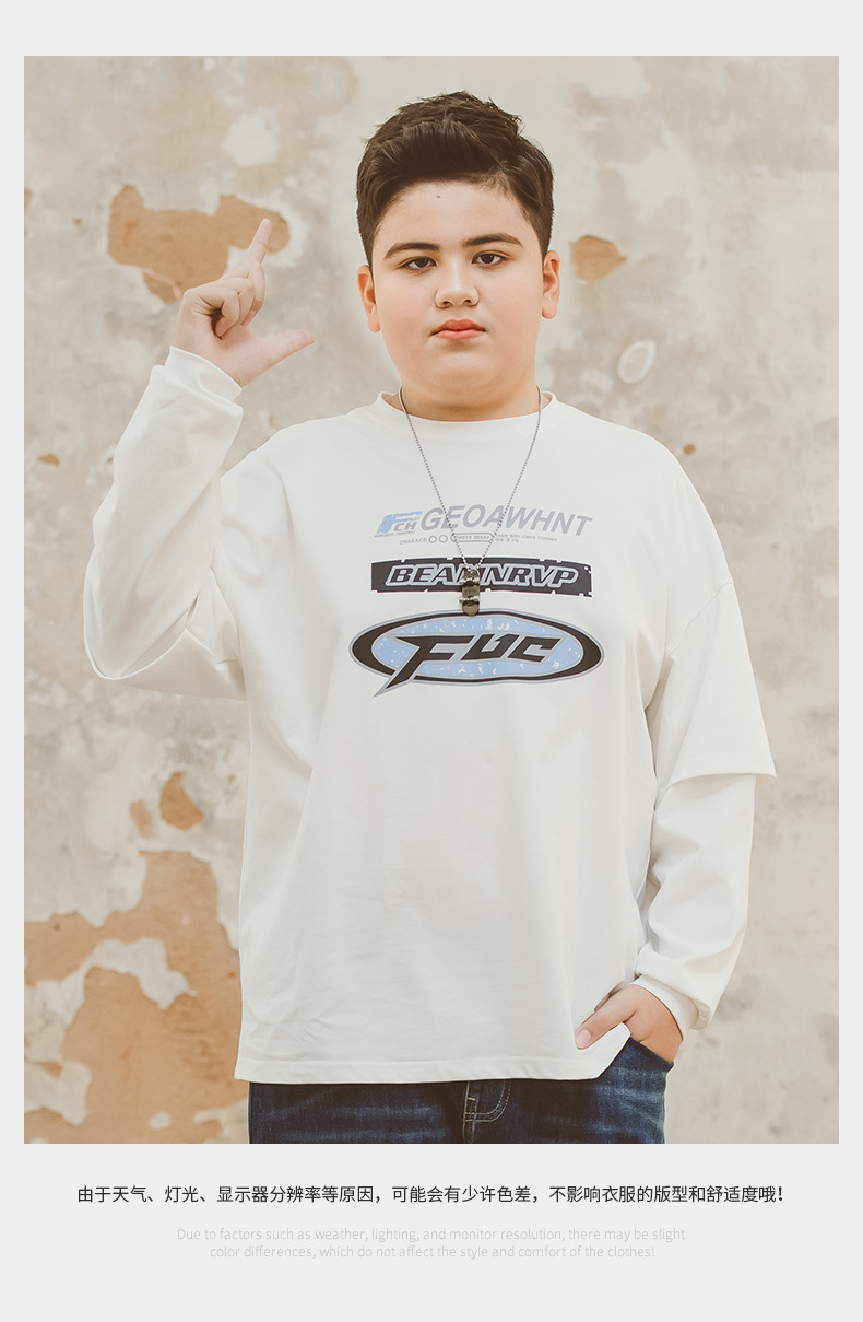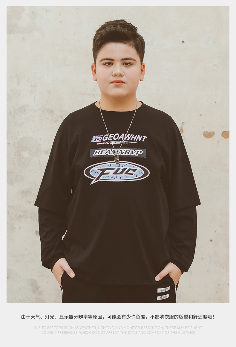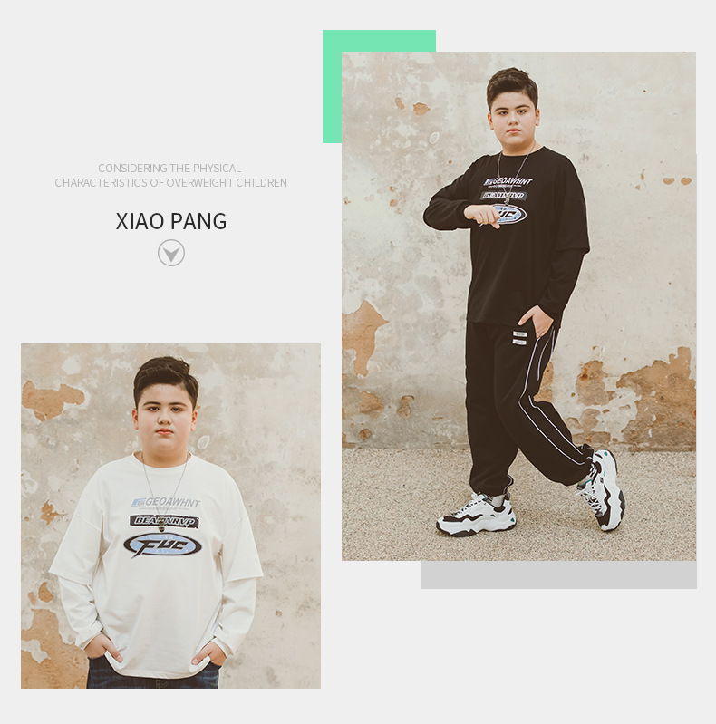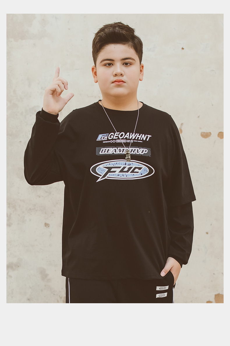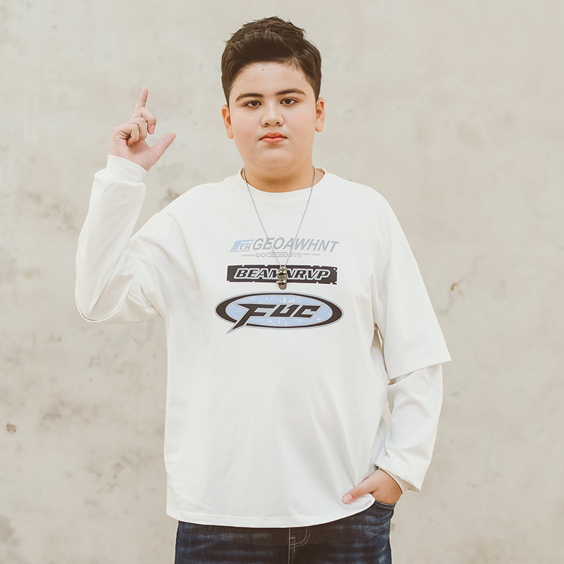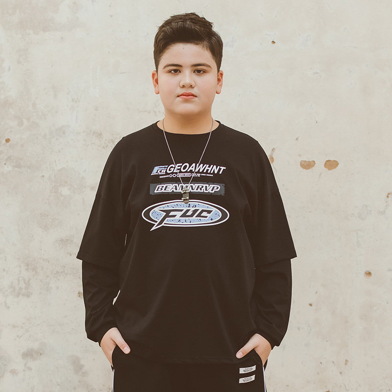 뚱뚱한 아동복 소년 티셔츠 봄 새 2024 Pu 잘 생긴 최고 미디어와 큰 아이들 플러스 사이즈 청소년 바닥 셔츠
