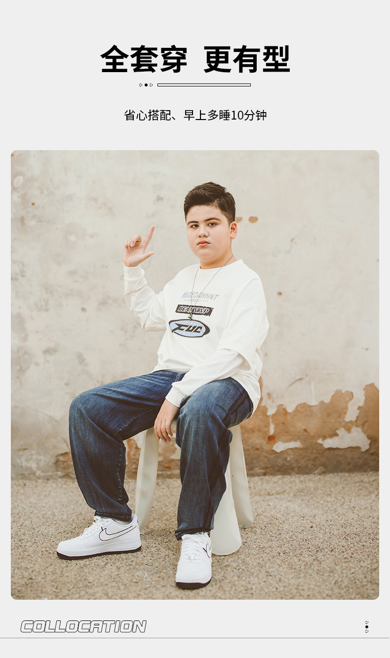 뚱뚱한 아동복 소년 티셔츠 봄 새 2024 Pu 잘 생긴 최고 미디어와 큰 아이들 플러스 사이즈 청소년 바닥 셔츠스토어 가기