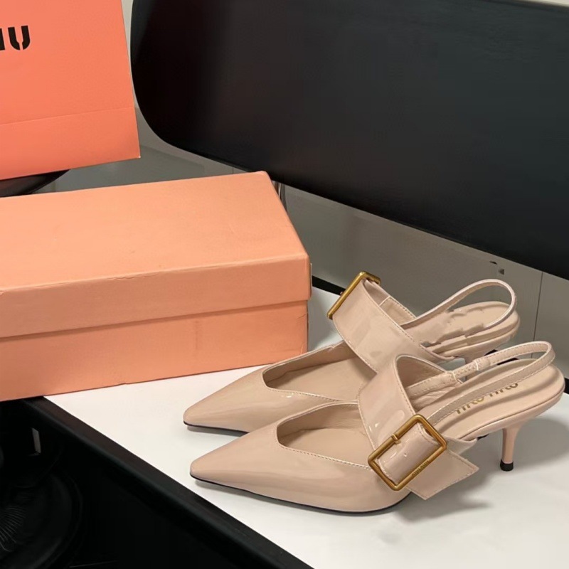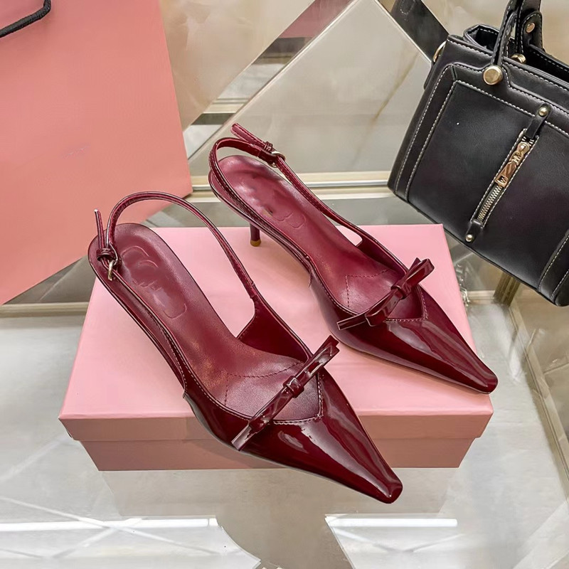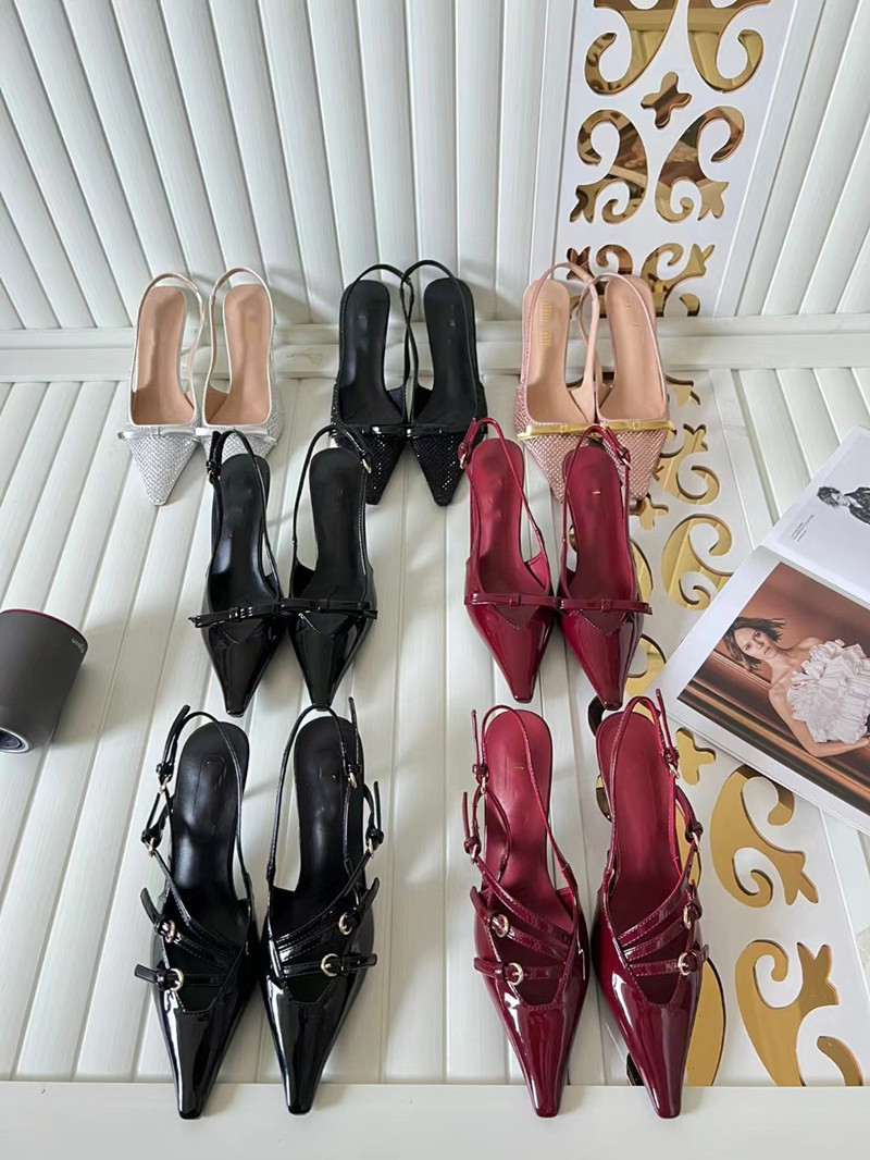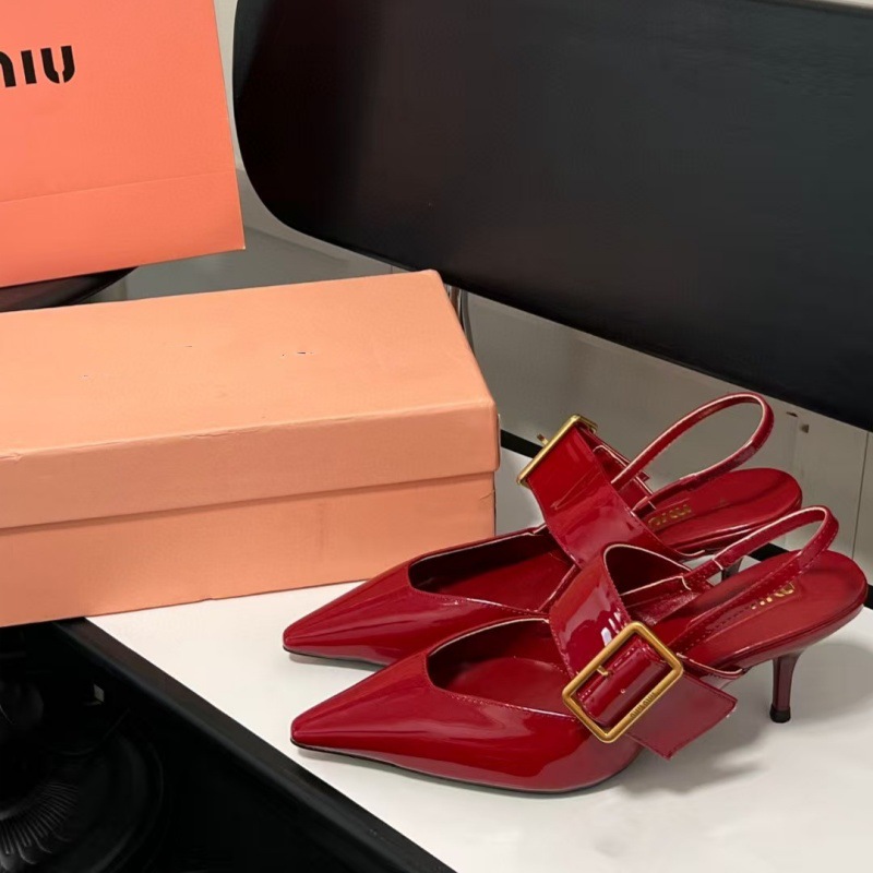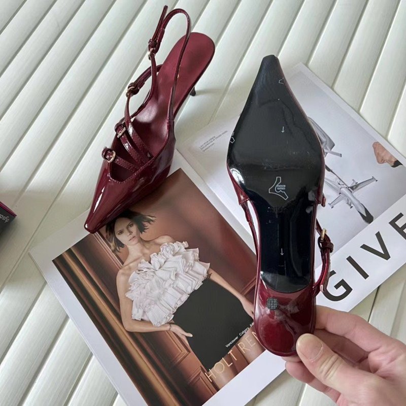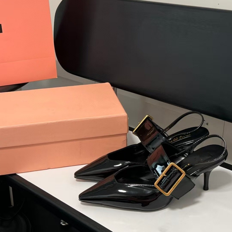 미홈 뾰족한 발가락 프랑스 벨트 버클 부르고뉴 발가락 샌들 빈티지 특허 가죽 하이힐 여성 뒷발 빈 메리 제인 신발스토어 가기