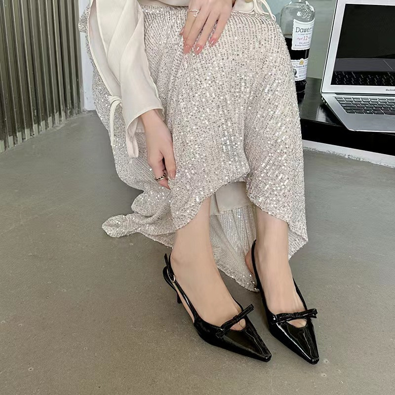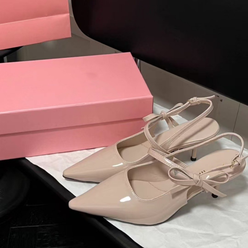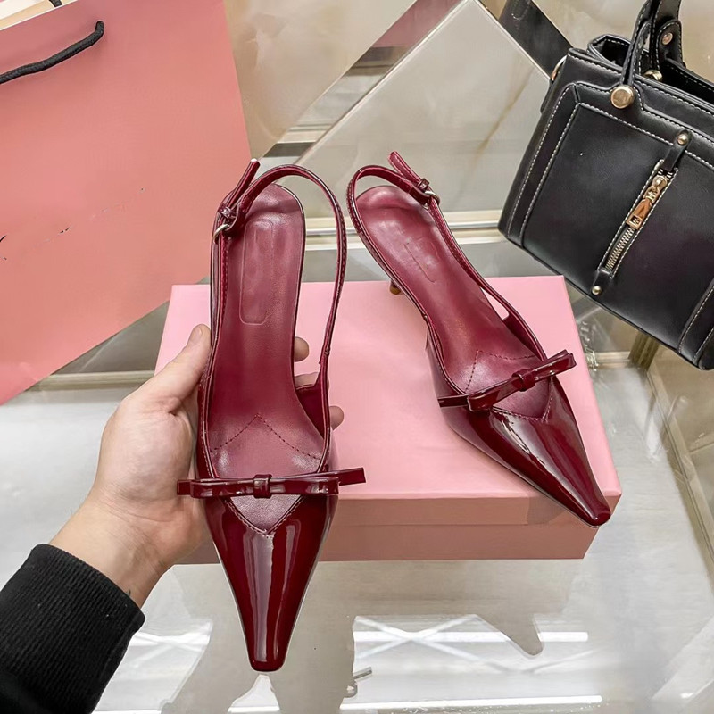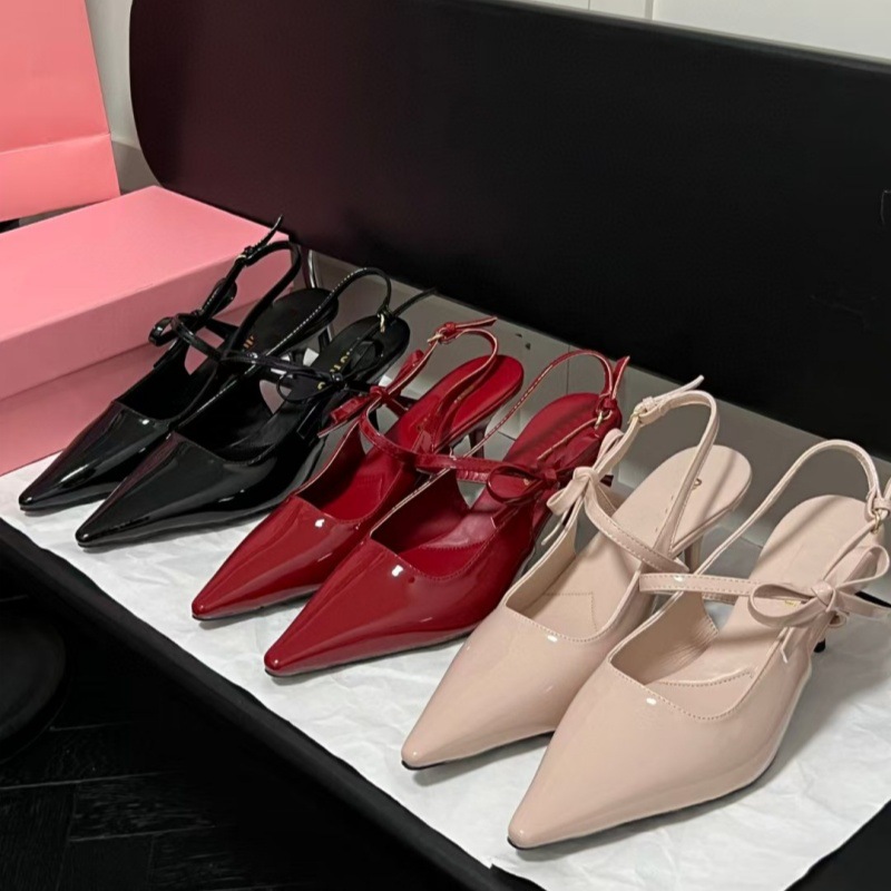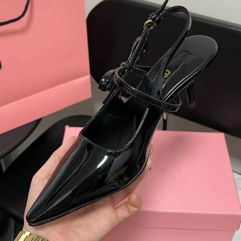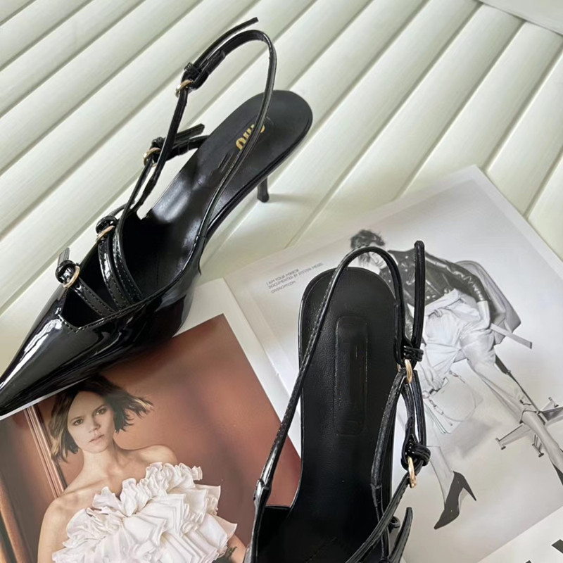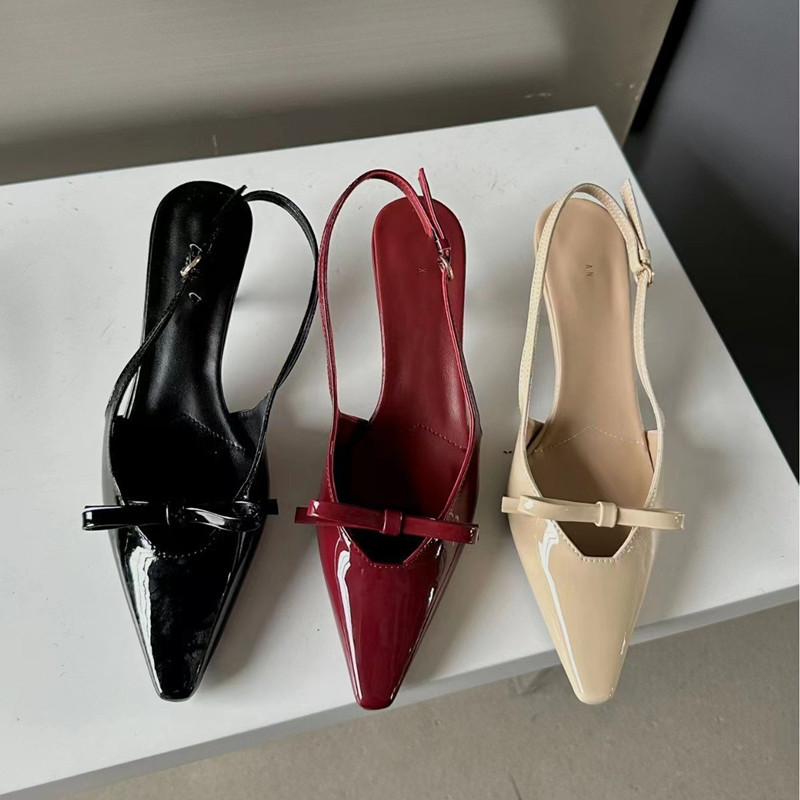 미홈 뾰족한 발가락 프랑스 벨트 버클 부르고뉴 발가락 샌들 빈티지 특허 가죽 하이힐 여성 뒷발 빈 메리 제인 신발스토어 가기