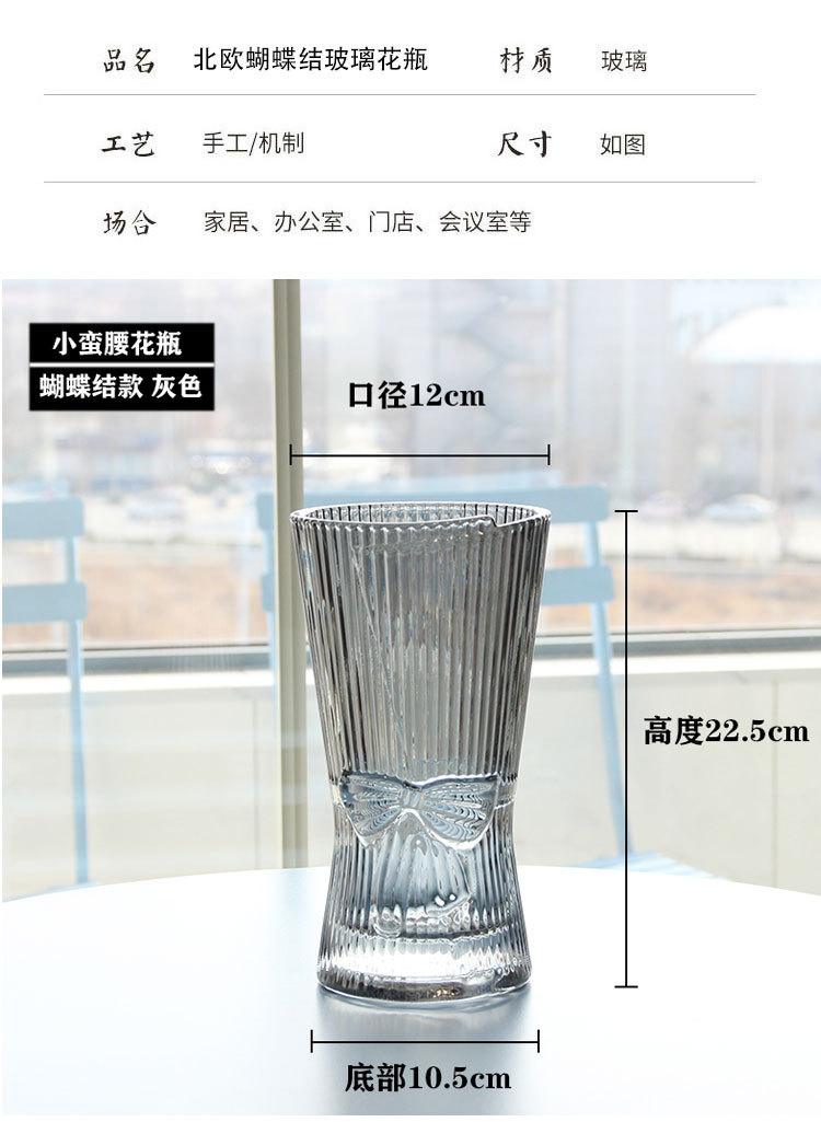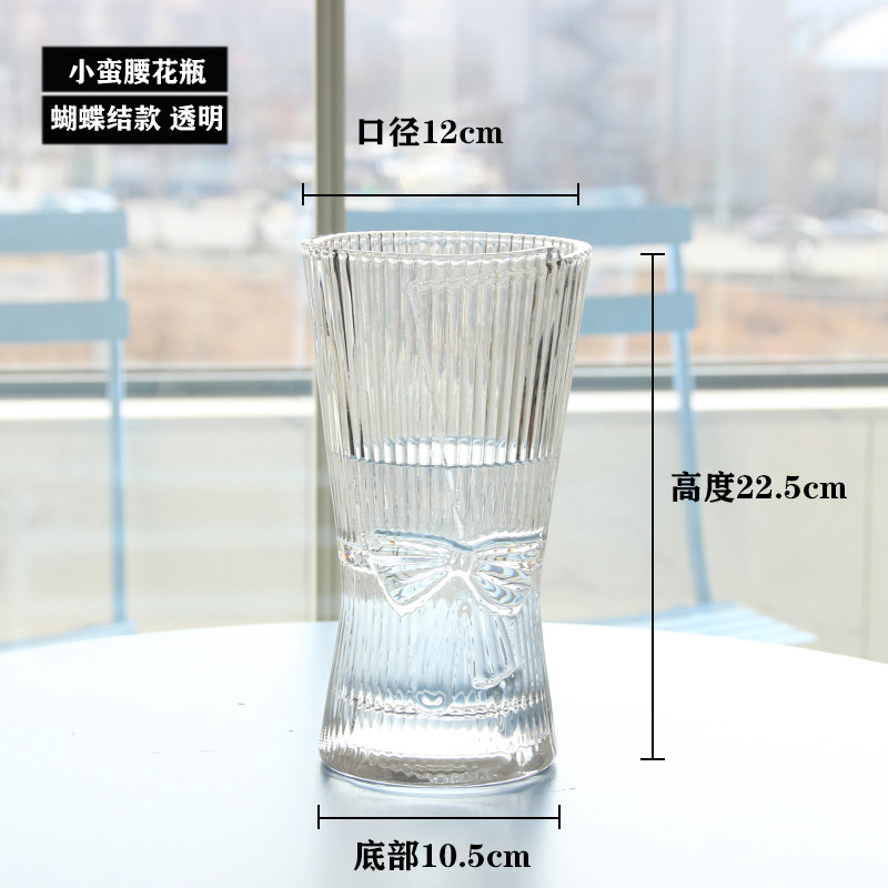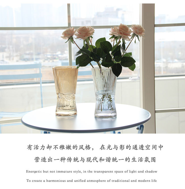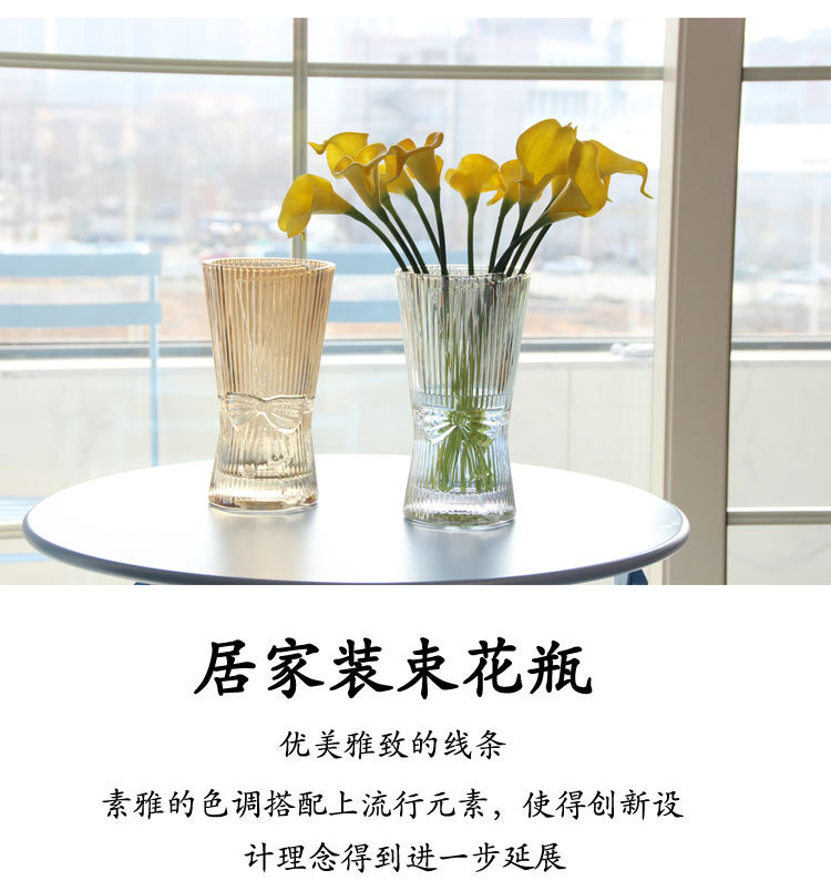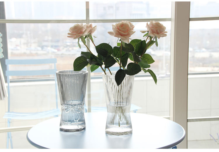 Bowknot 유리 꽃병 투명 수경 녹색 무 풍부한 대나무 릴리 로즈 꽃병 거실 꽃꽂이 거실 장식스토어 가기