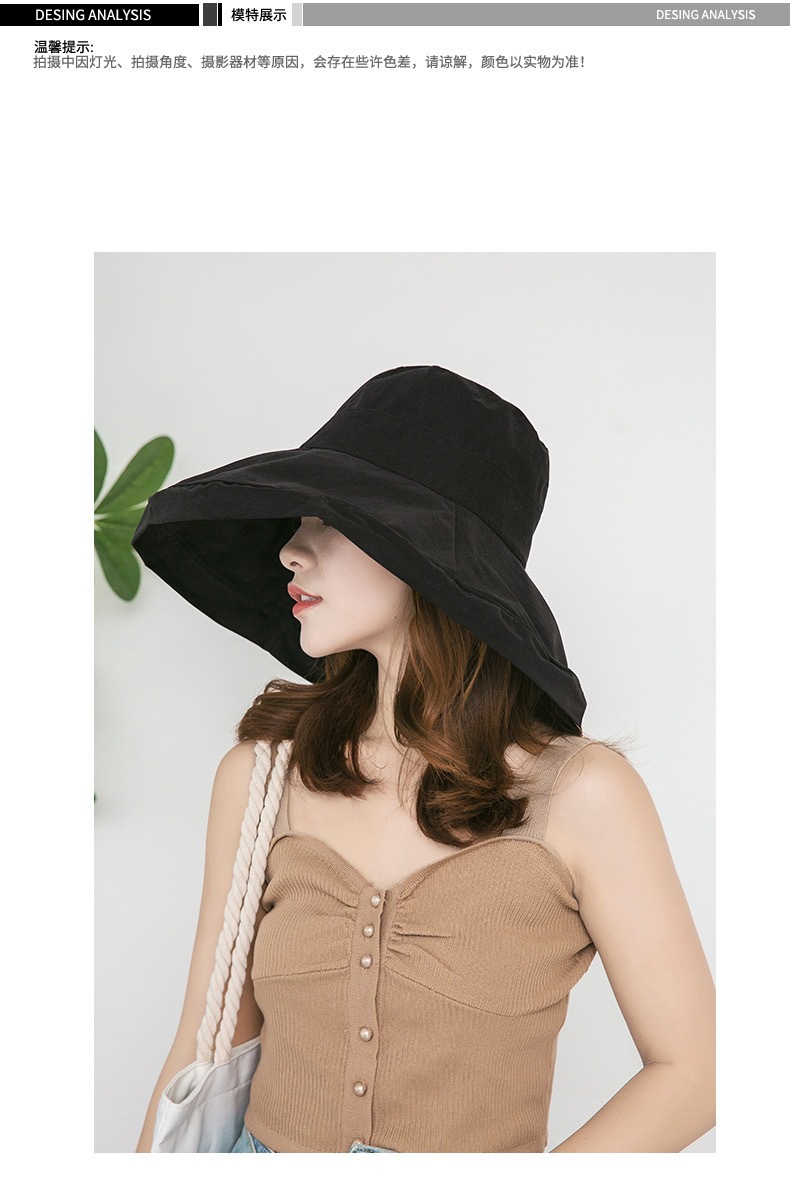 여름 큰 테두리 태양 모자 방풍 모자 여성 한국 복숭아 모피 어부 모자 야외 태양 모자 큰 테두리 모자 여성스토어 가기