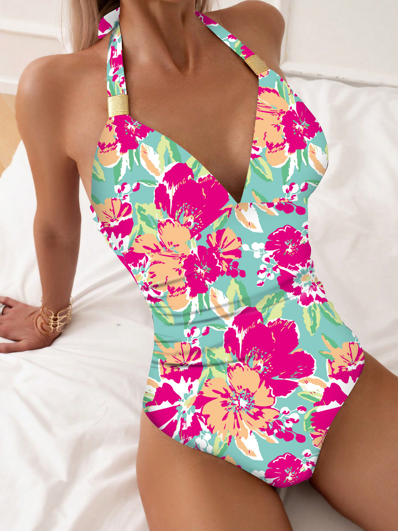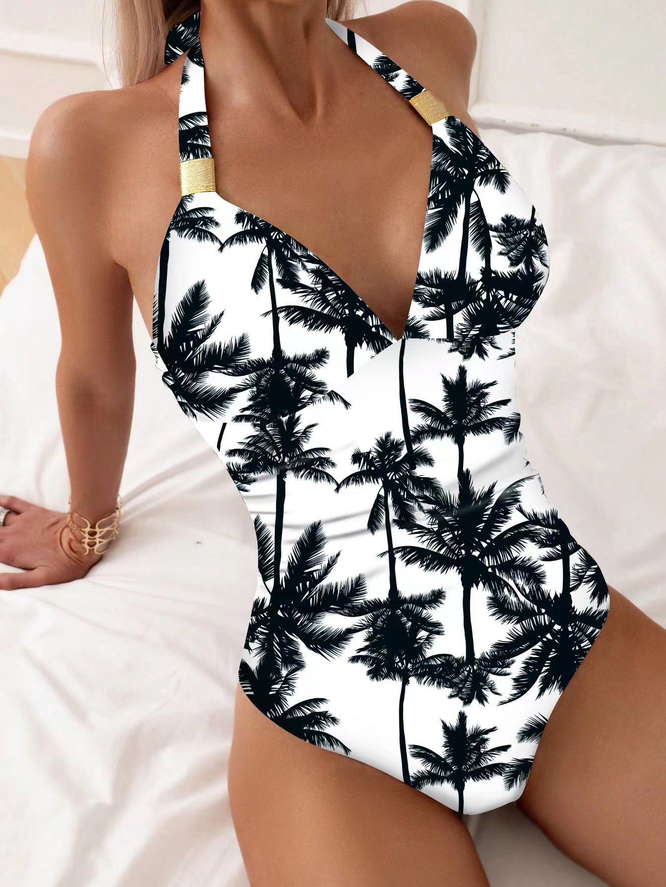 유럽과 미국의 대외 무역 원피스 수영복 여성의 보수적 인 슬리밍 퀵 드라이 수영복 비치 온천 휴가 레이스 스트랩 수영복