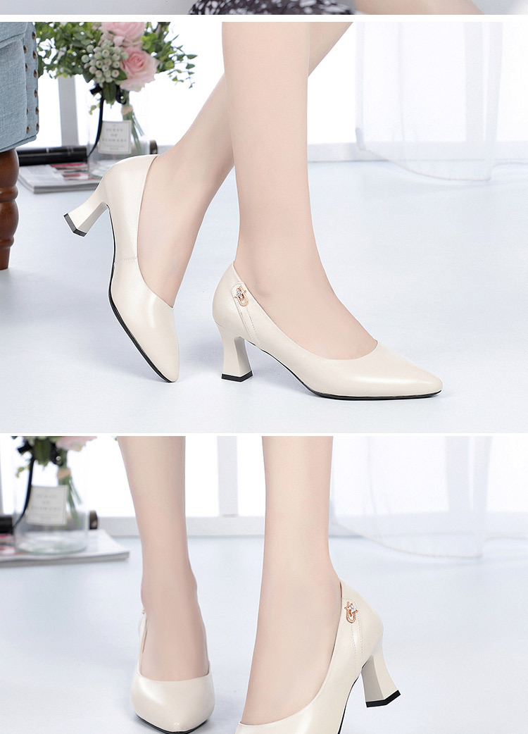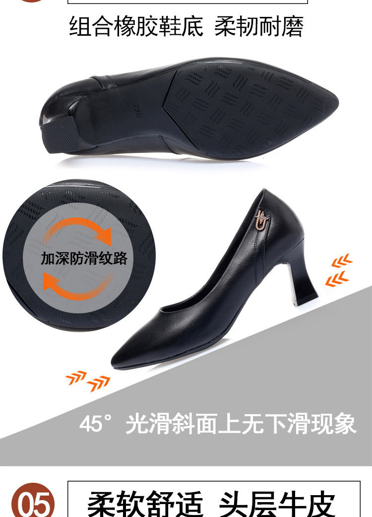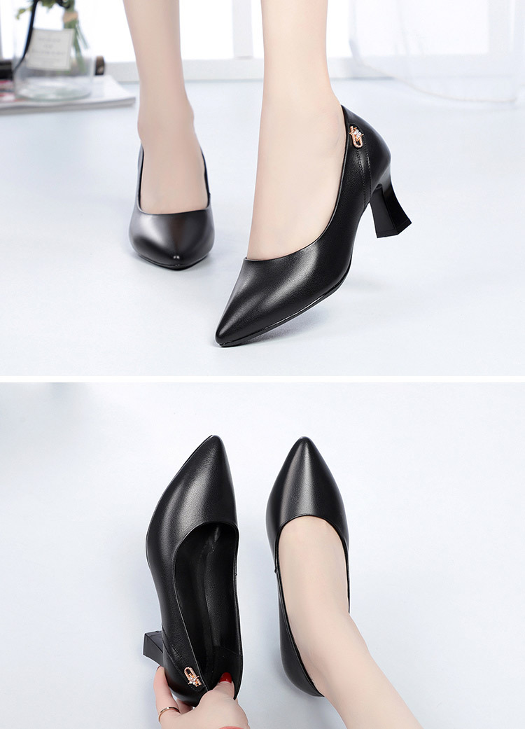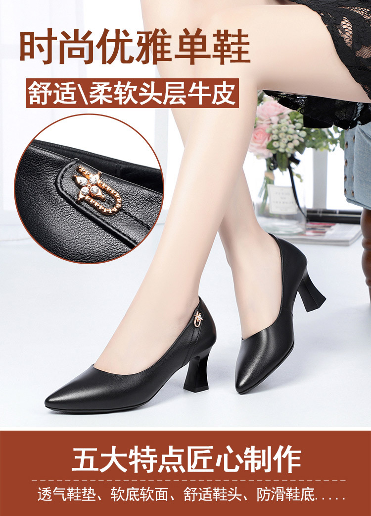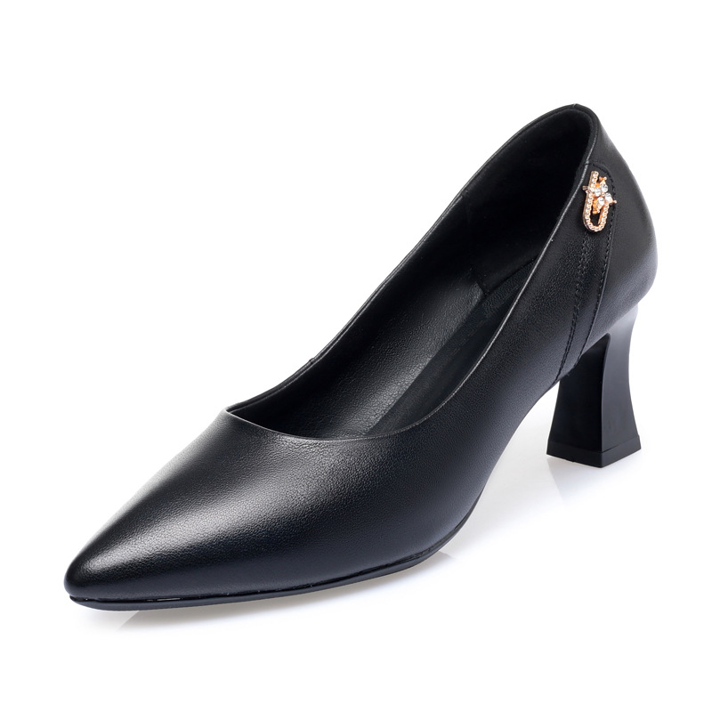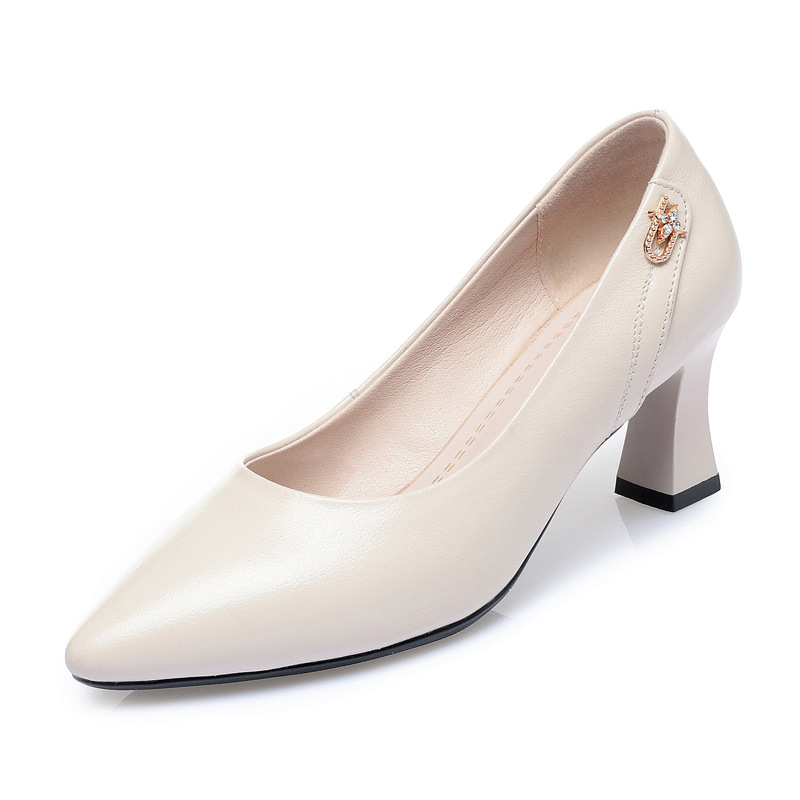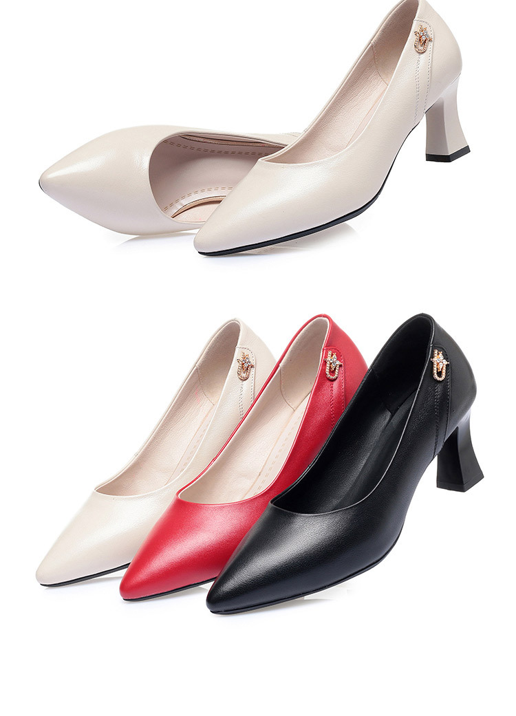 레드 싱글 레이어 신발 여성의 부드러운 가죽 청키 힐 미드 힐 가죽 로우 입 미끄럼 방지 가죽 신발 봄과 여름 하이힐 부드러운 바닥 뾰족한 여성 신발