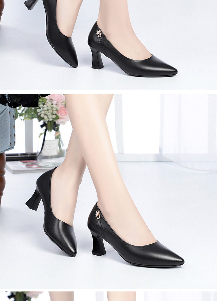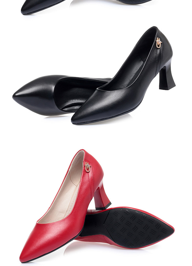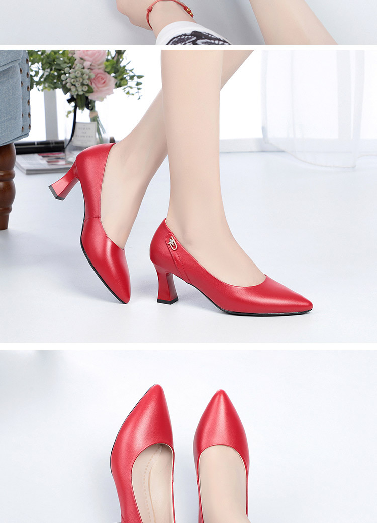레드 싱글 레이어 신발 여성의 부드러운 가죽 청키 힐 미드 힐 가죽 로우 입 미끄럼 방지 가죽 신발 봄과 여름 하이힐 부드러운 바닥 뾰족한 여성 신발스토어 가기