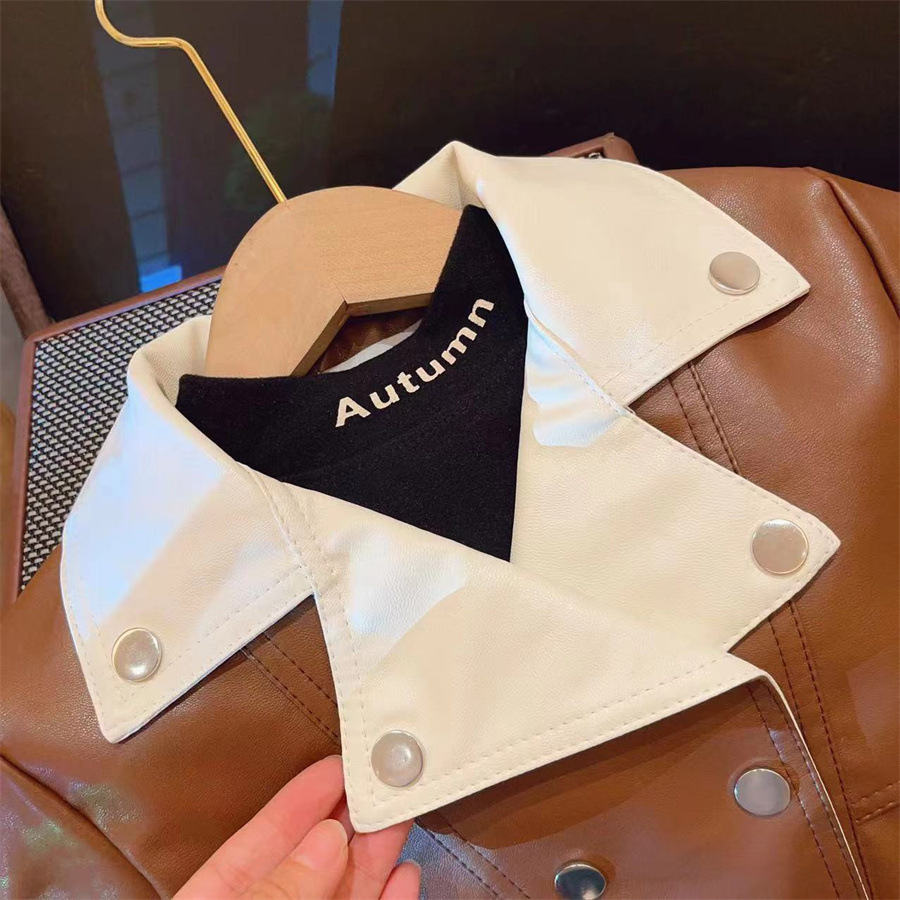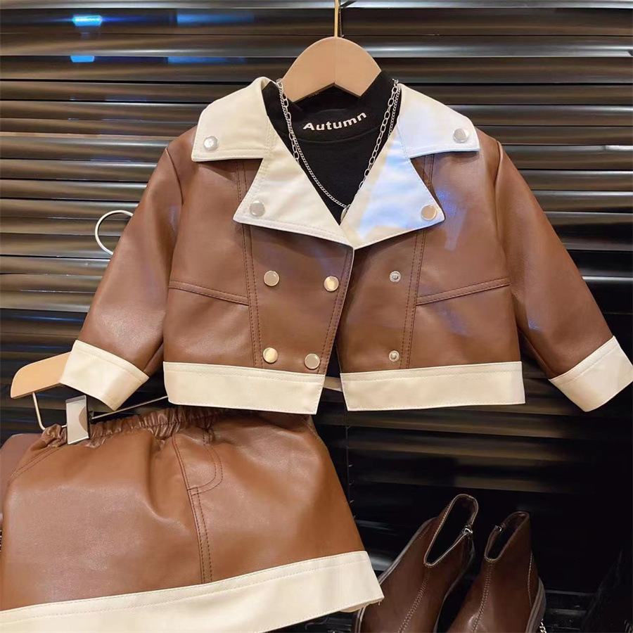 새로운 소녀 세트 가을 새로운 2024 유행 가죽 코트 스커트 아동복 투피스 세트스토어 가기