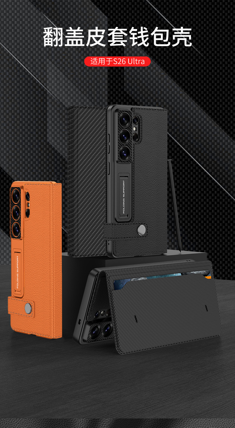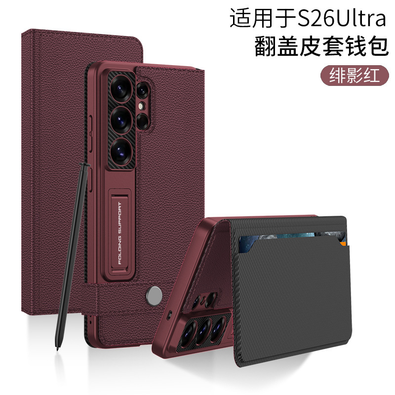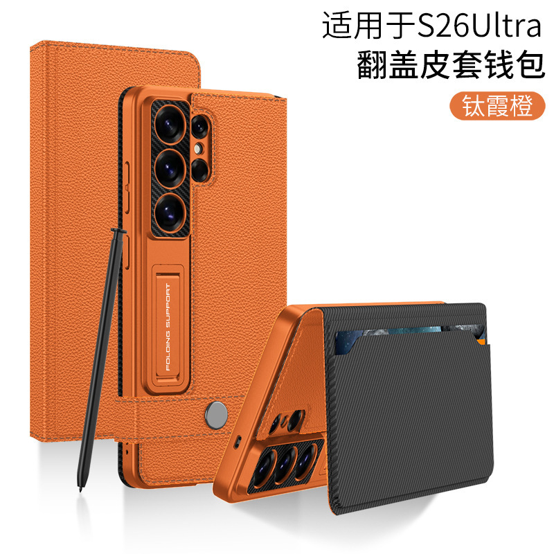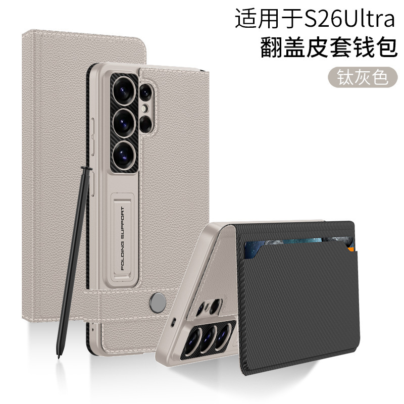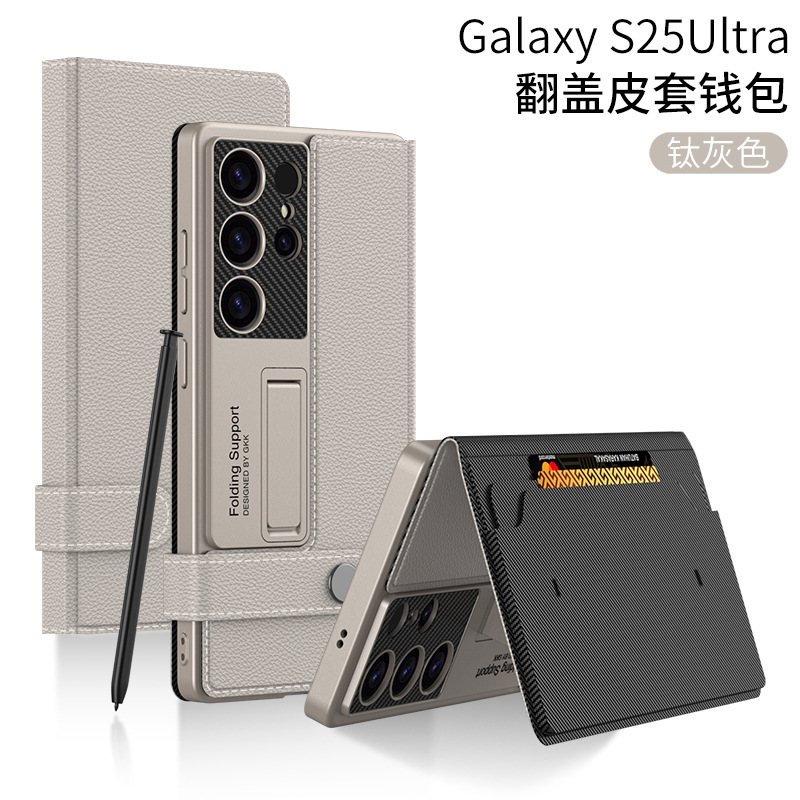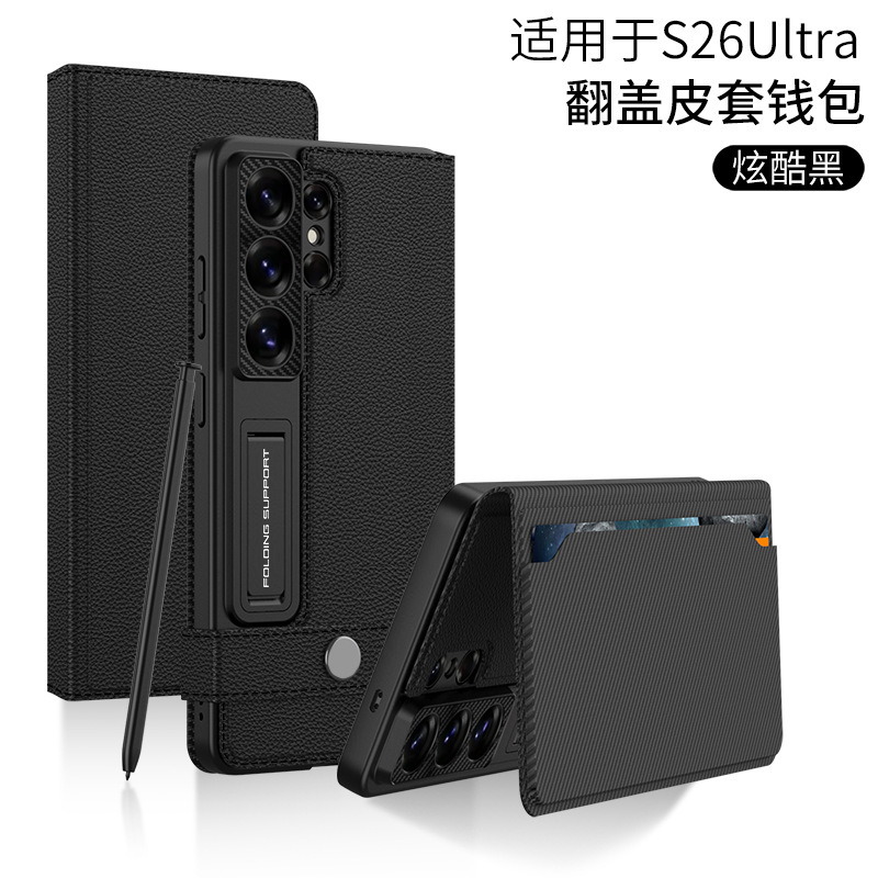 삼성 S26/25Ultra 휴대폰 케이스에 적합 24U 카드 수납 플립 가죽 케이스 지갑형 스탠드 S23U 보호 케이스