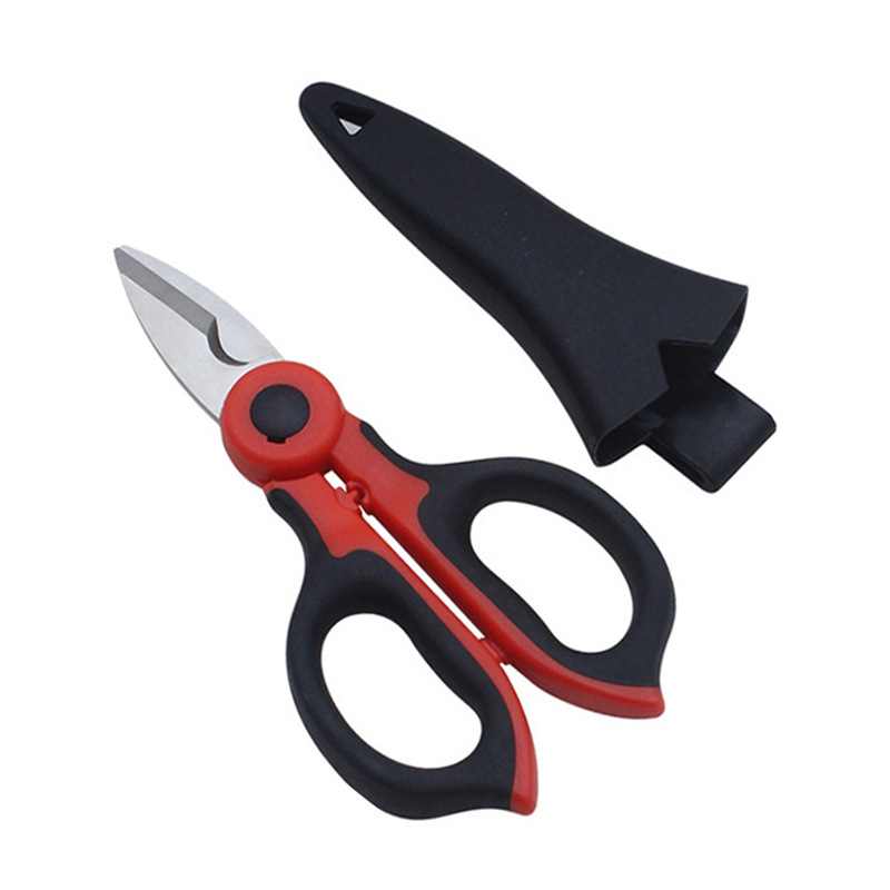 빨간색과 검은 색 전기 가위 스테인레스 스틸 전기 가위 가정용 다목적 전기 와이어 가위 낚시 와이어 가위 철 가위