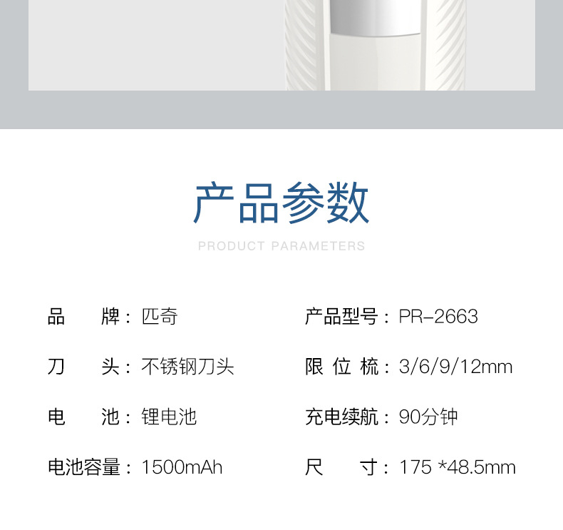 프리텍 헤어 클리퍼 피치 전기 클리퍼 헤어 피치 충전식 전기 클리퍼 PR-2663
