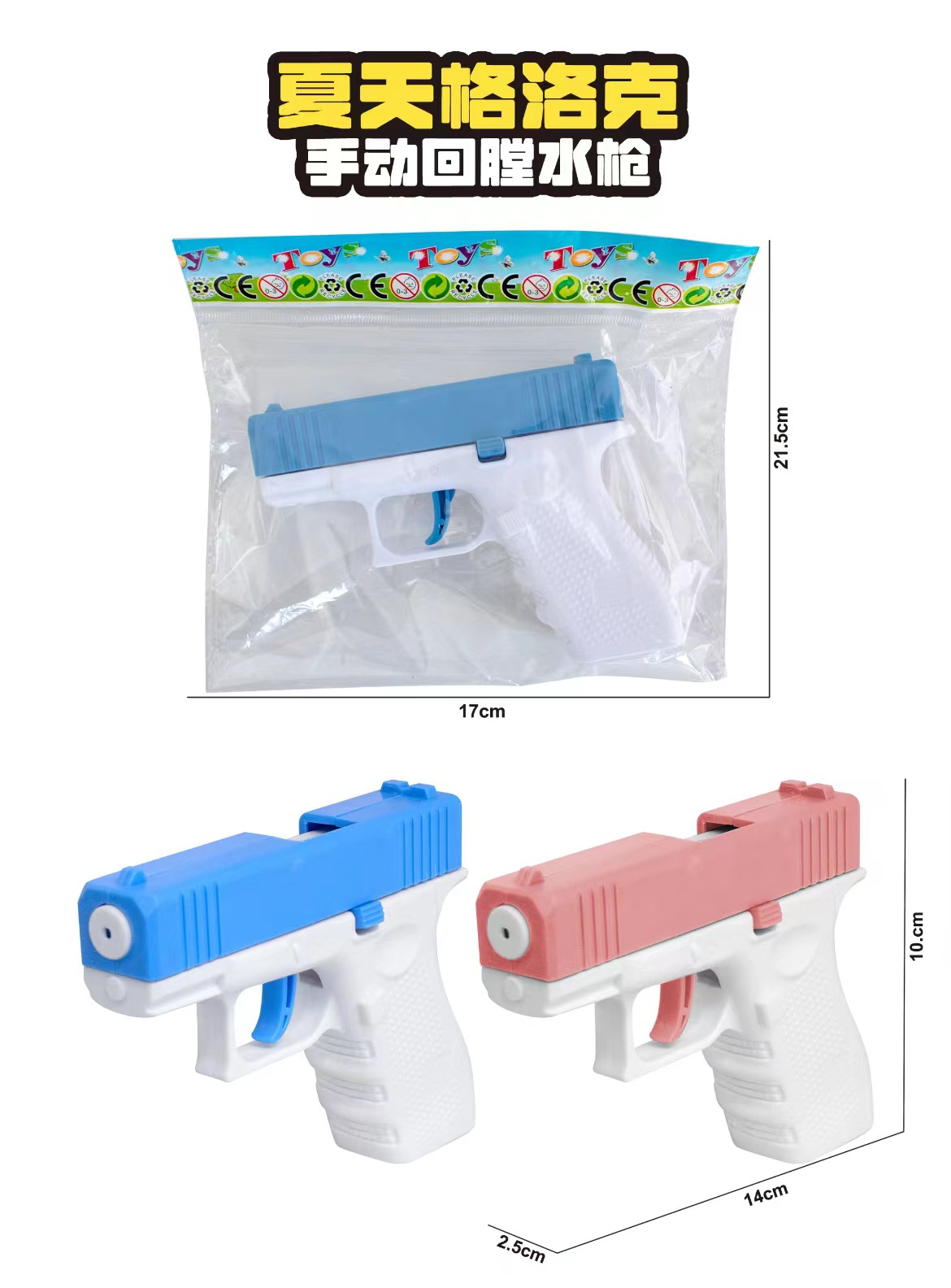 • 글록 수동 재 장전 물 총 핑크 가방