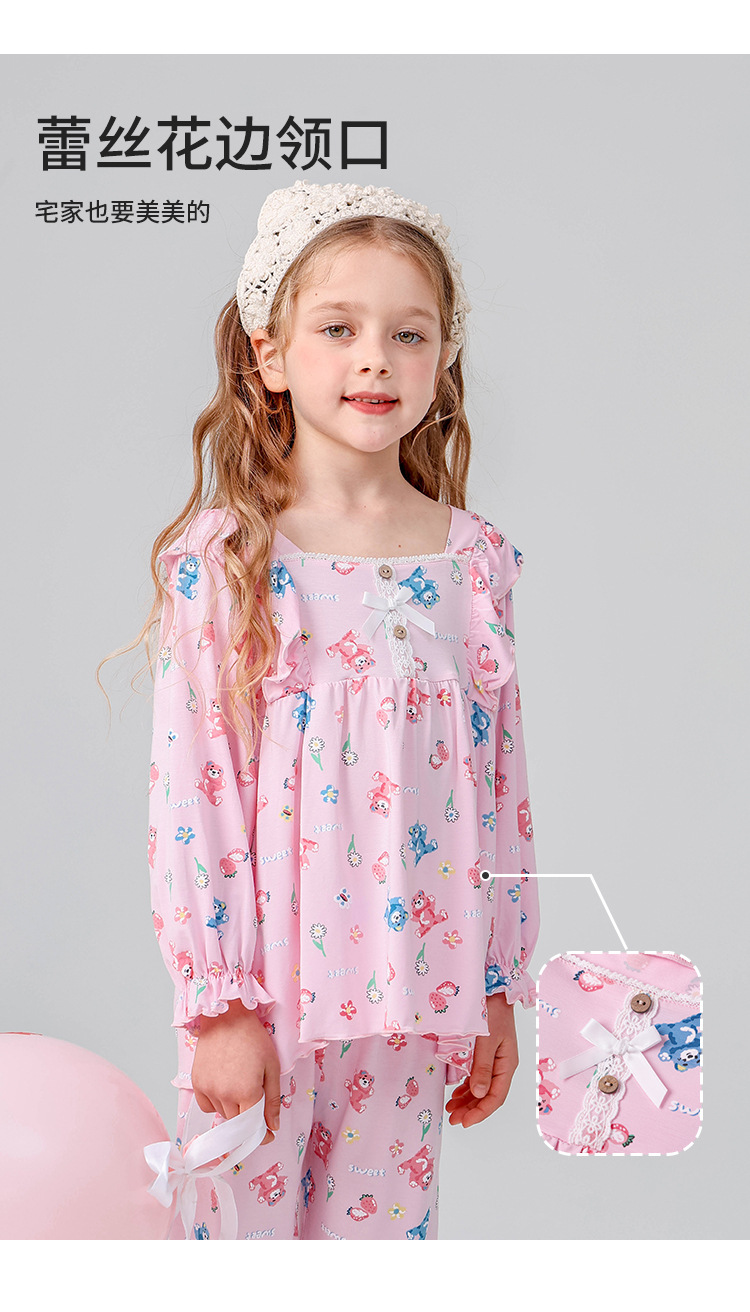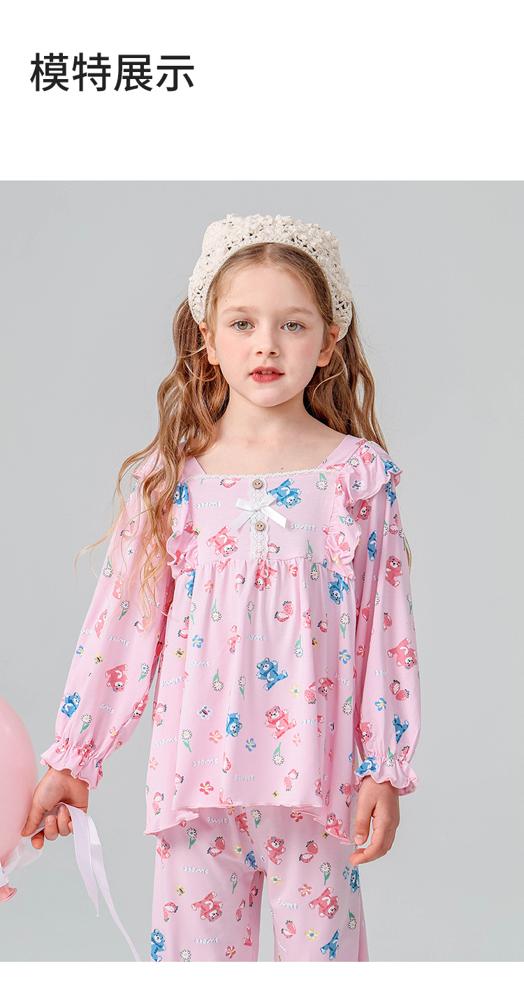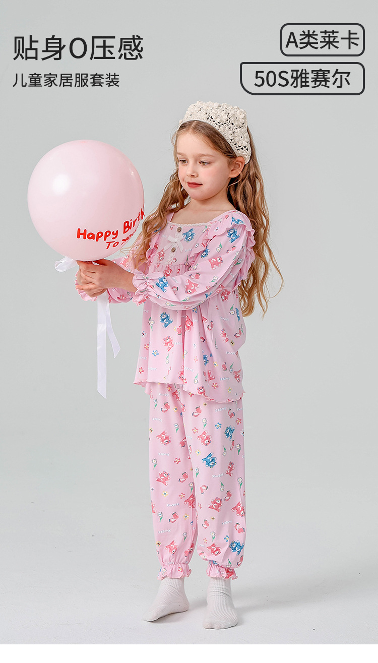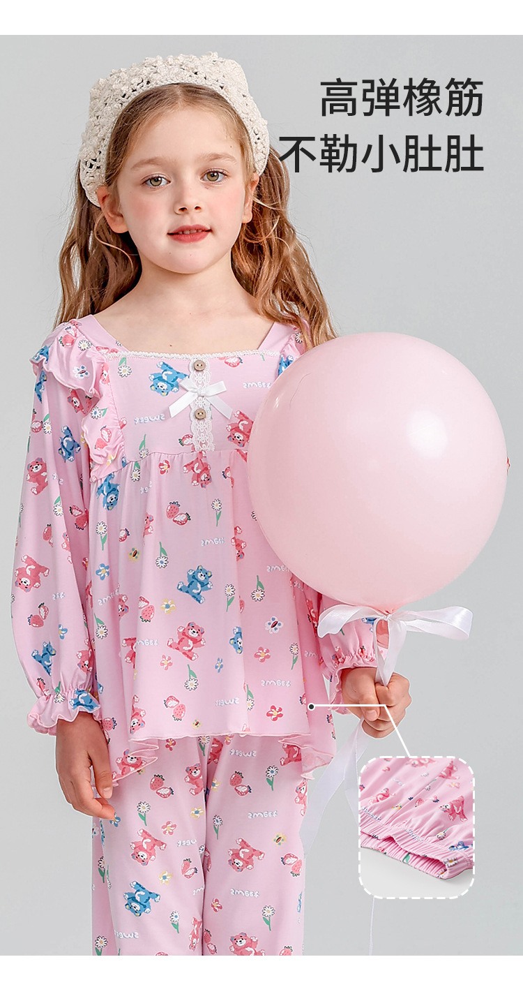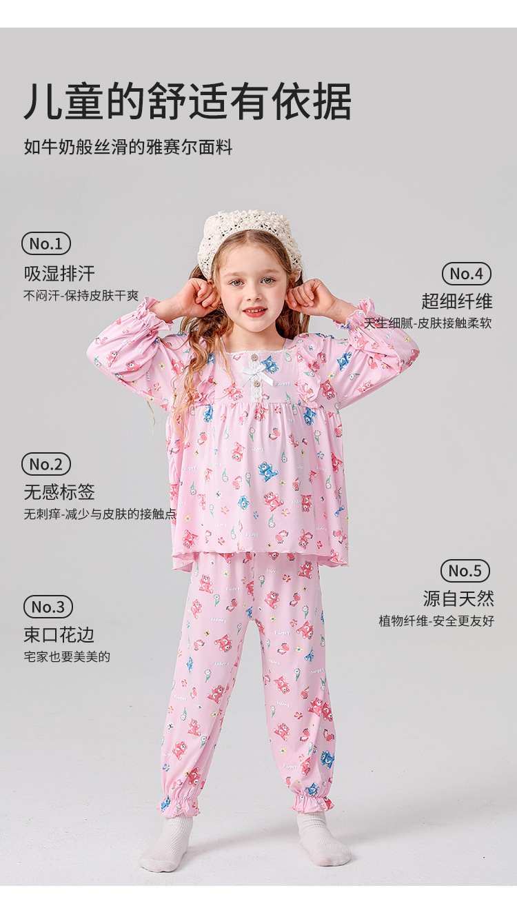 J085 디자이너 어린이 가정복 봄과 여름 얇은 뼈없는 긴팔 파자마 바지 Yassel acatong 여자 잠옷스토어 가기