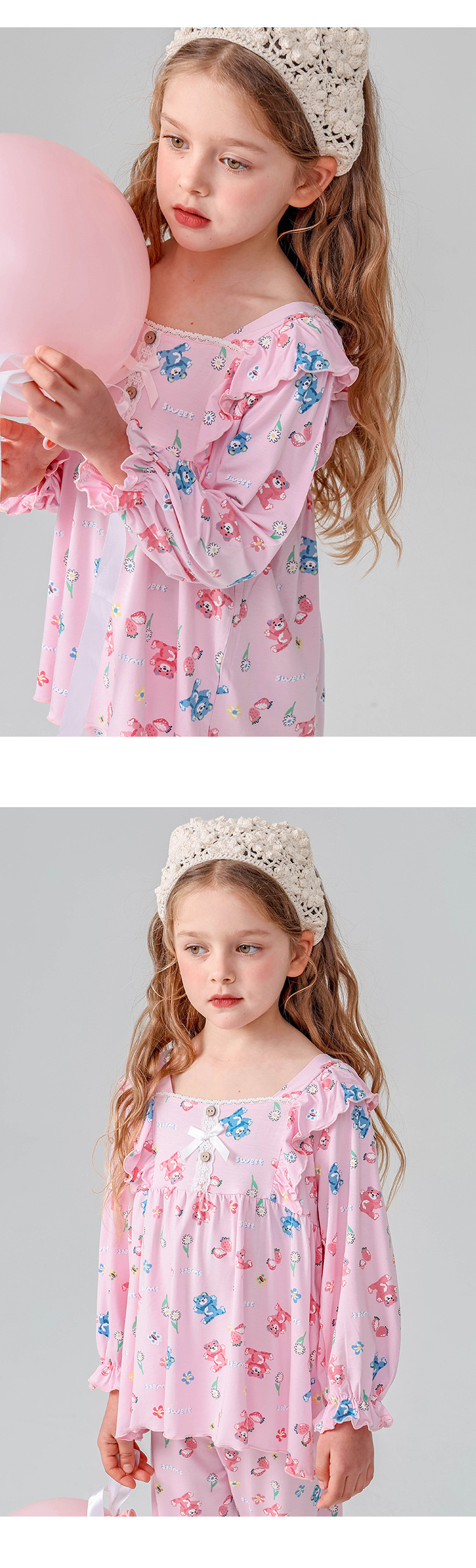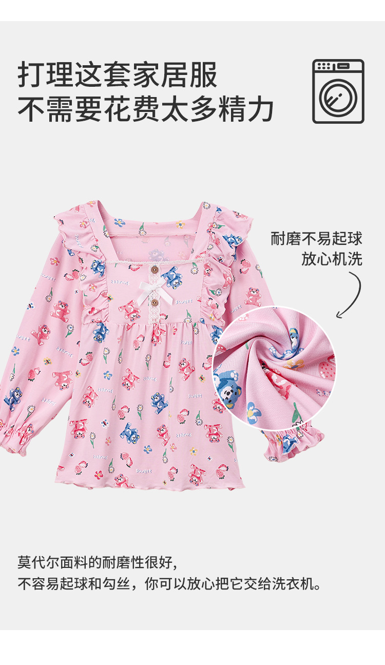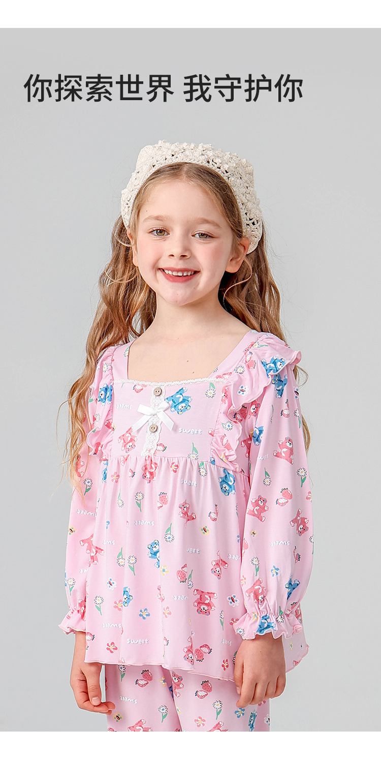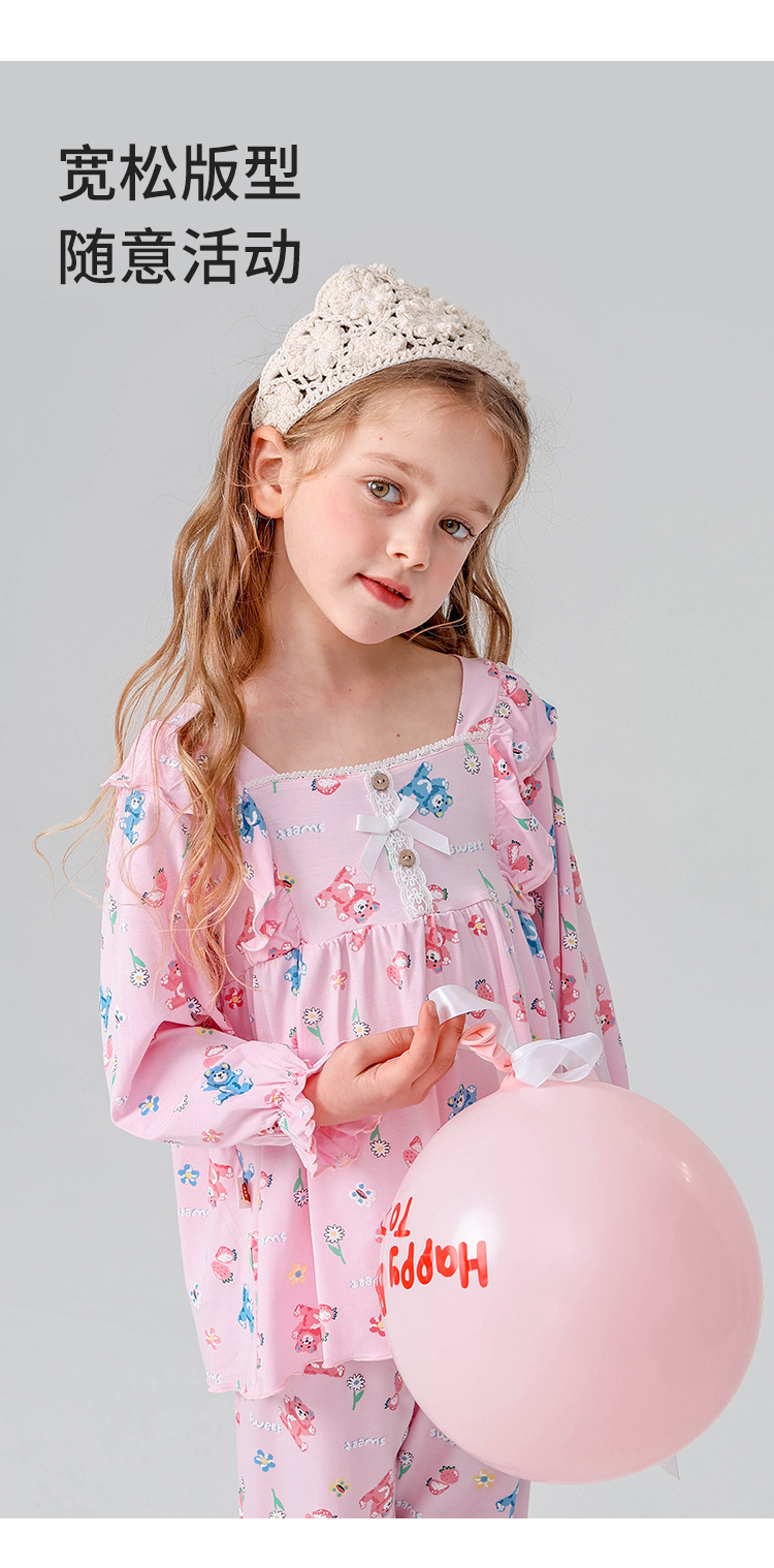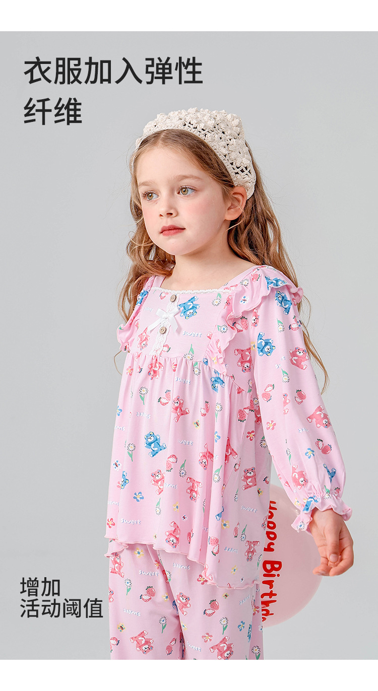 J085 디자이너 어린이 가정복 봄과 여름 얇은 뼈없는 긴팔 파자마 바지 Yassel acatong 여자 잠옷스토어 가기
