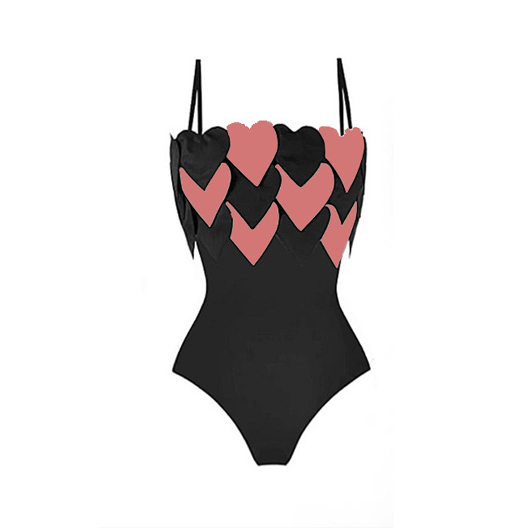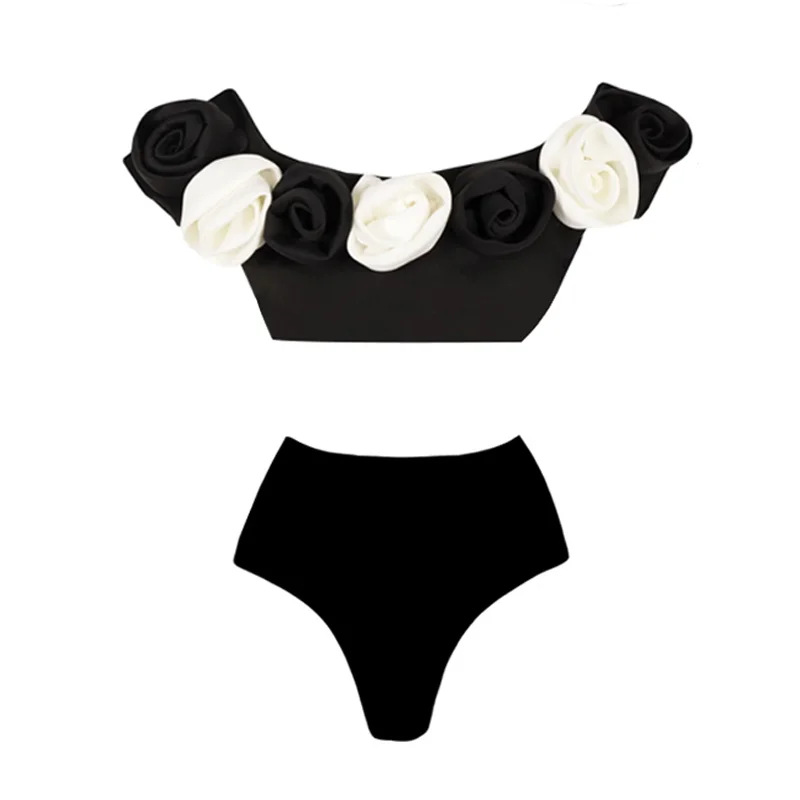 俏佳媛2025年新款连体泳衣女抹胸双肩带3D立体玫瑰花时尚泳装套装