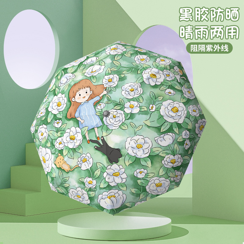 새로운 재미 있은 숨겨진 고양이 만화 우산 두꺼운 비닐 코팅 야외 태양 우산 태양 보호 UV 보호 여성