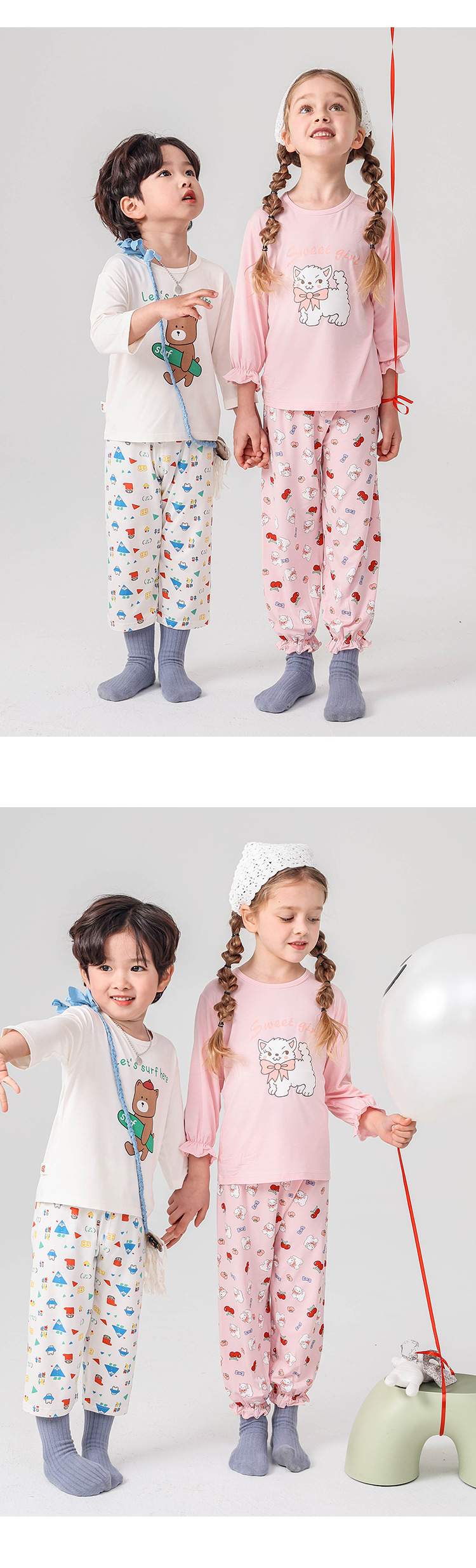 J103 디자이너 봄 야셀 어린이 가정 공주 레이스 소녀 잠옷 만화 클래스 에어컨 옷