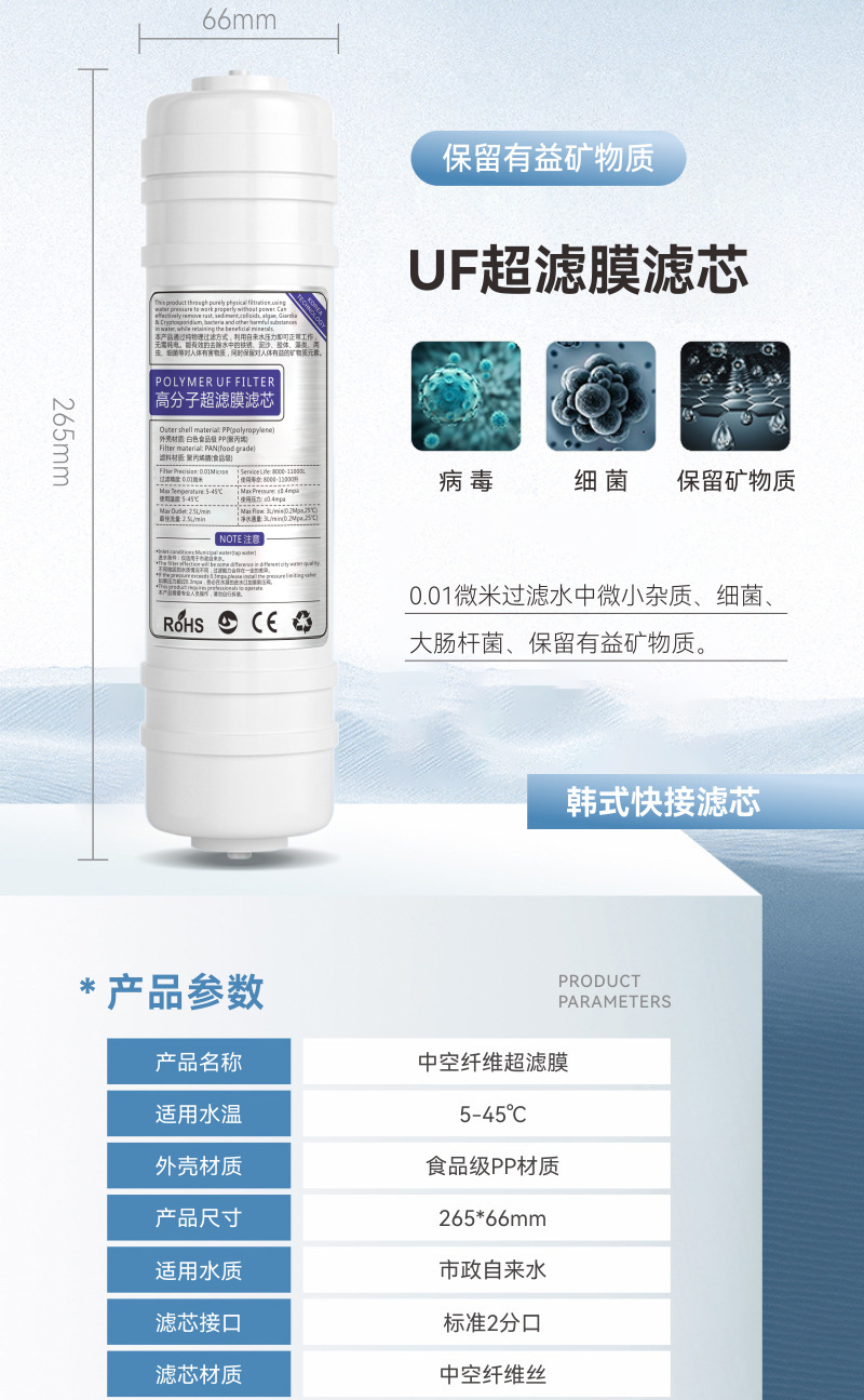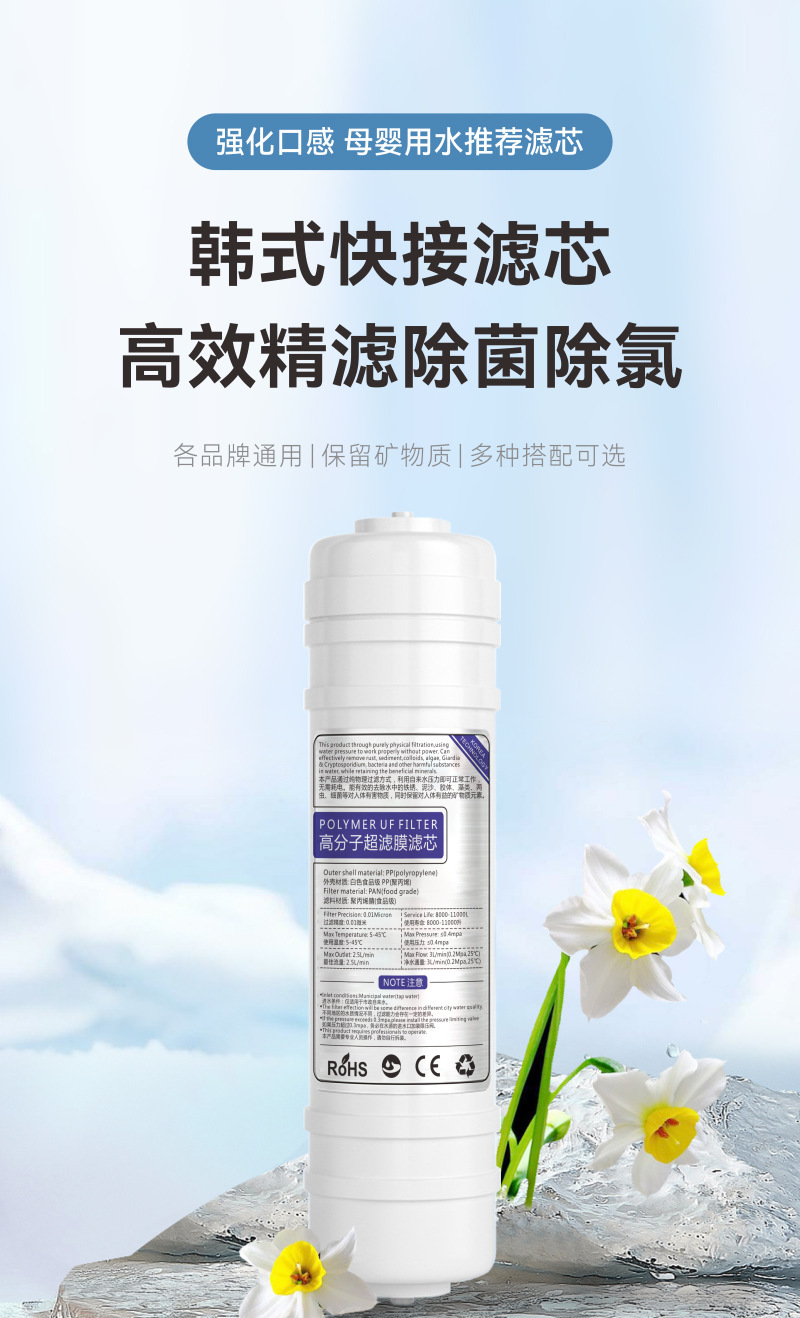 10인치 2분형 한국식 퀵커넥트 일체형 UF 필터 면 정수기 필터 카트리지는 박스형 퀵플러그 초여과기용으로 사용 가능합니다.스토어 가기