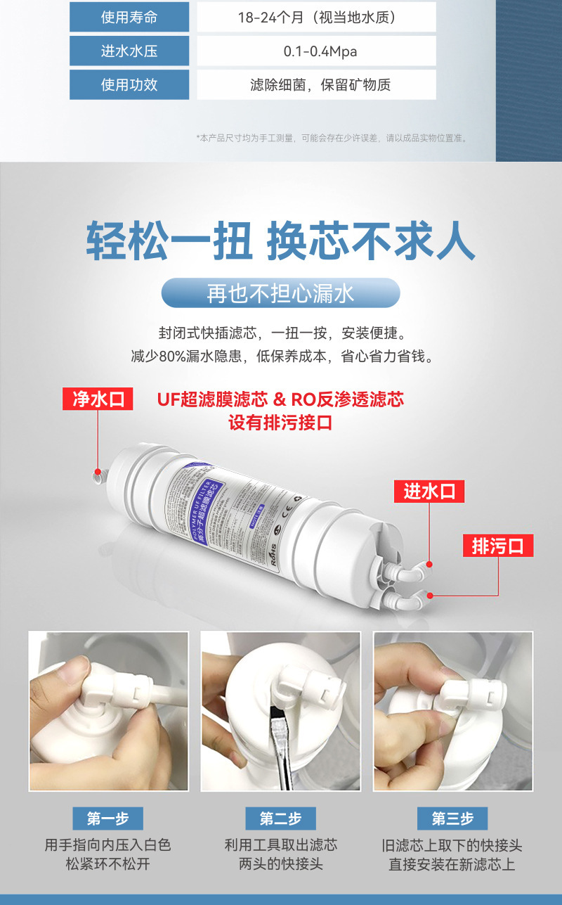 • UF 한외여과막(배수구 없음)은 맞춤 제작이 필요합니다.