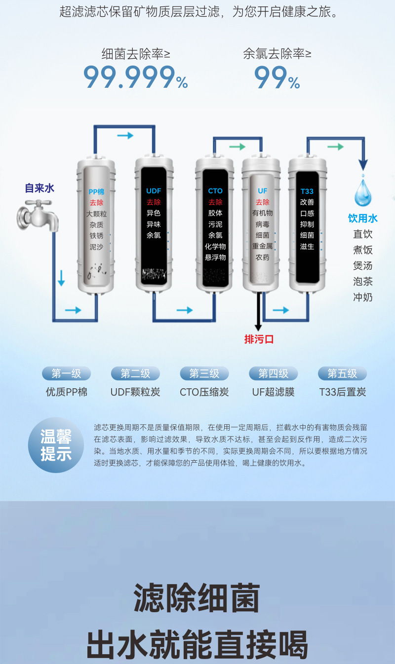 • UF 초여과 막 (드레인 출구 포함)