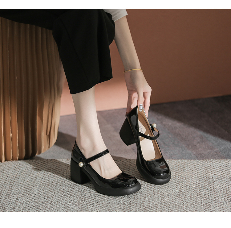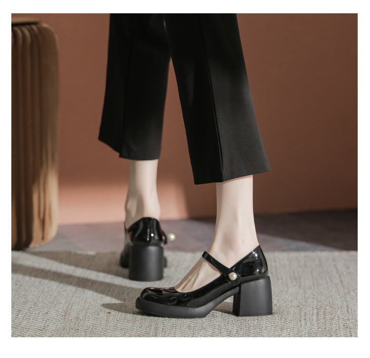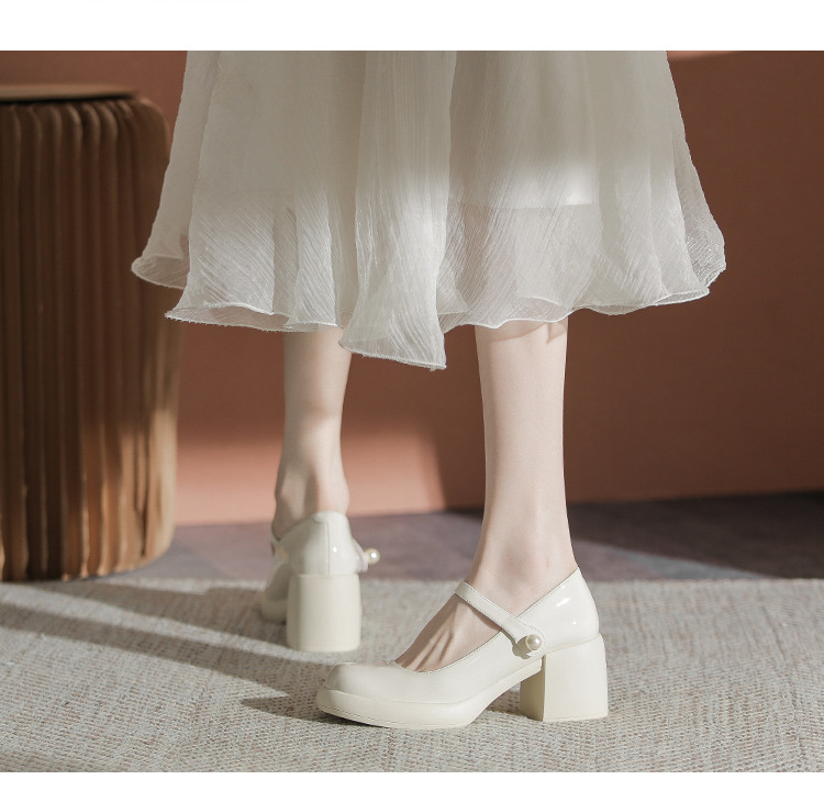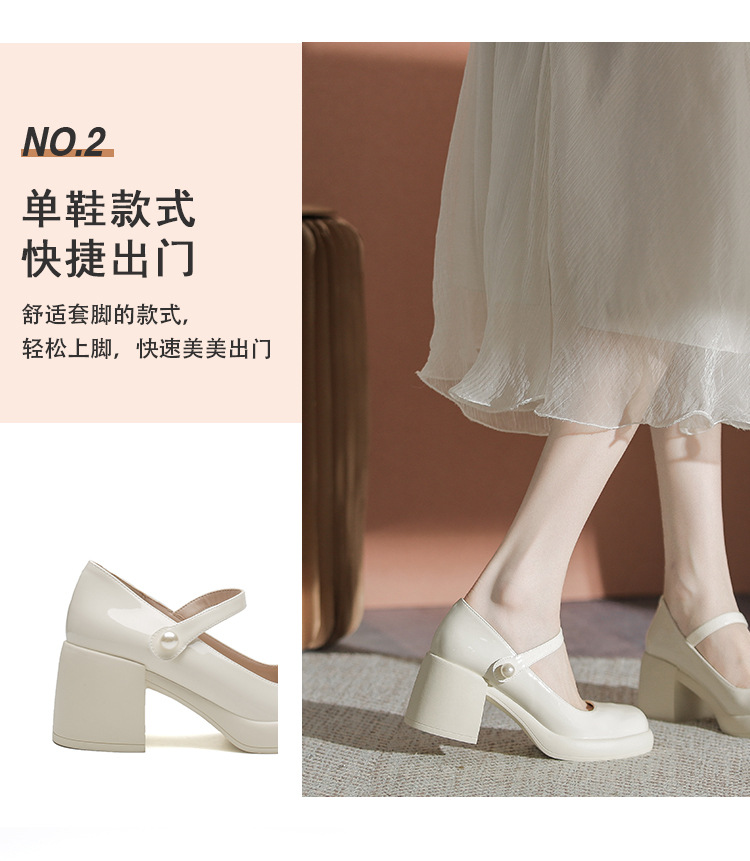프랑스 메리 제인 청키 힐 하이힐 여성 2024 봄과 가을 싱글 슈즈 부드러운 바닥 올 매치 웨딩 아티팩트 스커트 슈즈스토어 가기