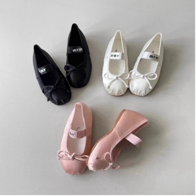 2025 부모-자식 신발 한국 아동복 가을 새로운 귀여운 발레 활 메리 제인 새틴 어린이 플랫 신발스토어 가기