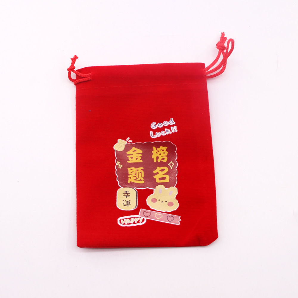 • 골드리스트 제목 - 행운; 큰 빨간 벨벳 가방; 10x16cm