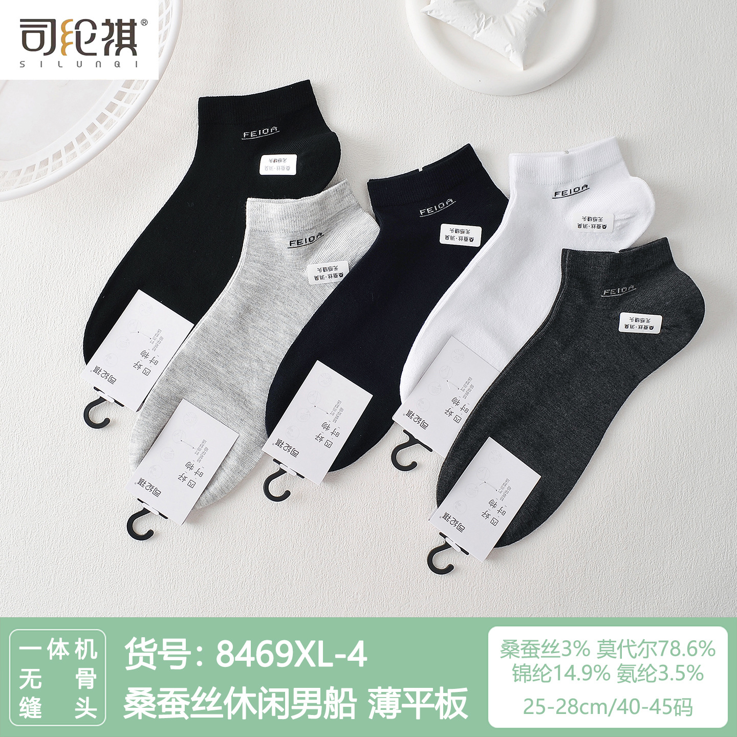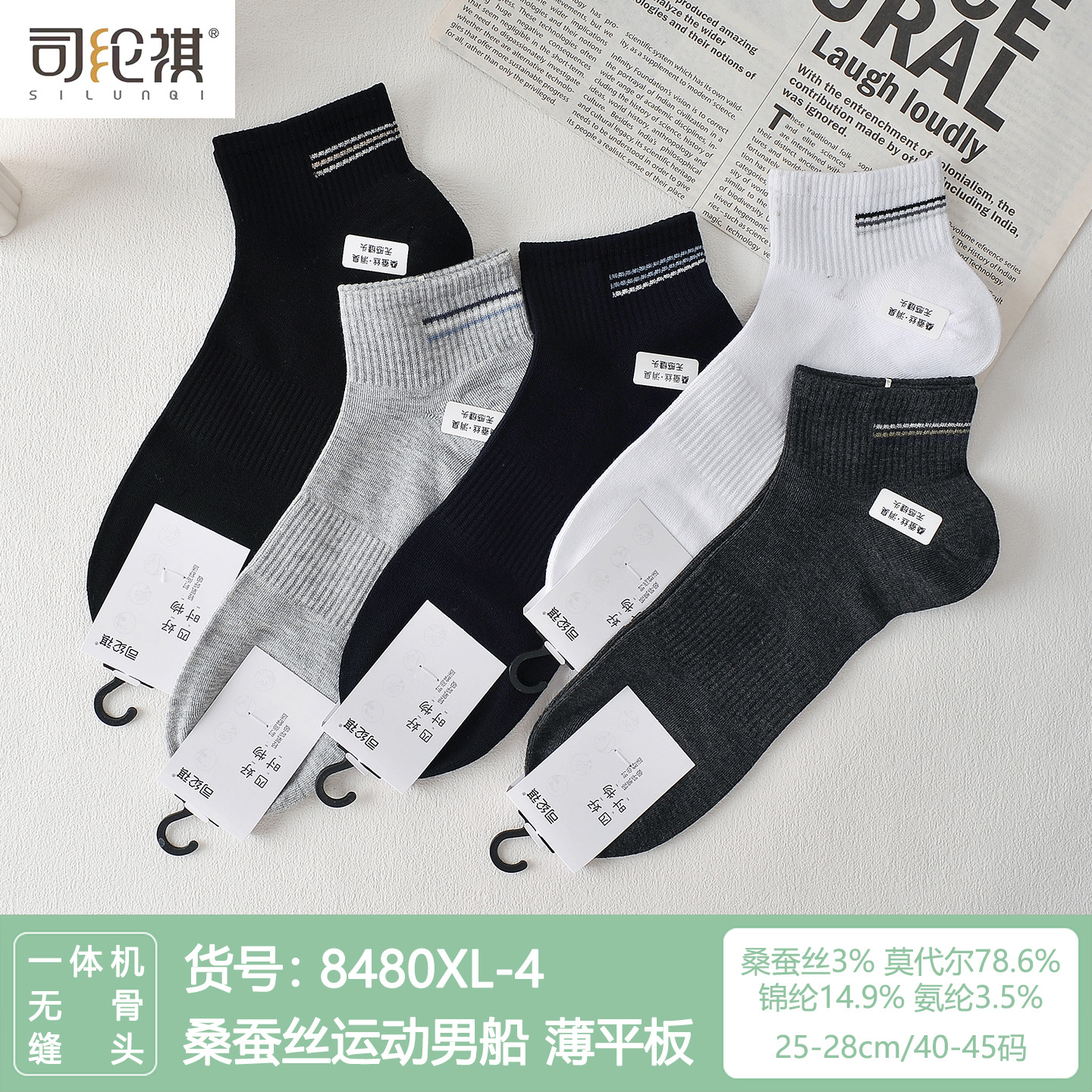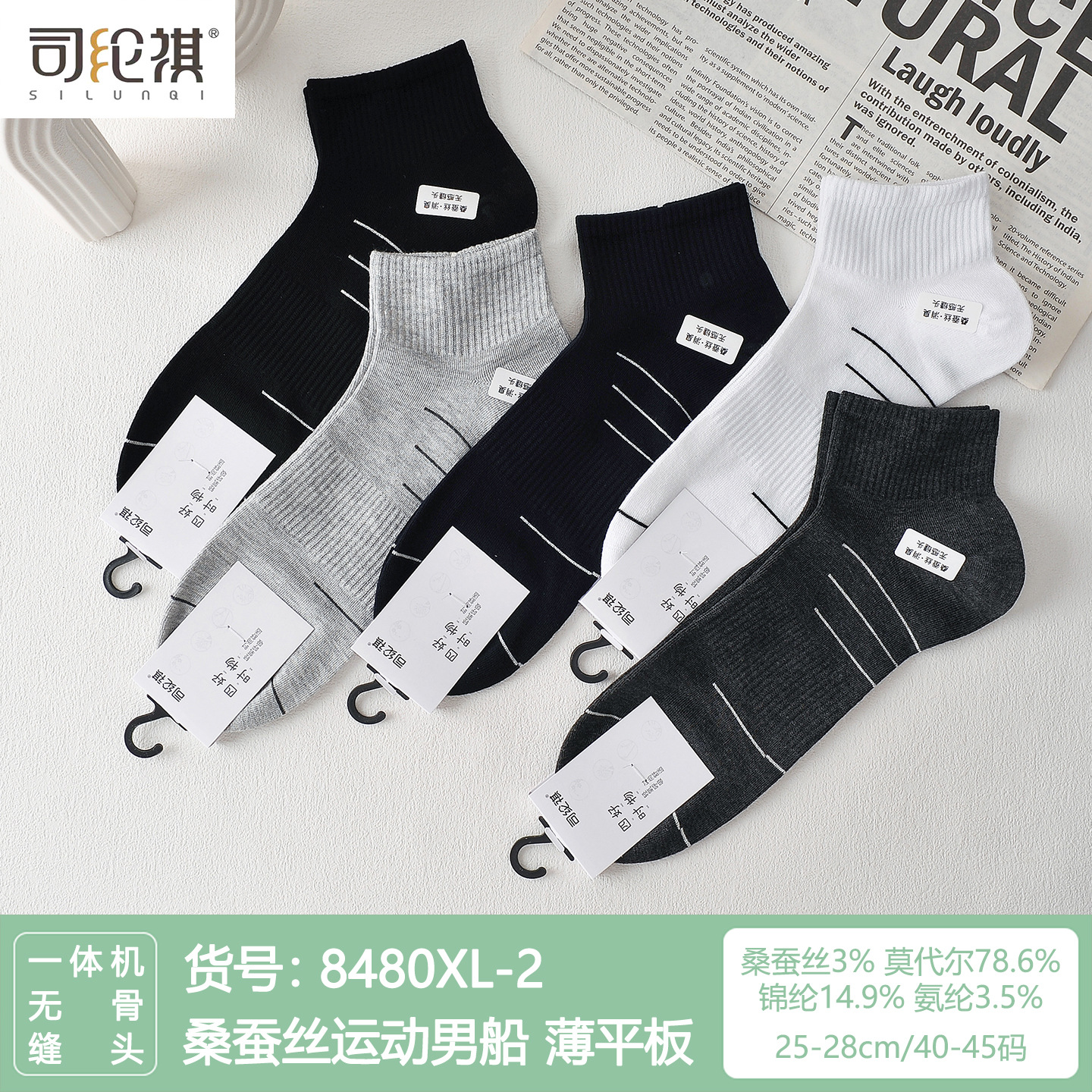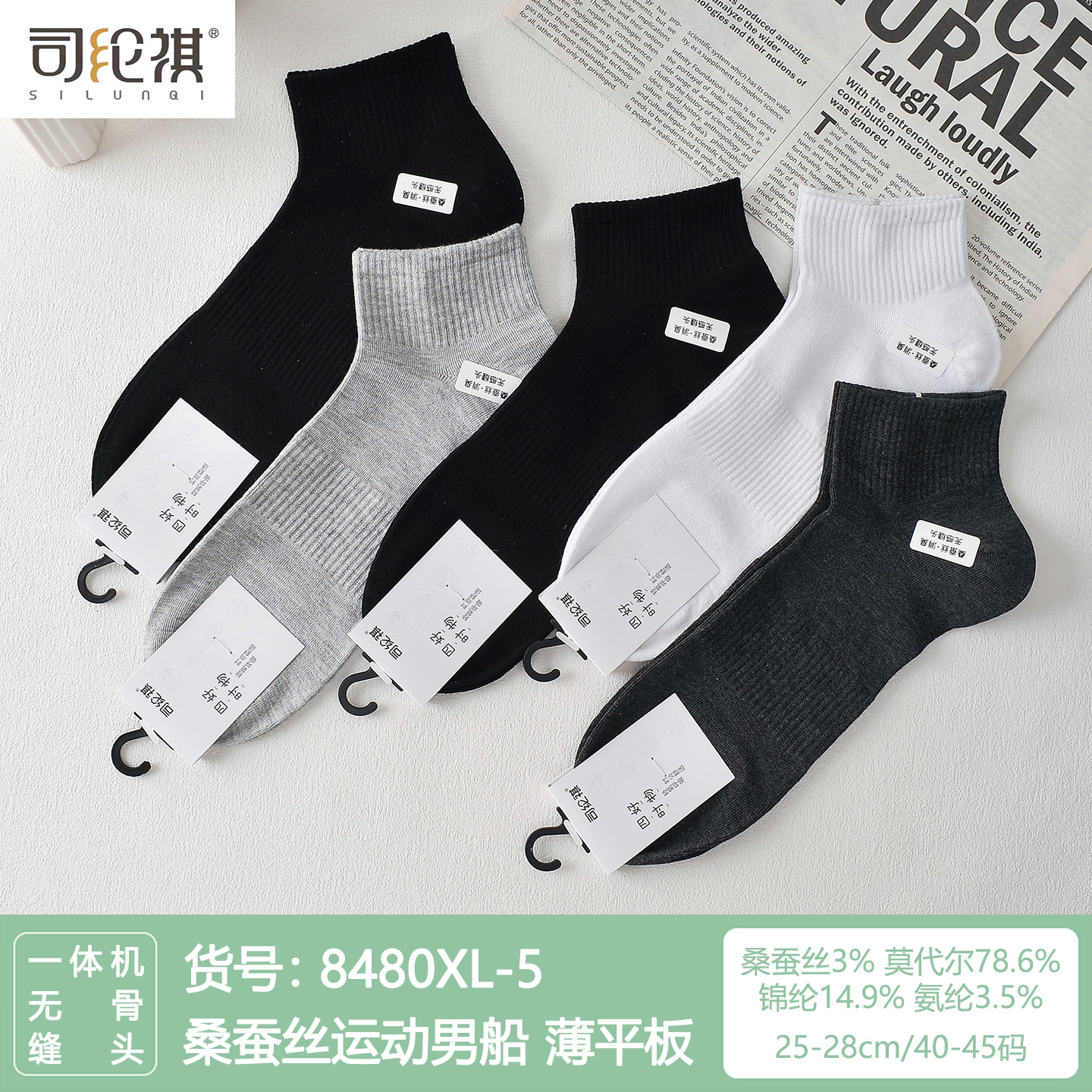Si Lunqi 8305 뽕나무 실크 남성용 양말 25 년 봄과 여름 남성용 새로운 뼈없는 실크 질감 보트 양말스토어 가기
