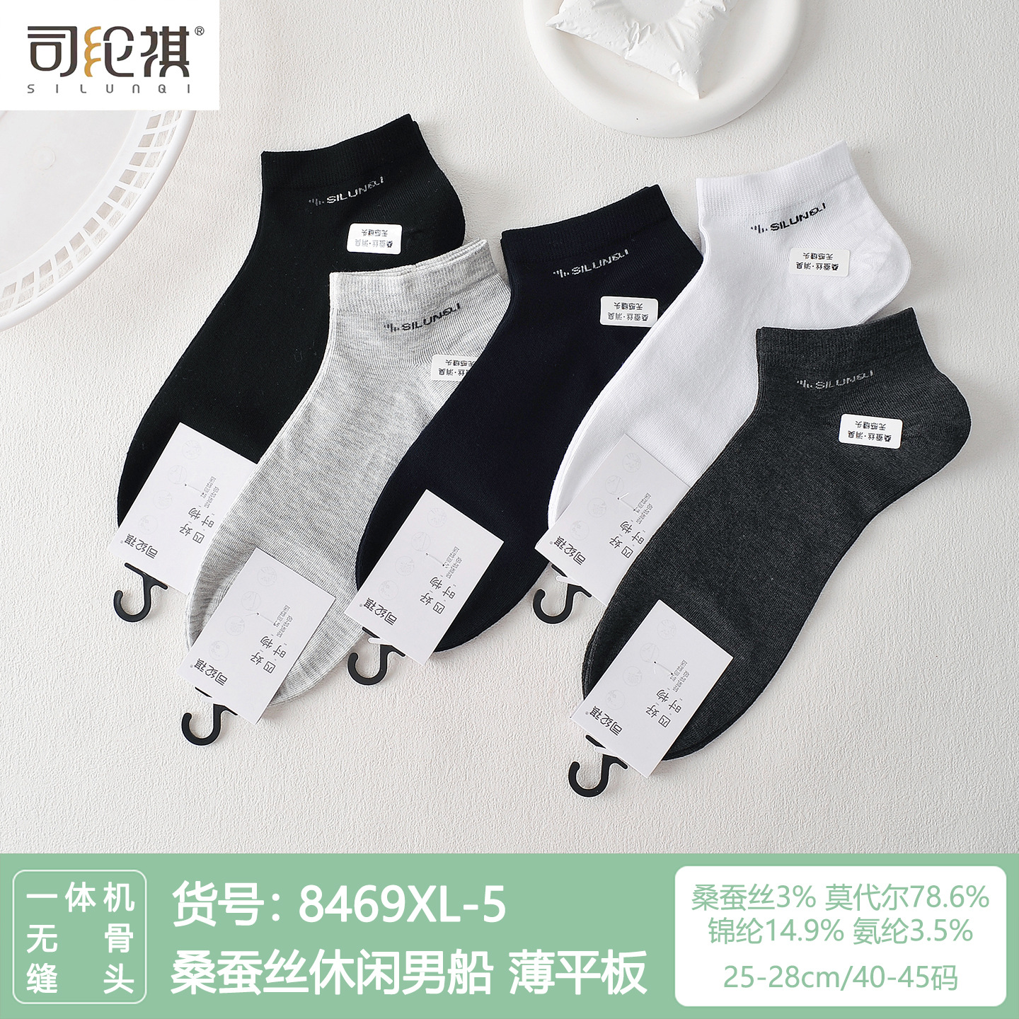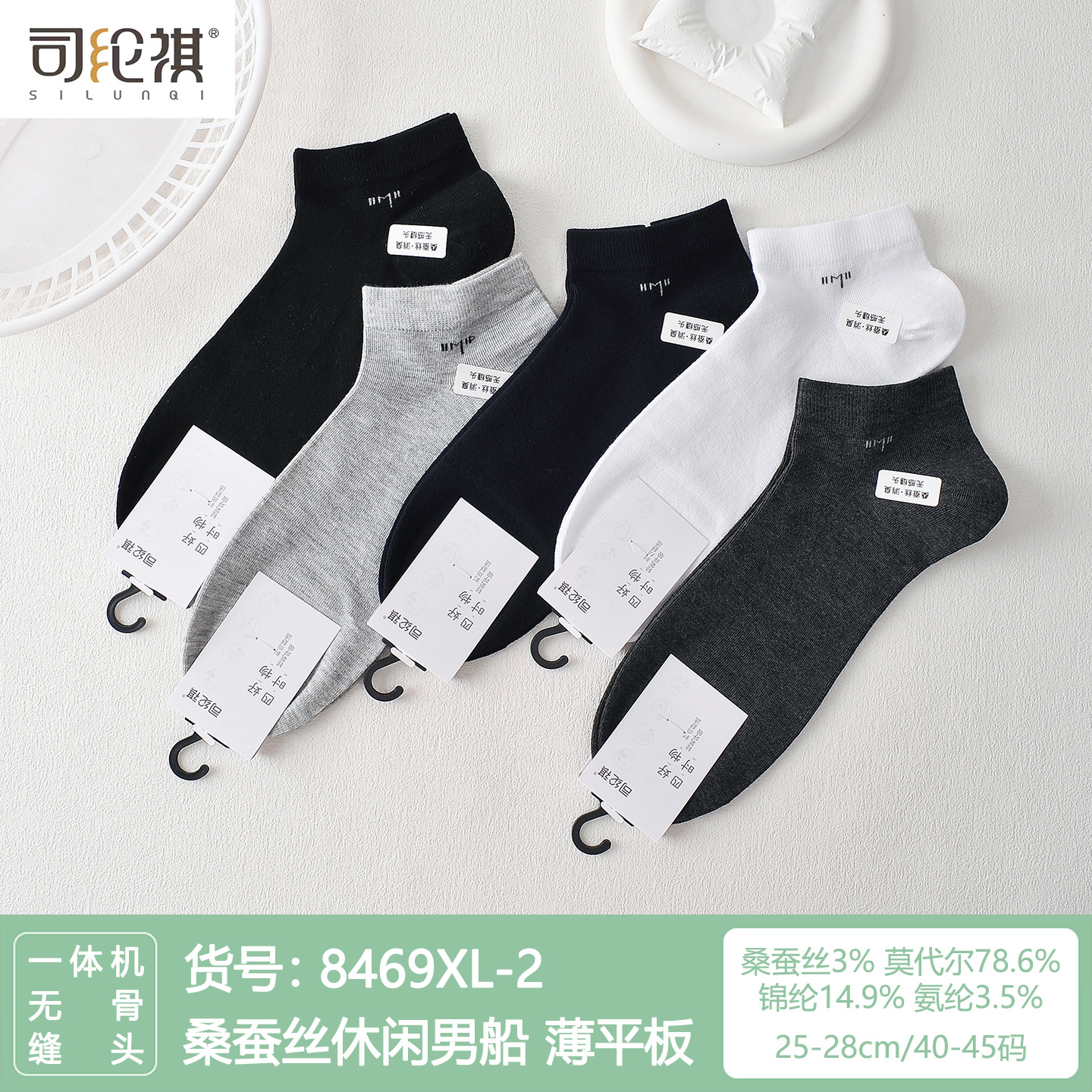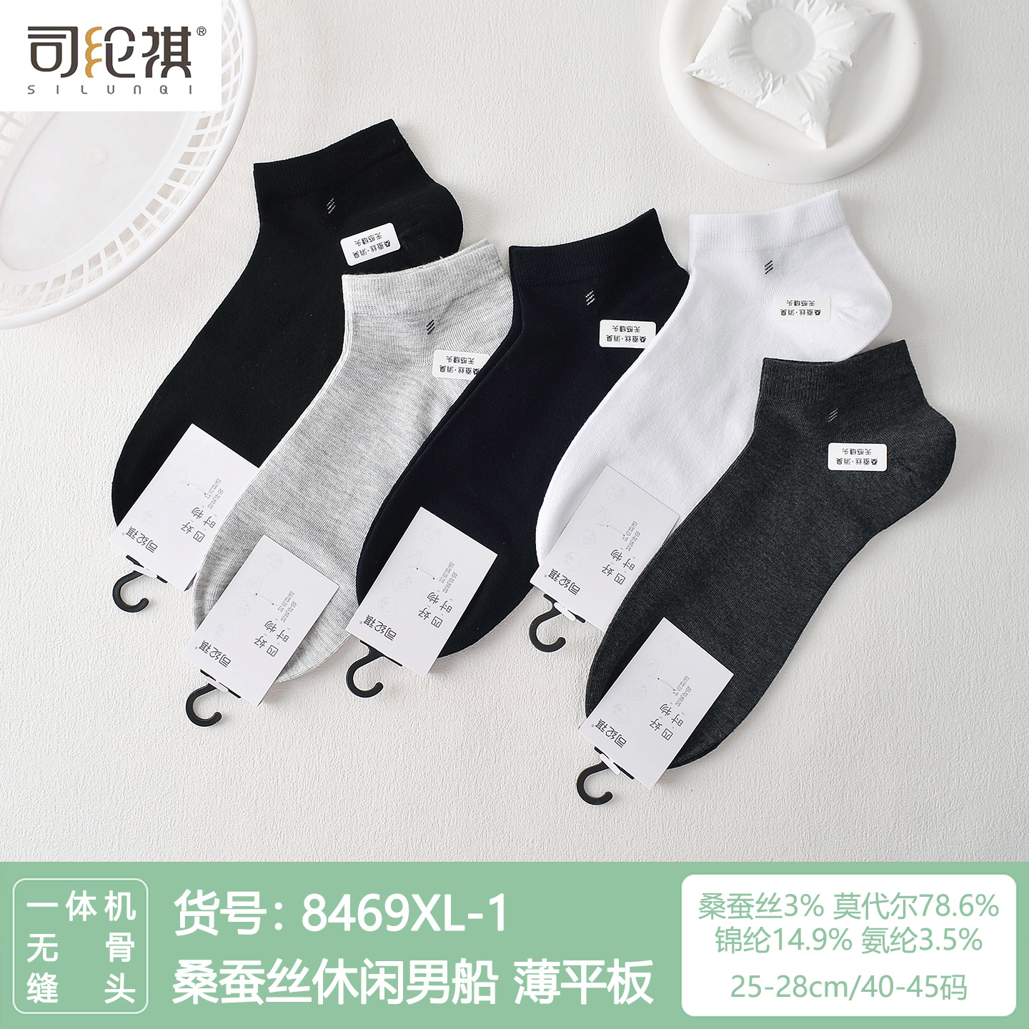Si Lunqi 8305 뽕나무 실크 남성용 양말 25 년 봄과 여름 남성용 새로운 뼈없는 실크 질감 보트 양말스토어 가기