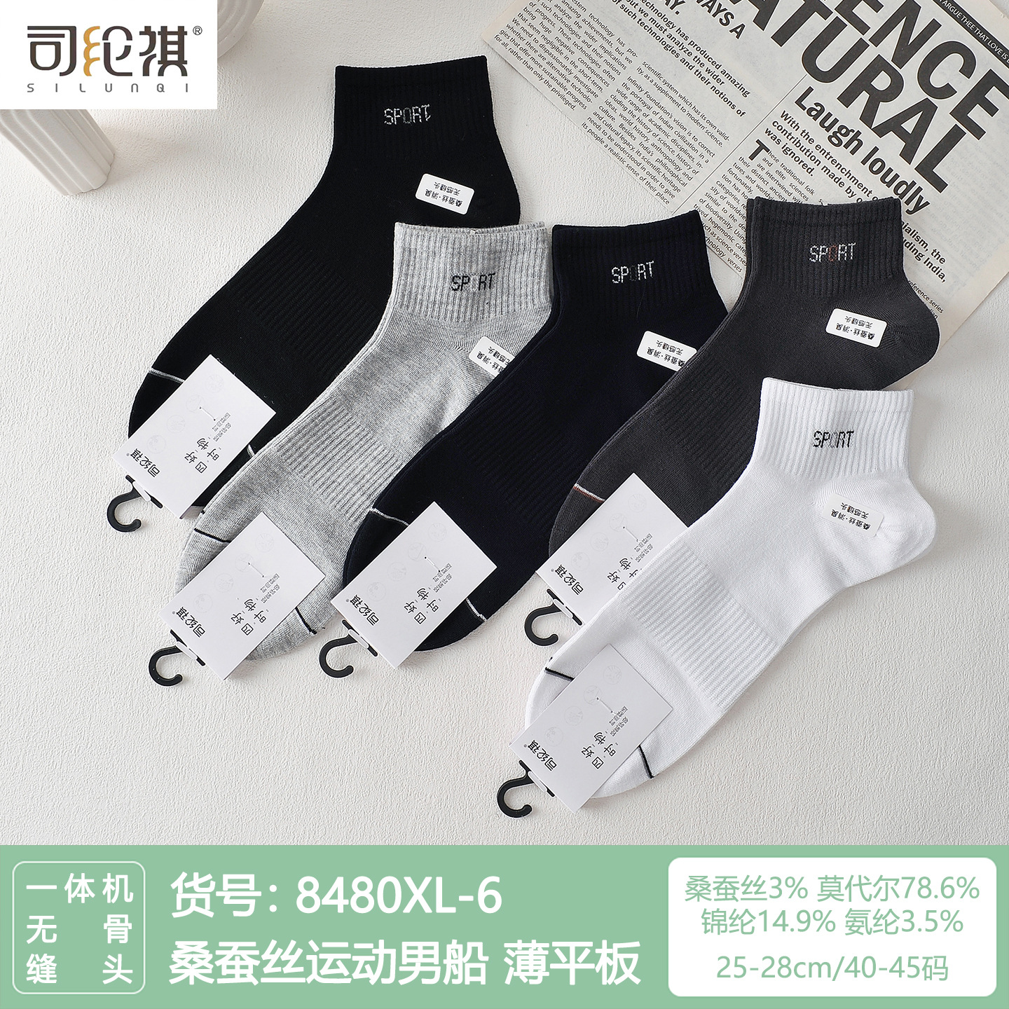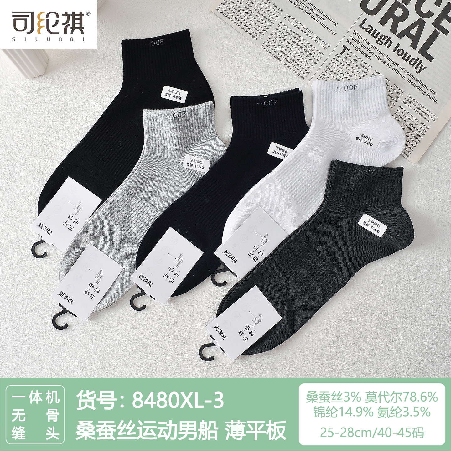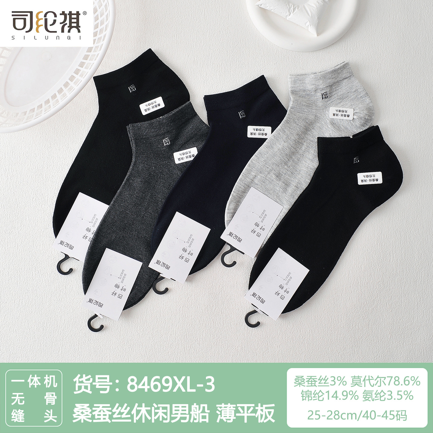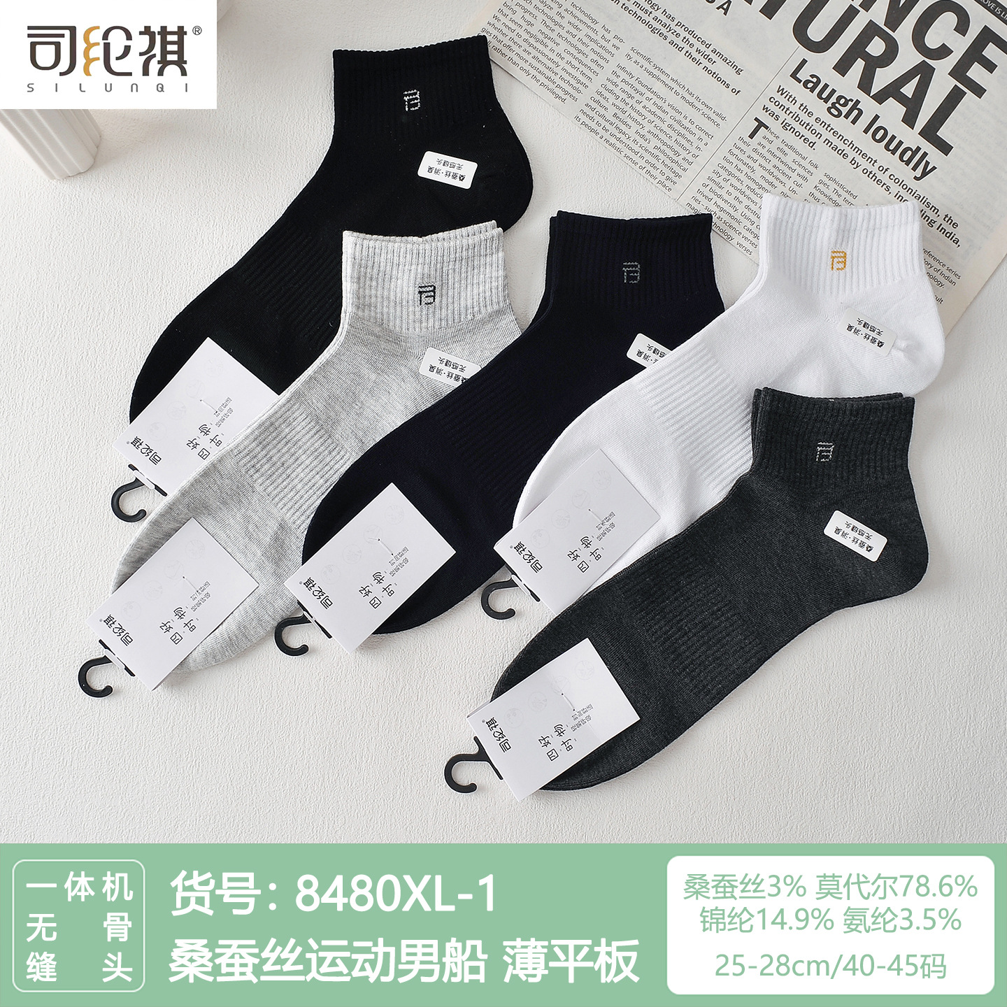 Si Lunqi 8305 뽕나무 실크 남성용 양말 25 년 봄과 여름 남성용 새로운 뼈없는 실크 질감 보트 양말스토어 가기