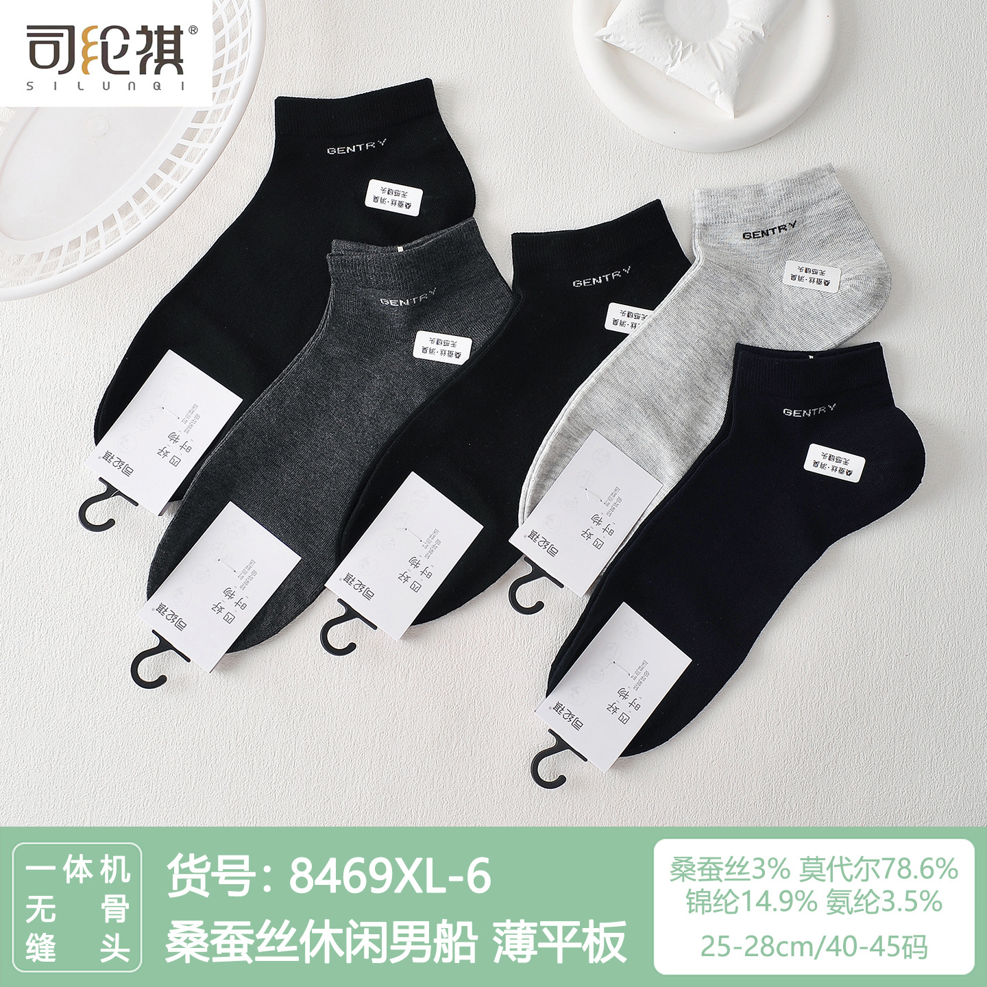 Si Lunqi 8305 뽕나무 실크 남성용 양말 25 년 봄과 여름 남성용 새로운 뼈없는 실크 질감 보트 양말