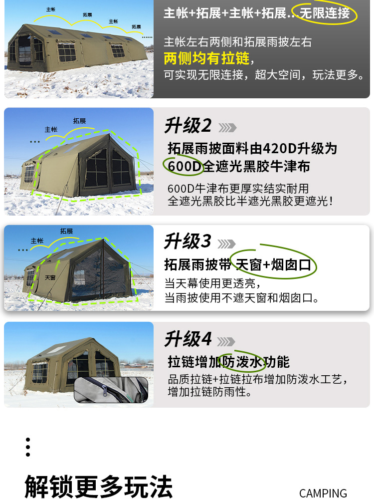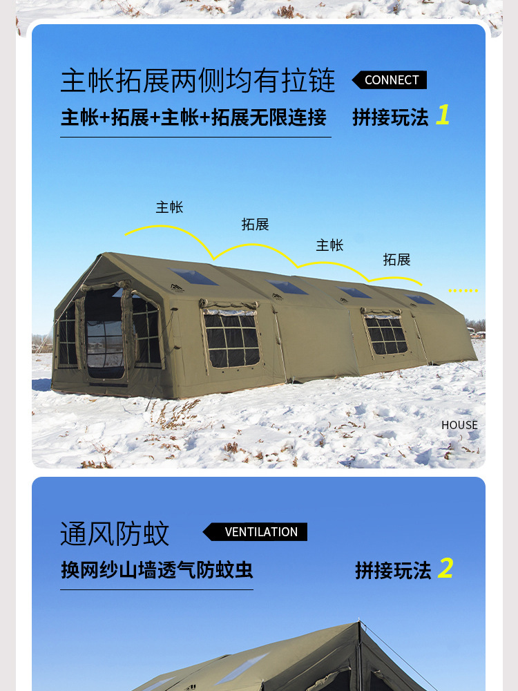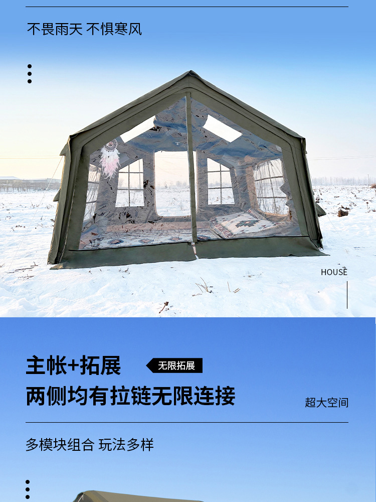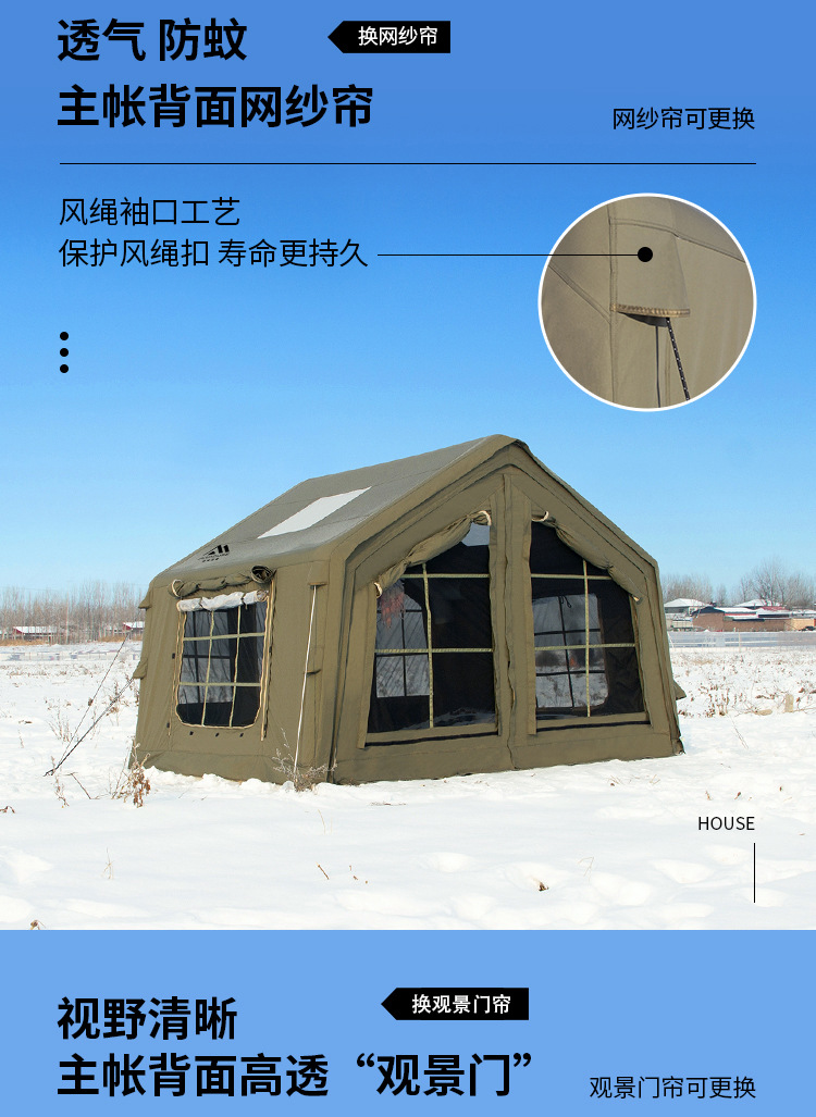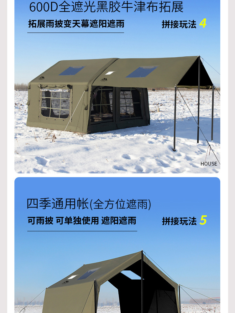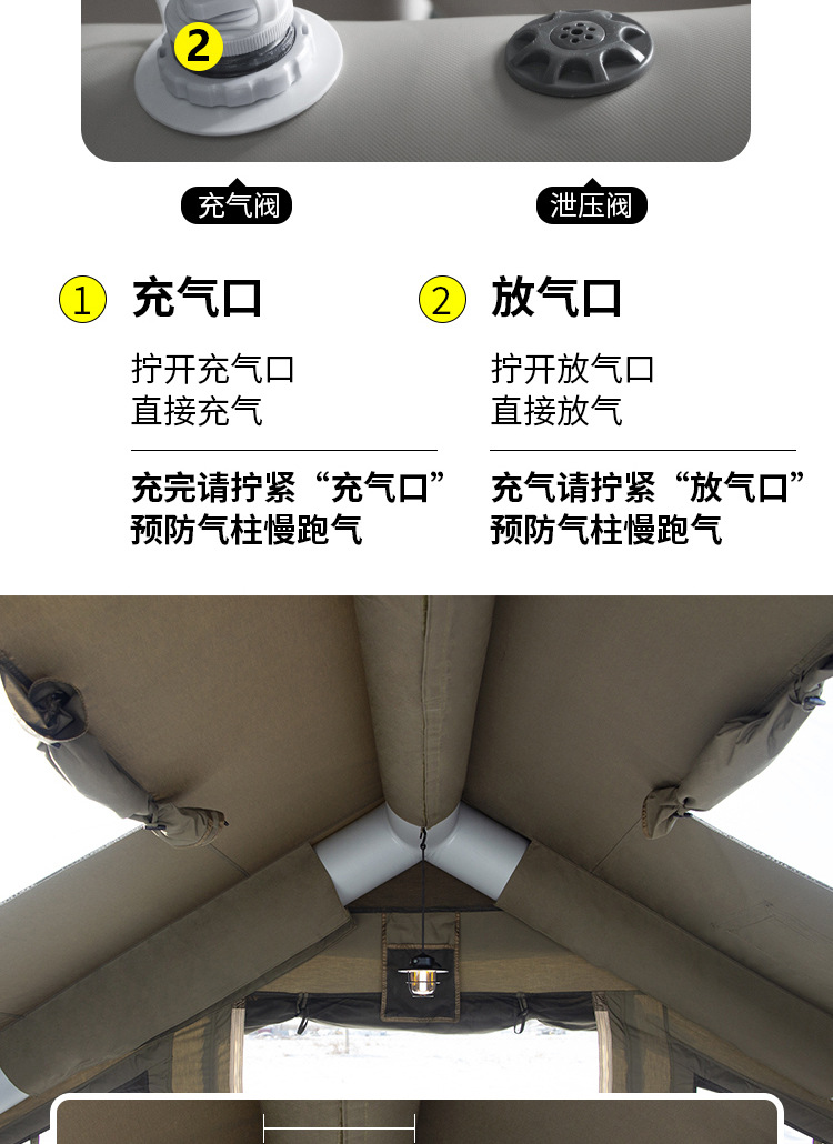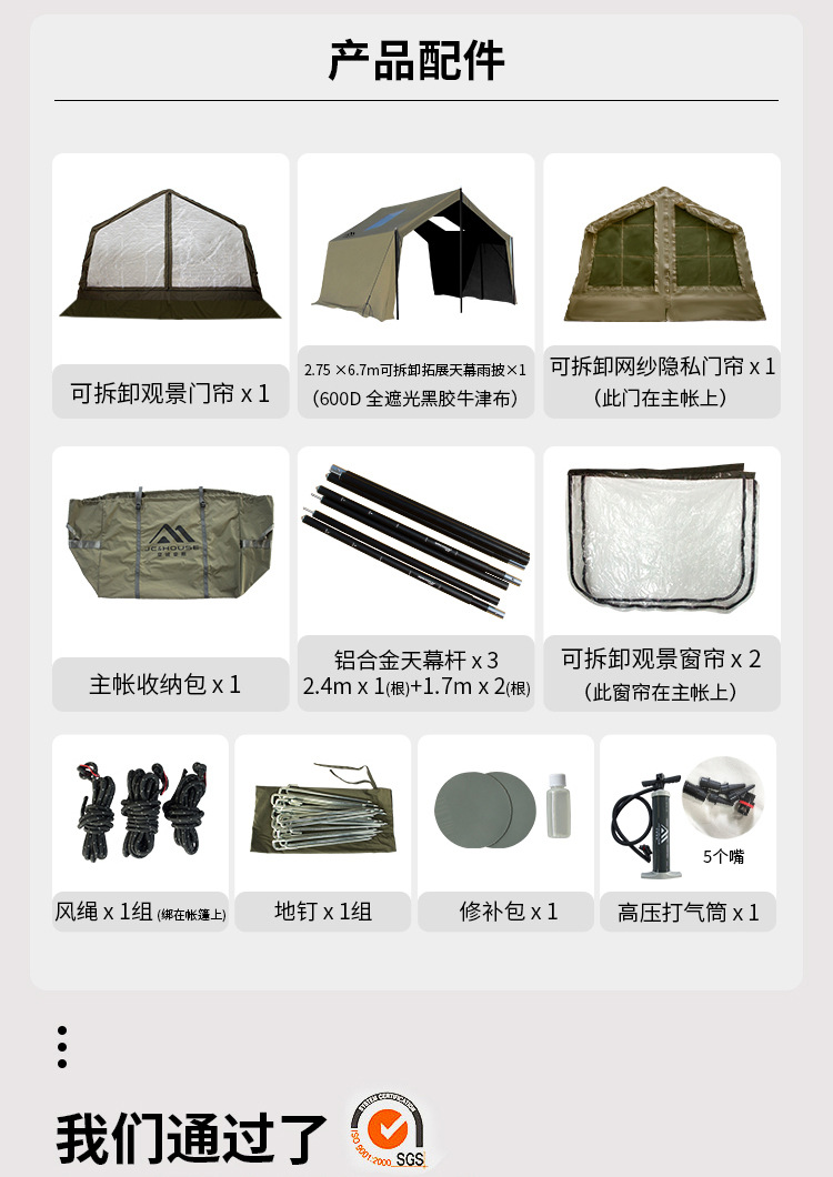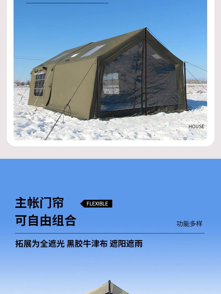 • 밀리터리 그린 8+8.8 ㎡ (확장된 공기 기둥 + 메인 텐트 + 확장 + 탈착식 TPU 커튼 + 캐노피 폴 3개의 전체 세트) (5일 이내 배송)