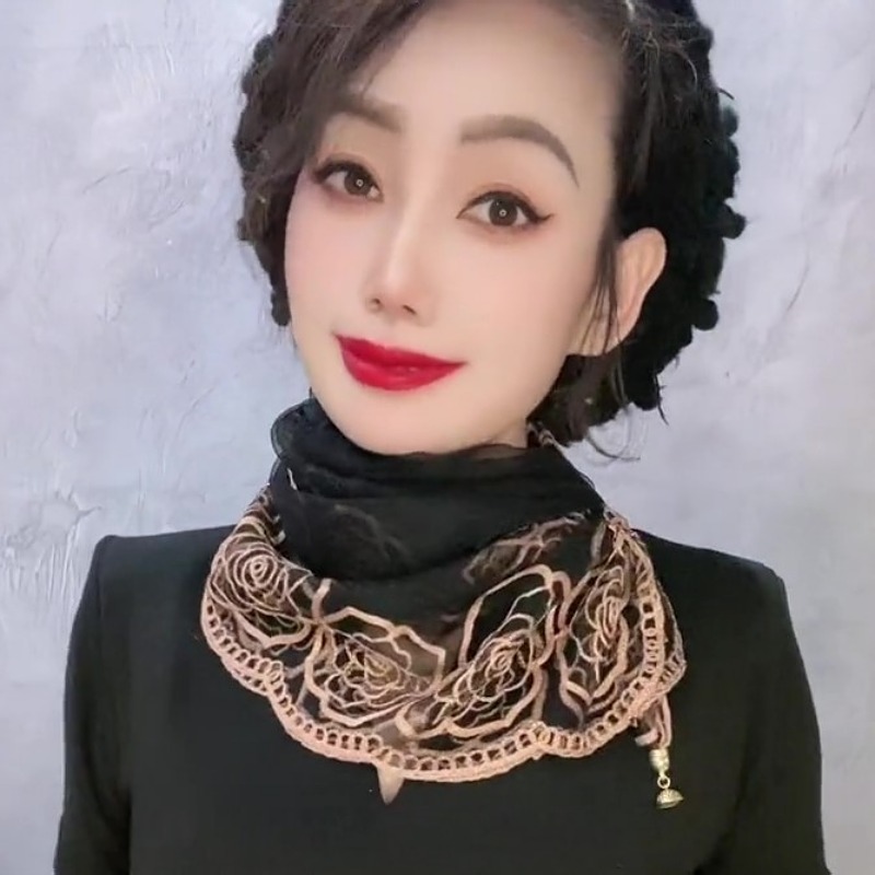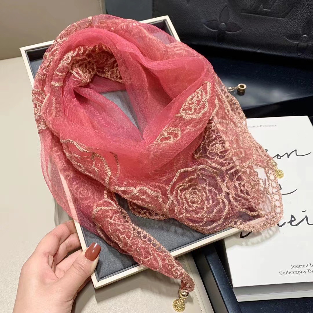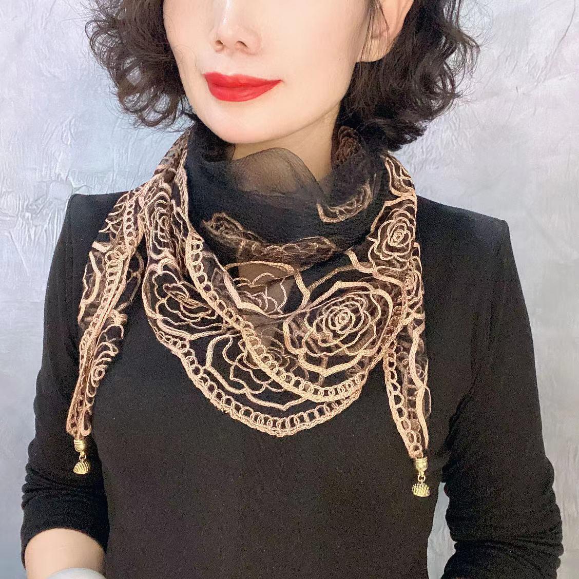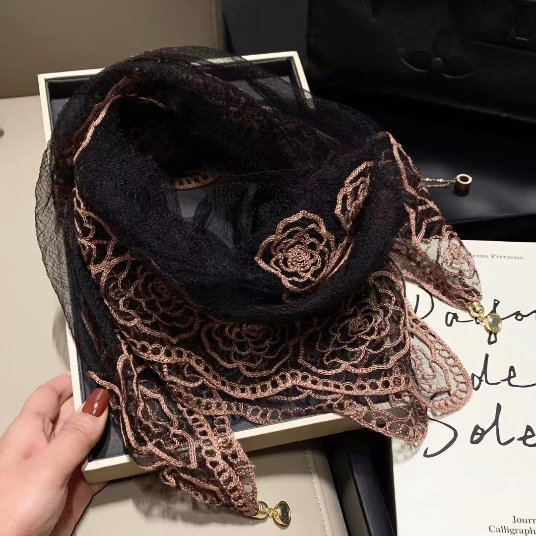 유행 자수 마그네틱 버클 스카프 여성용 스퀘어 스카프 고급 목 보호 서양식 올 매치 2024 새로운 스카프 여성용 스카프