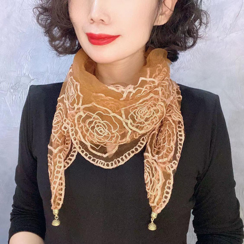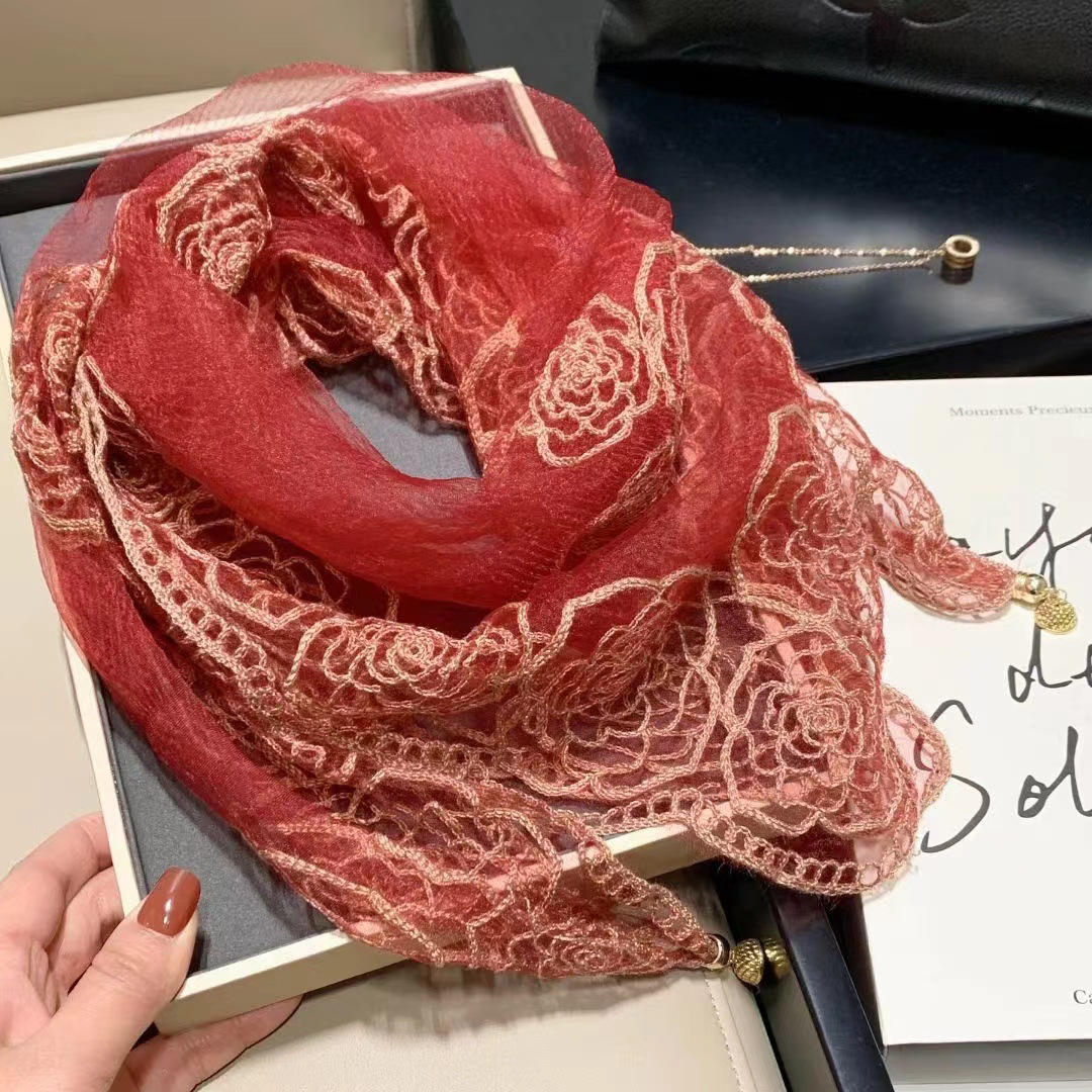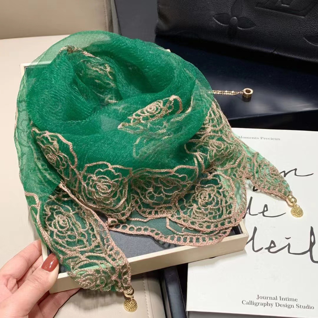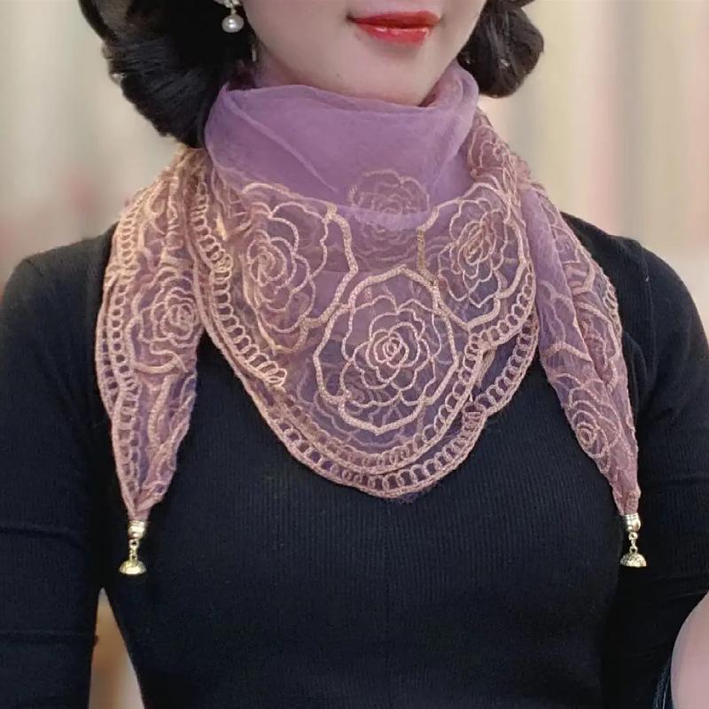 유행 자수 마그네틱 버클 스카프 여성용 스퀘어 스카프 고급 목 보호 서양식 올 매치 2024 새로운 스카프 여성용 스카프
