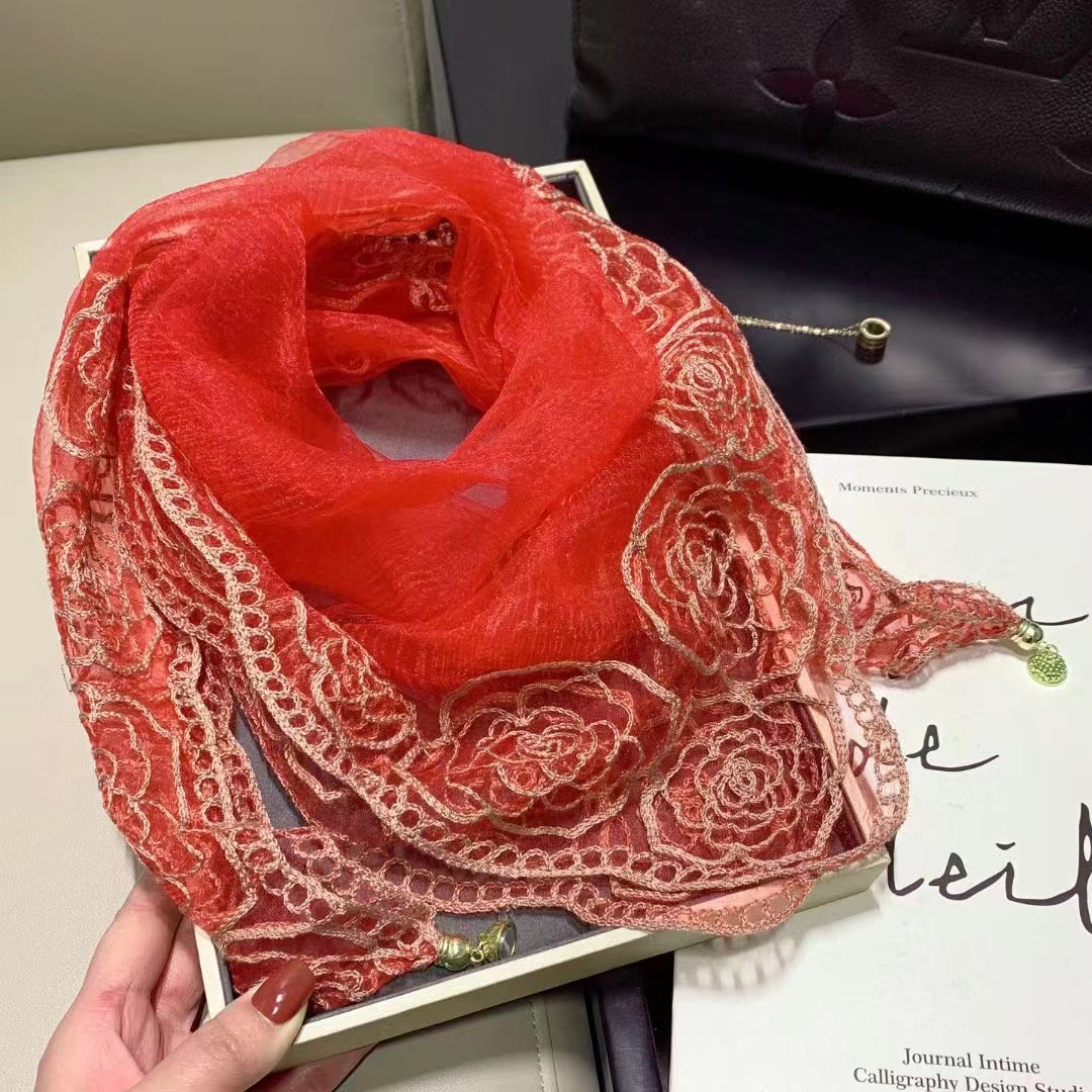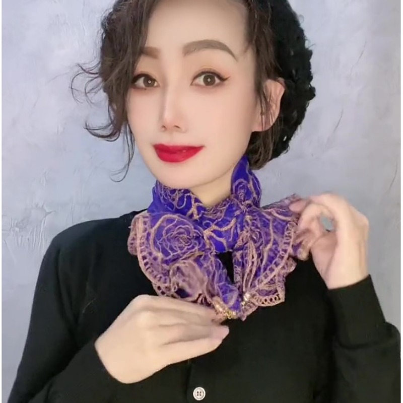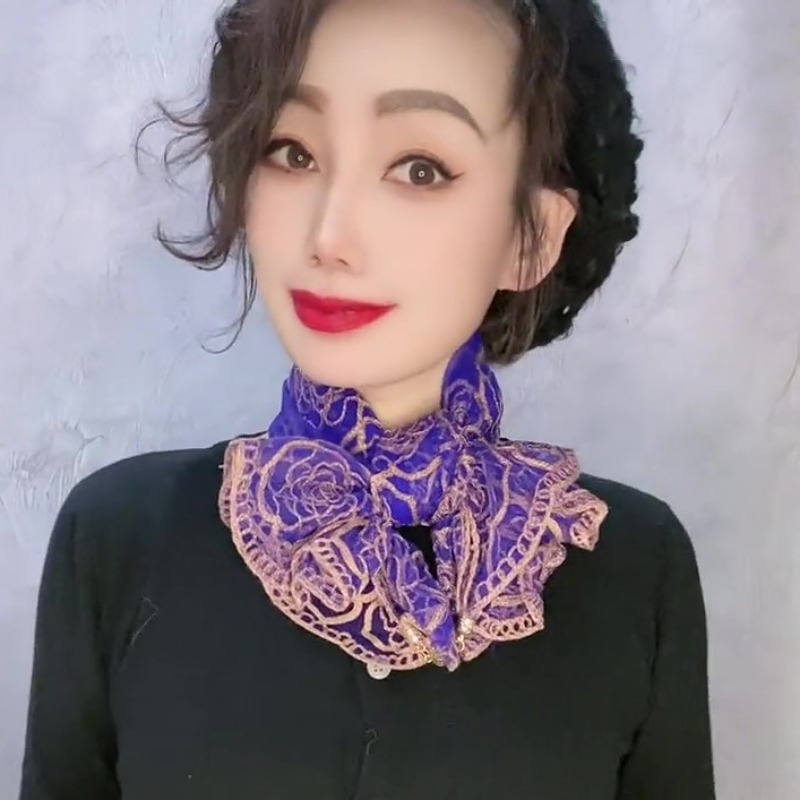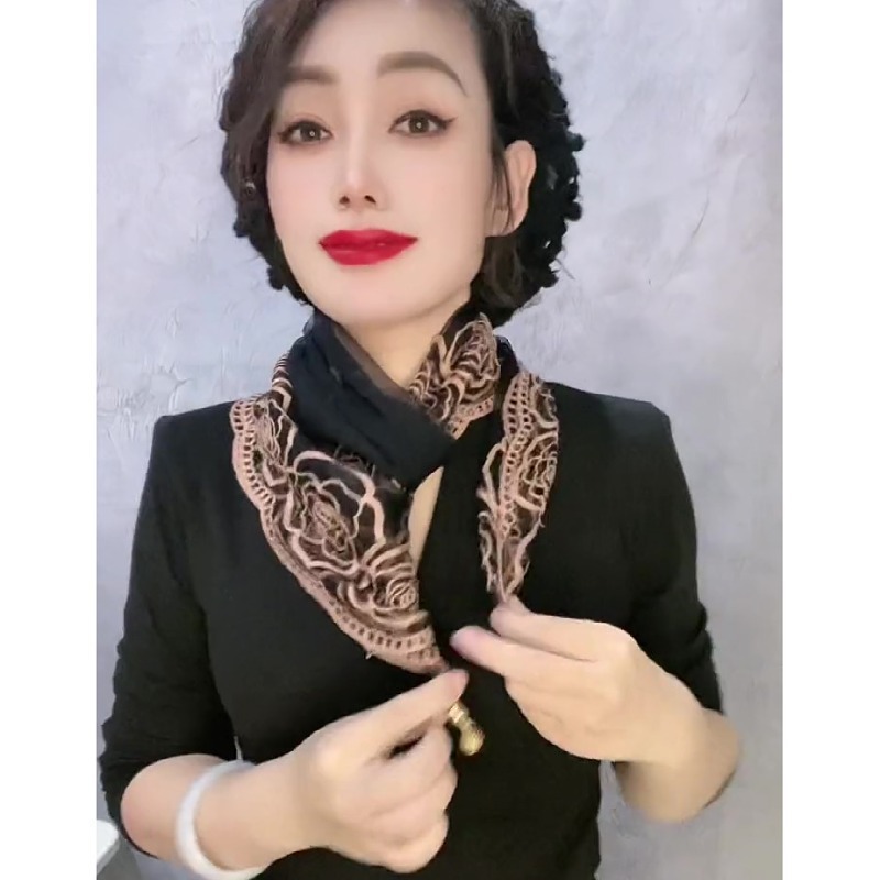 유행 자수 마그네틱 버클 스카프 여성용 스퀘어 스카프 고급 목 보호 서양식 올 매치 2024 새로운 스카프 여성용 스카프스토어 가기